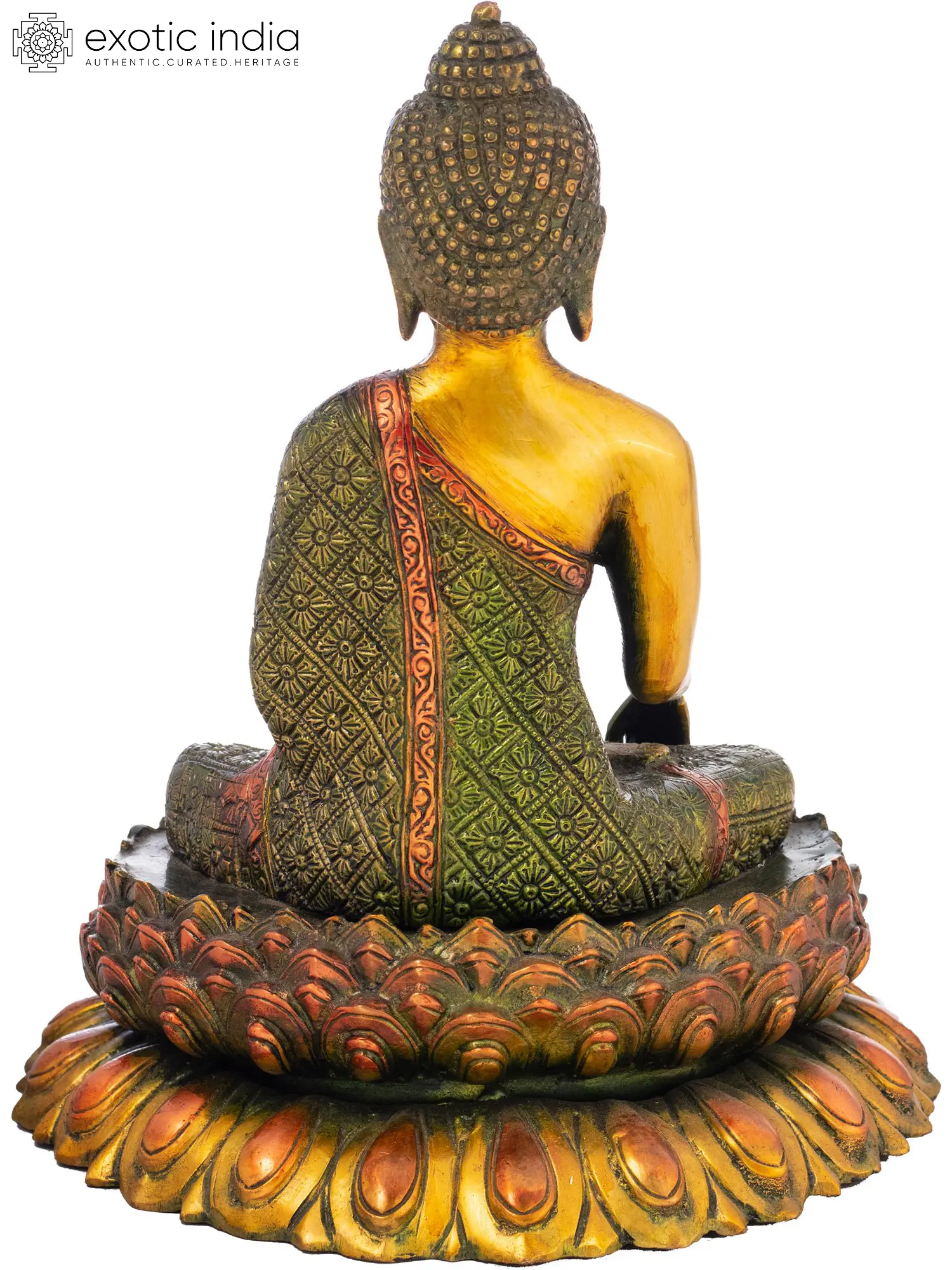 11" Tibetan Buddhist Lord Buddha Seated On Double Lotus Pedestal In Brass | Handmade | Made In India
