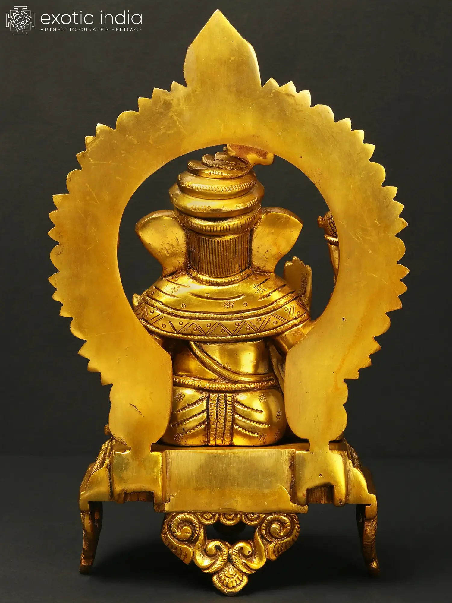 11" Turbaned Lord Ganesha Seated on Throne | Brass Statue