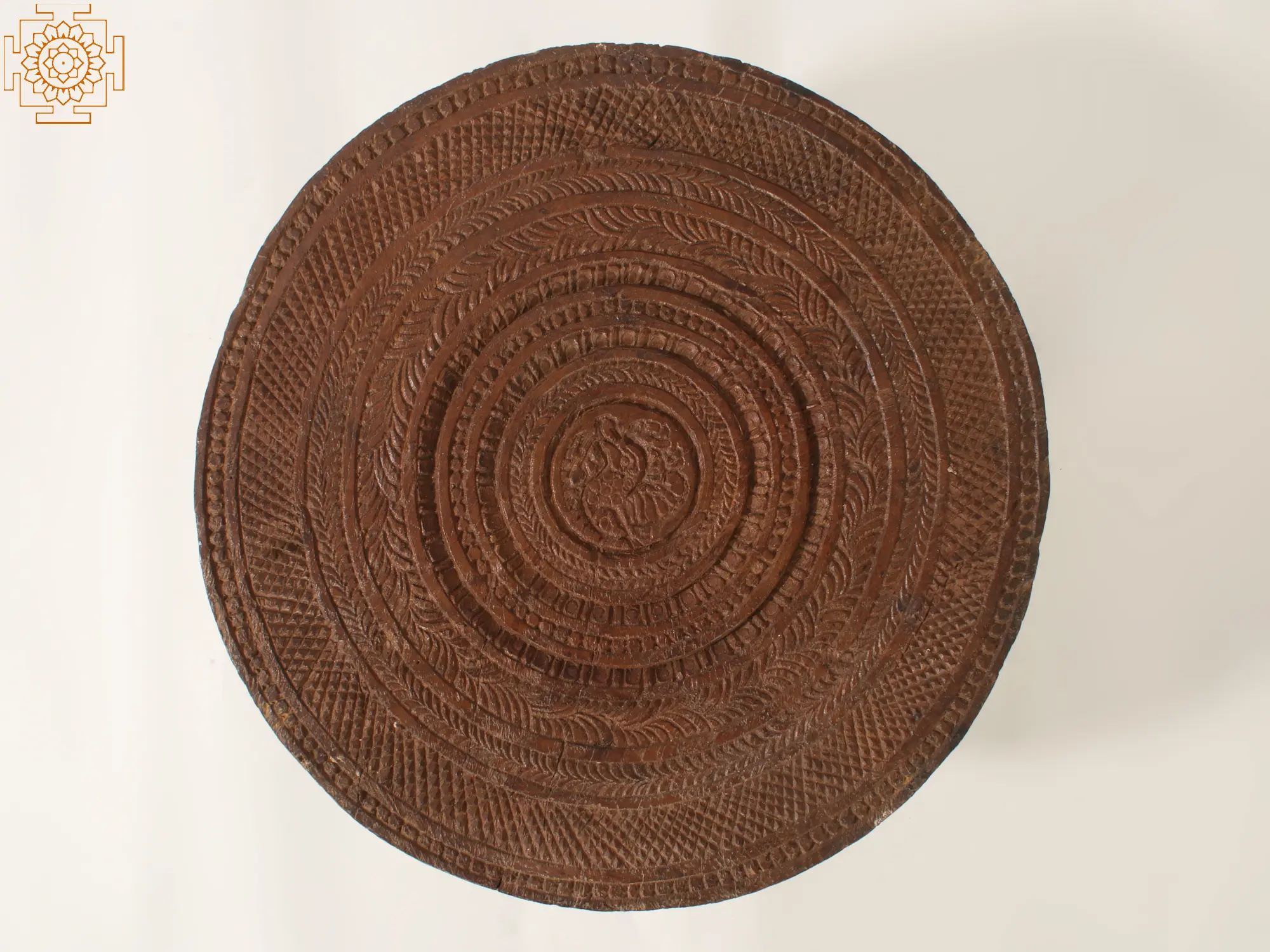 Crafted with precision and reverence, this mystical artwork (Puja Chowki) stands as a testament to artisanal mastery and spiritual devotion. Its exquisite woodwork, adorned with intricate carvings, creates an aura of serenity, inviting you to worship with pure intent. This round sanctuary for your sacred rituals embodies an earthly connection to the Almighty. Its wooden essence exudes warmth and grounding, evoking a harmonious synergy with nature. As you kneel upon its smooth surface, the Chowki’s elegant design elevates the essence of your puja, transforming the ordinary into an extraordinary communion between heart and spirit.