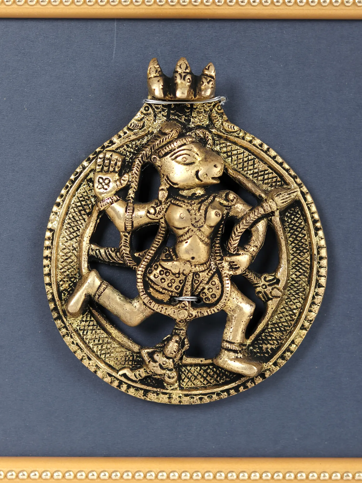 11" Wooden Framed Wall Hanging Lord Hanuman in Brass