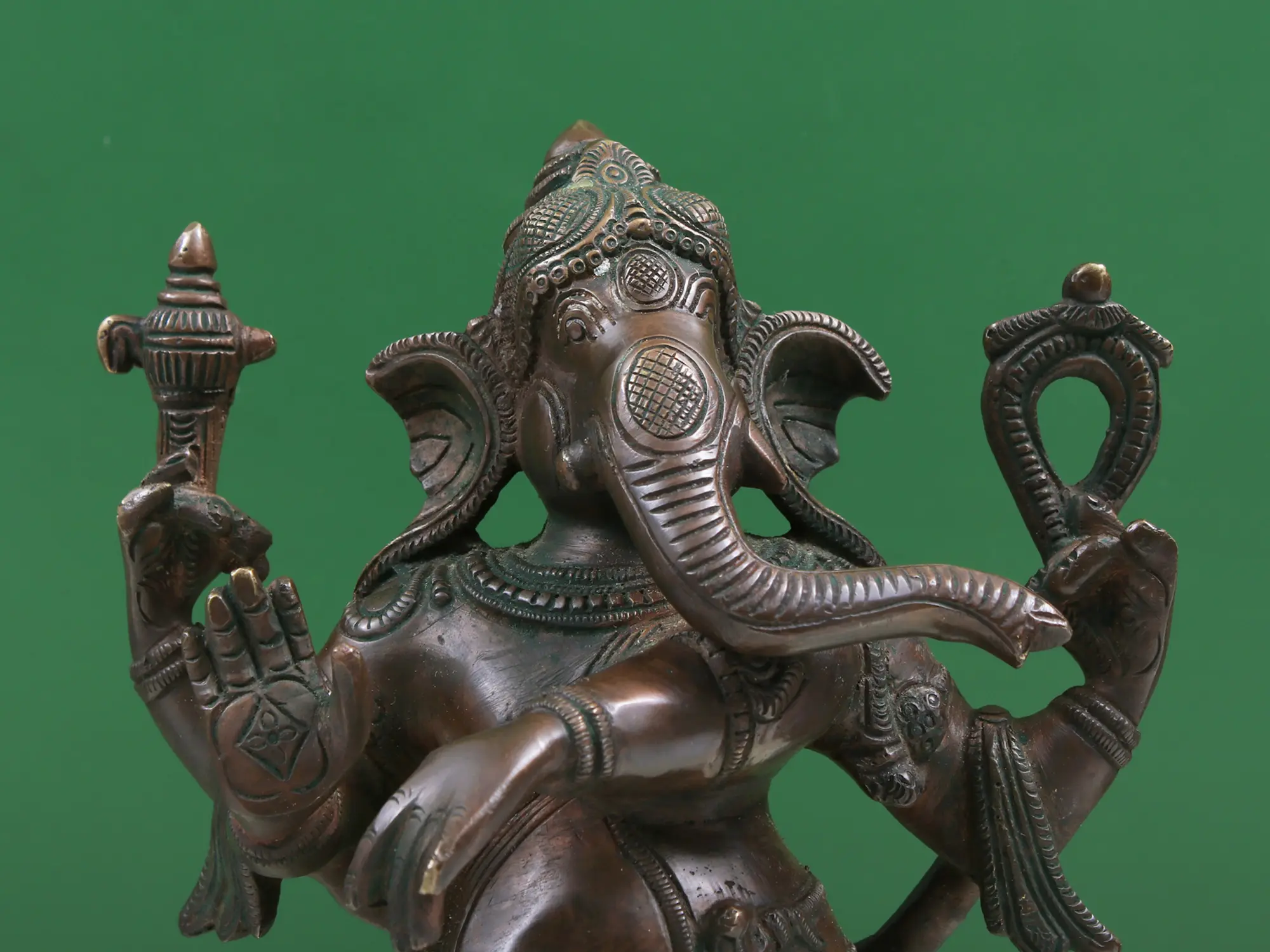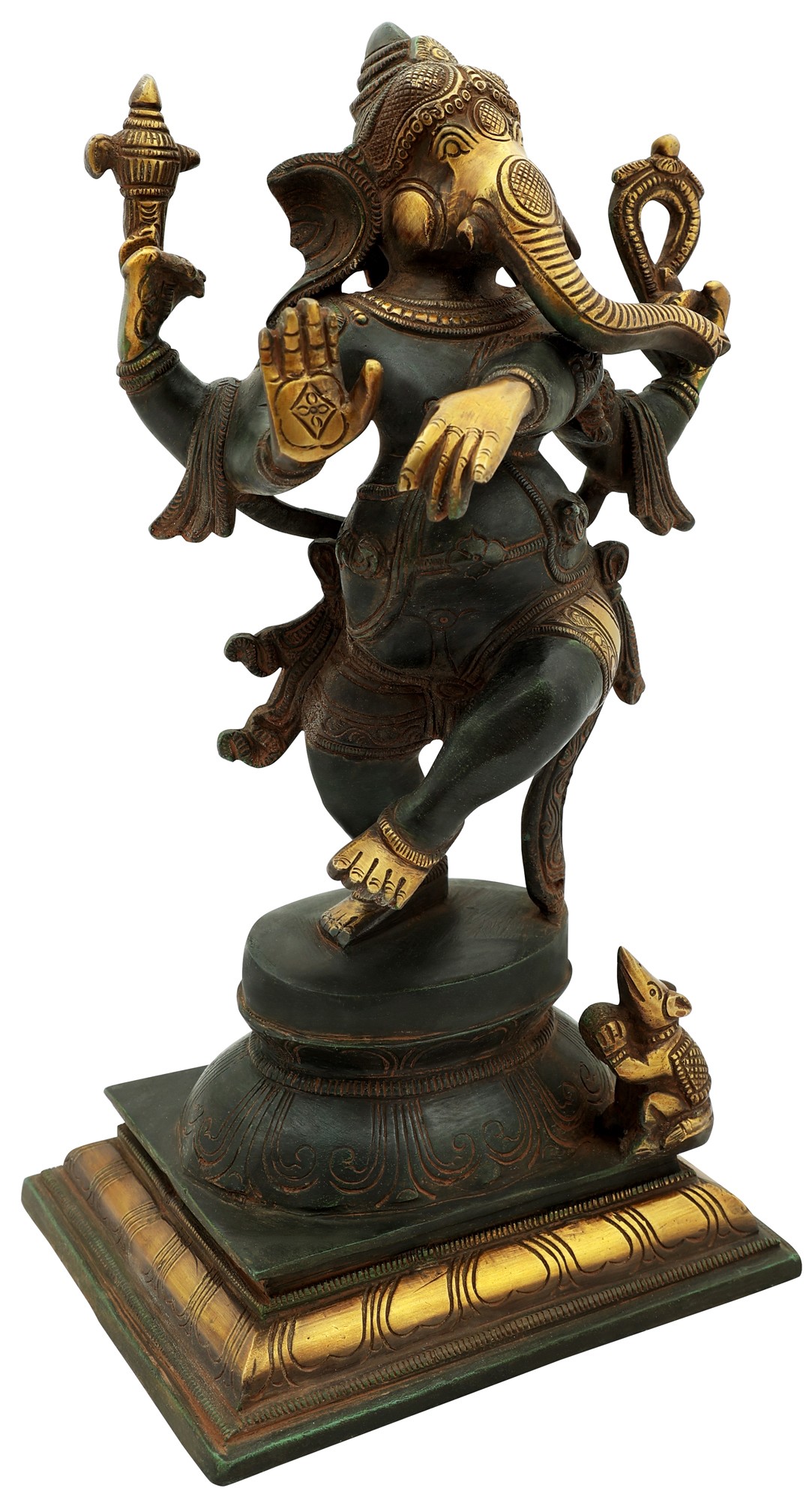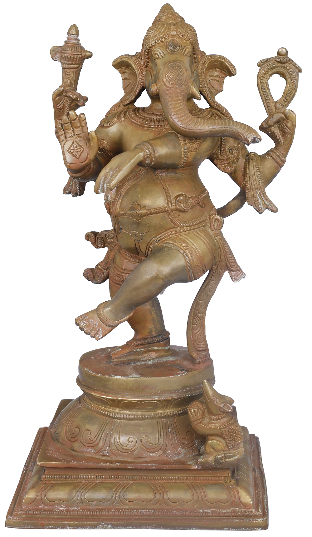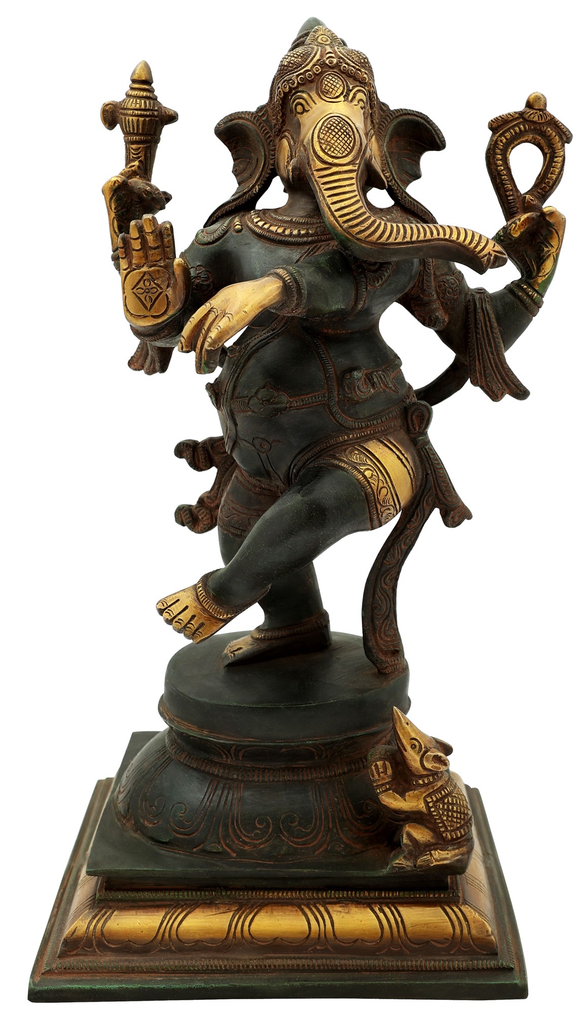 Lord Ganesha is the most widely loved baala-deva (child-deity) of the Hindu pantheon. His childlike qualities, such as innocence and wisdom and generosity with blessings, endear Him to the truly devoted. The murti that you see on this page is sculpted from pure brass and depicts the Lord in dance motion.