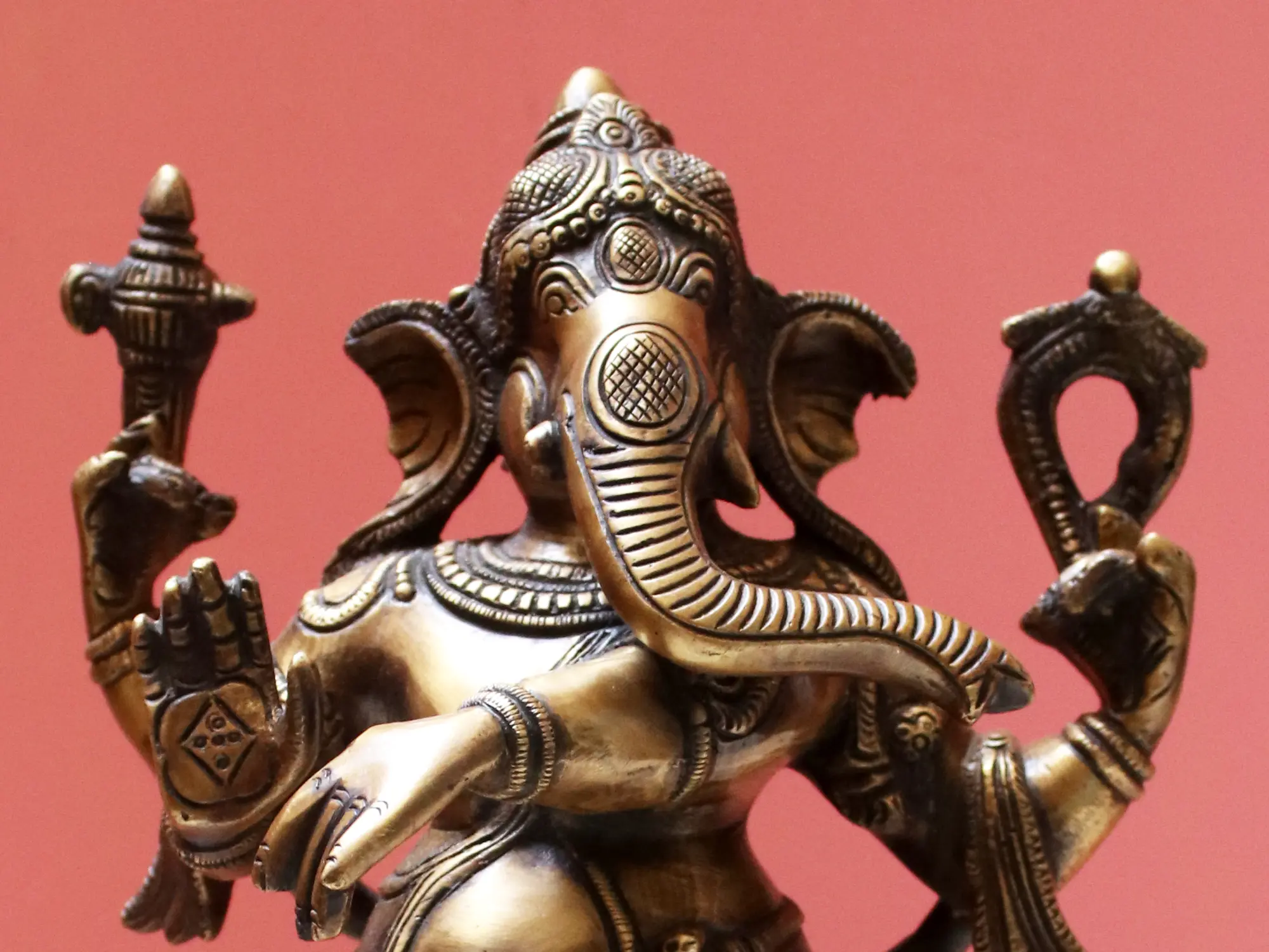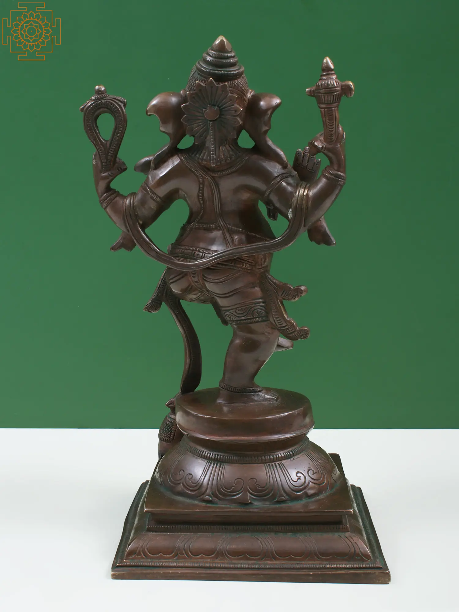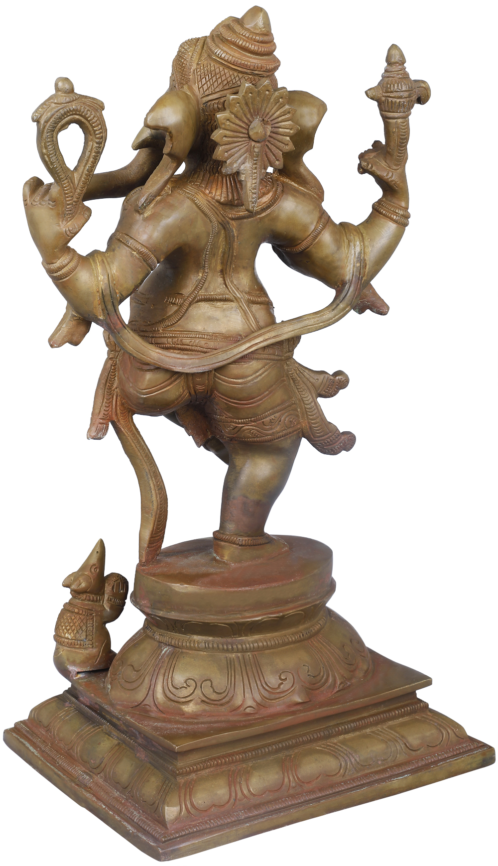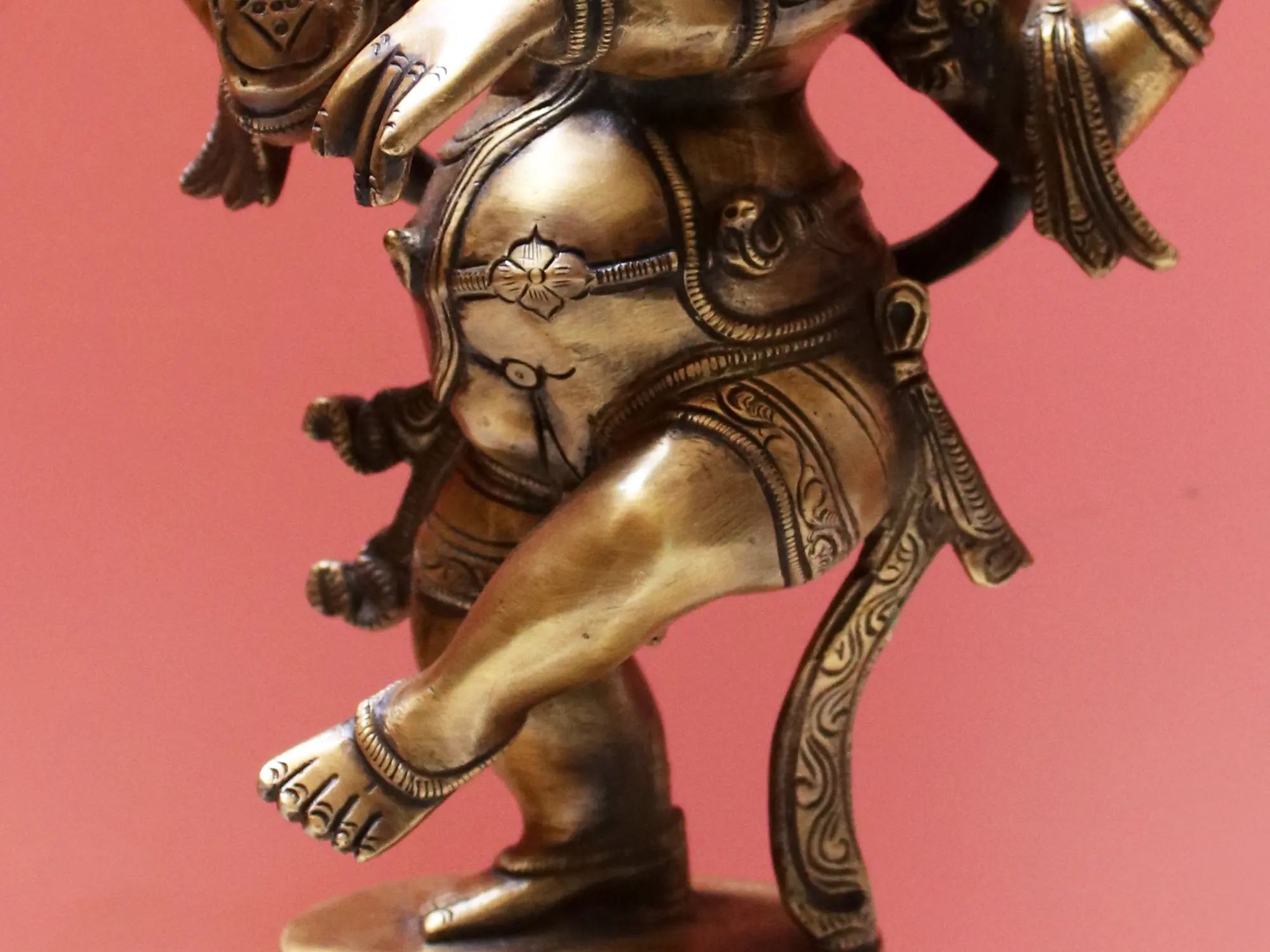 Lord Ganesha is the most widely loved baala-deva (child-deity) of the Hindu pantheon. His childlike qualities, such as innocence and wisdom and generosity with blessings, endear Him to the truly devoted. The murti that you see on this page is sculpted from pure brass and depicts the Lord in dance motion.