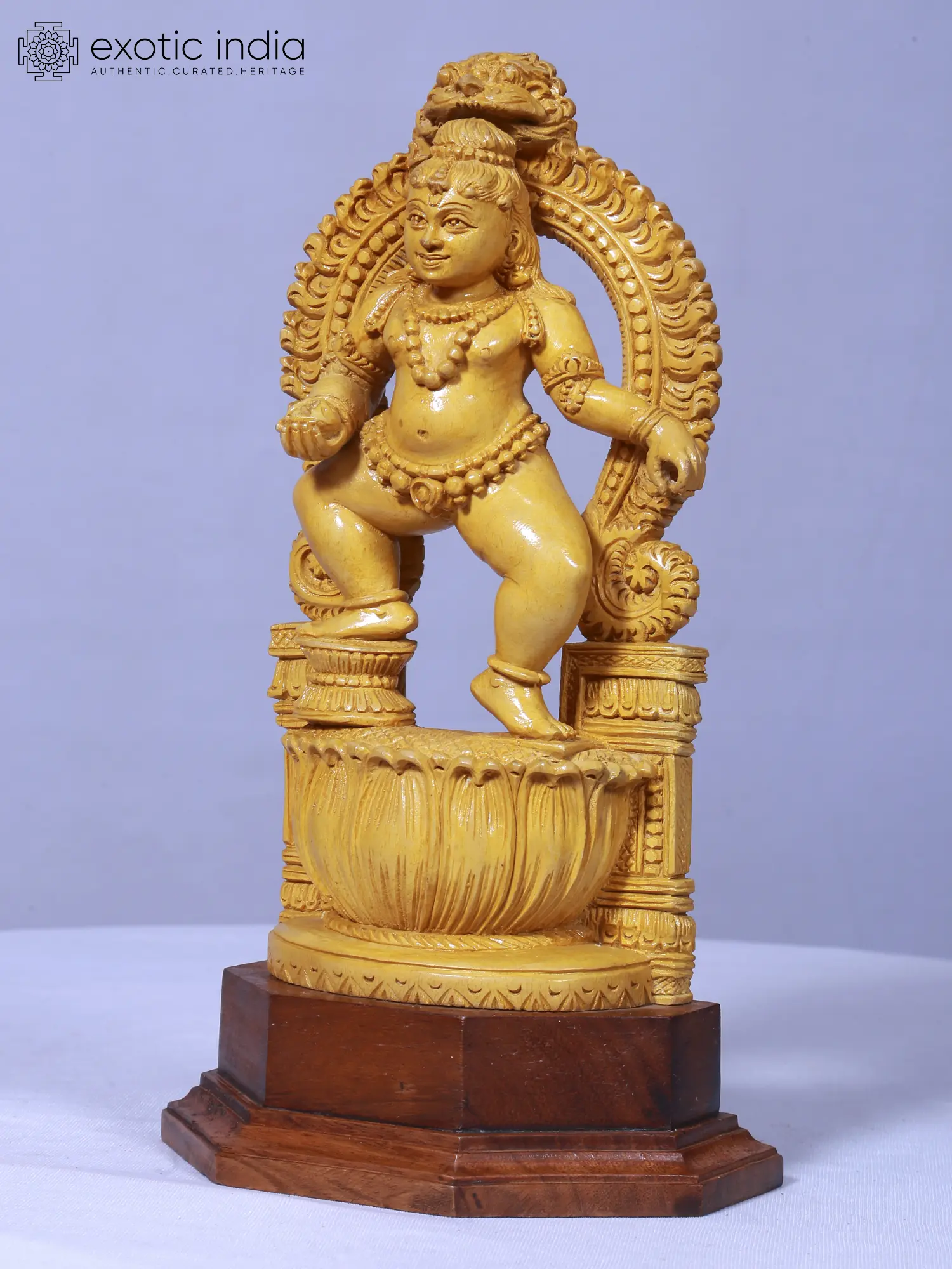 Wooden pedestal with Brass Ghungroos, Figures and Parrot Legs
