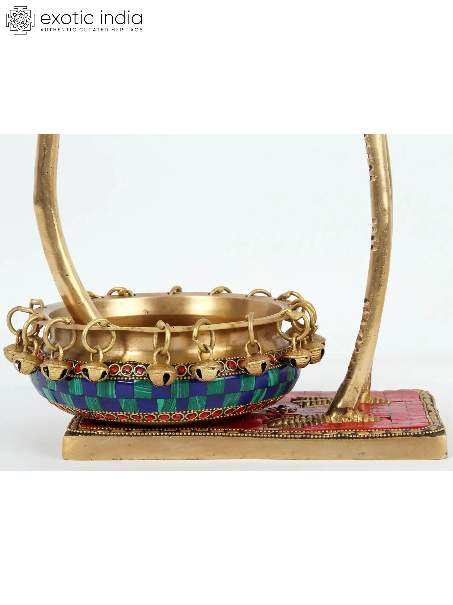The craftsmanship extends to the delicate details of the sculpture. The flamingo's legs are sculpted with a lifelike texture, adding to its realism. The Urli is further enhanced by a series of tiny brass bells, suspended from ornate loops around its rim. These bells, when gently moved, create a soft, melodious chime, adding an auditory element to the visual beauty. The base of the statue, also adorned with inlaid stones, provides a stable and decorative foundation, ensuring this piece will be a cherished centerpiece for years to come. This brass flamingo with its Urli is more than just a decorative item; it's an artistic expression that merges natural beauty with cultural heritage and symbolic significance.
