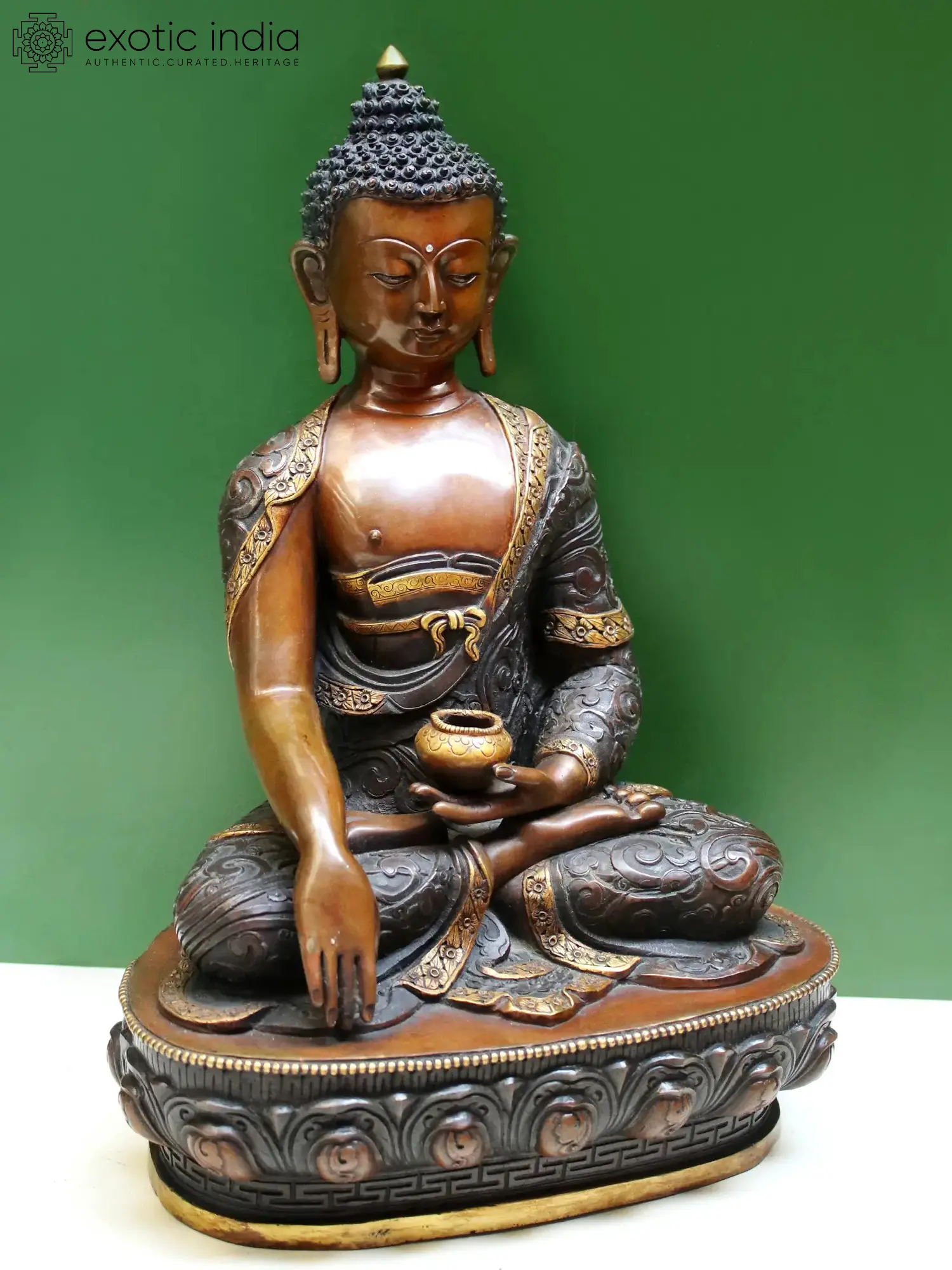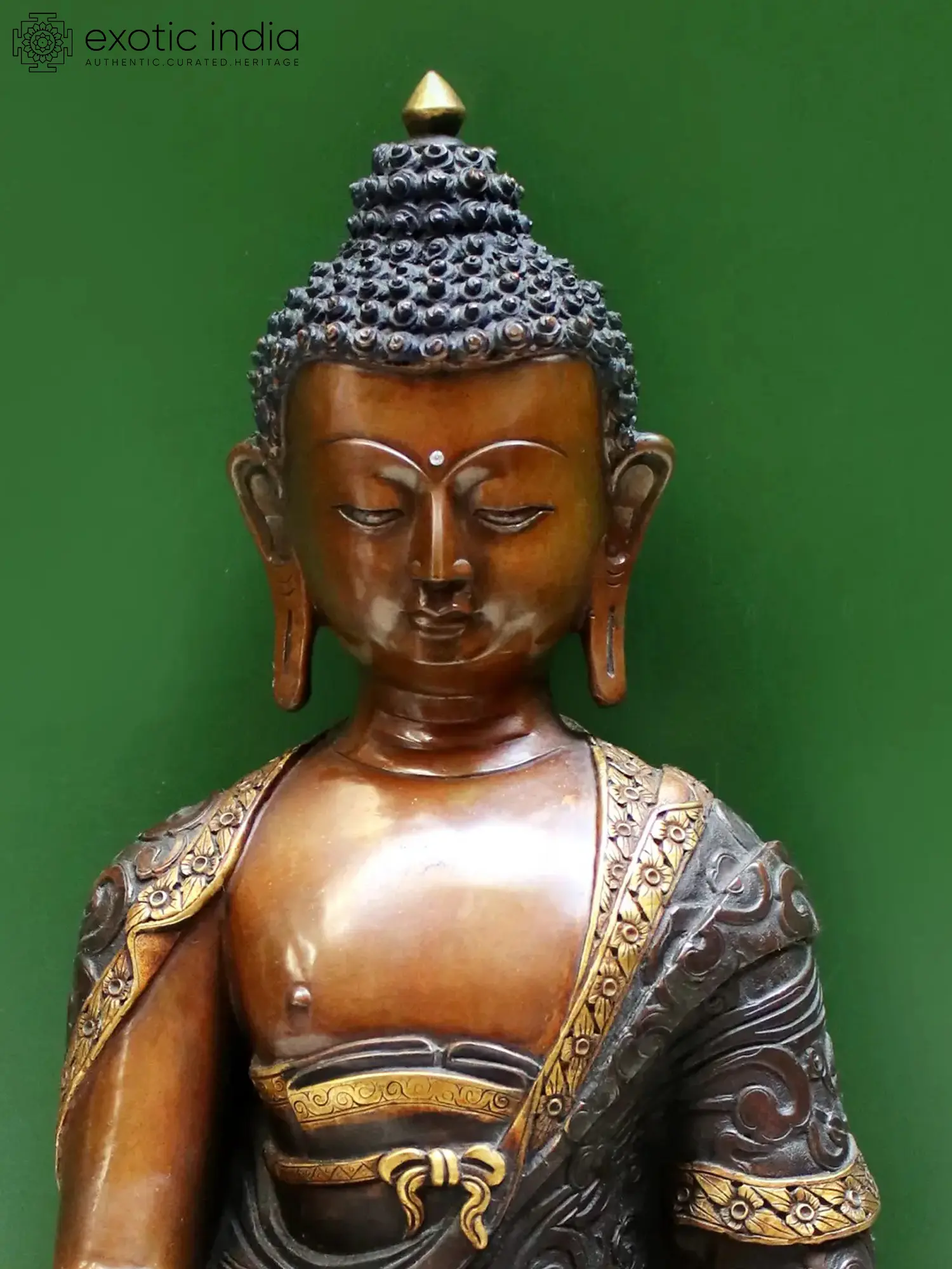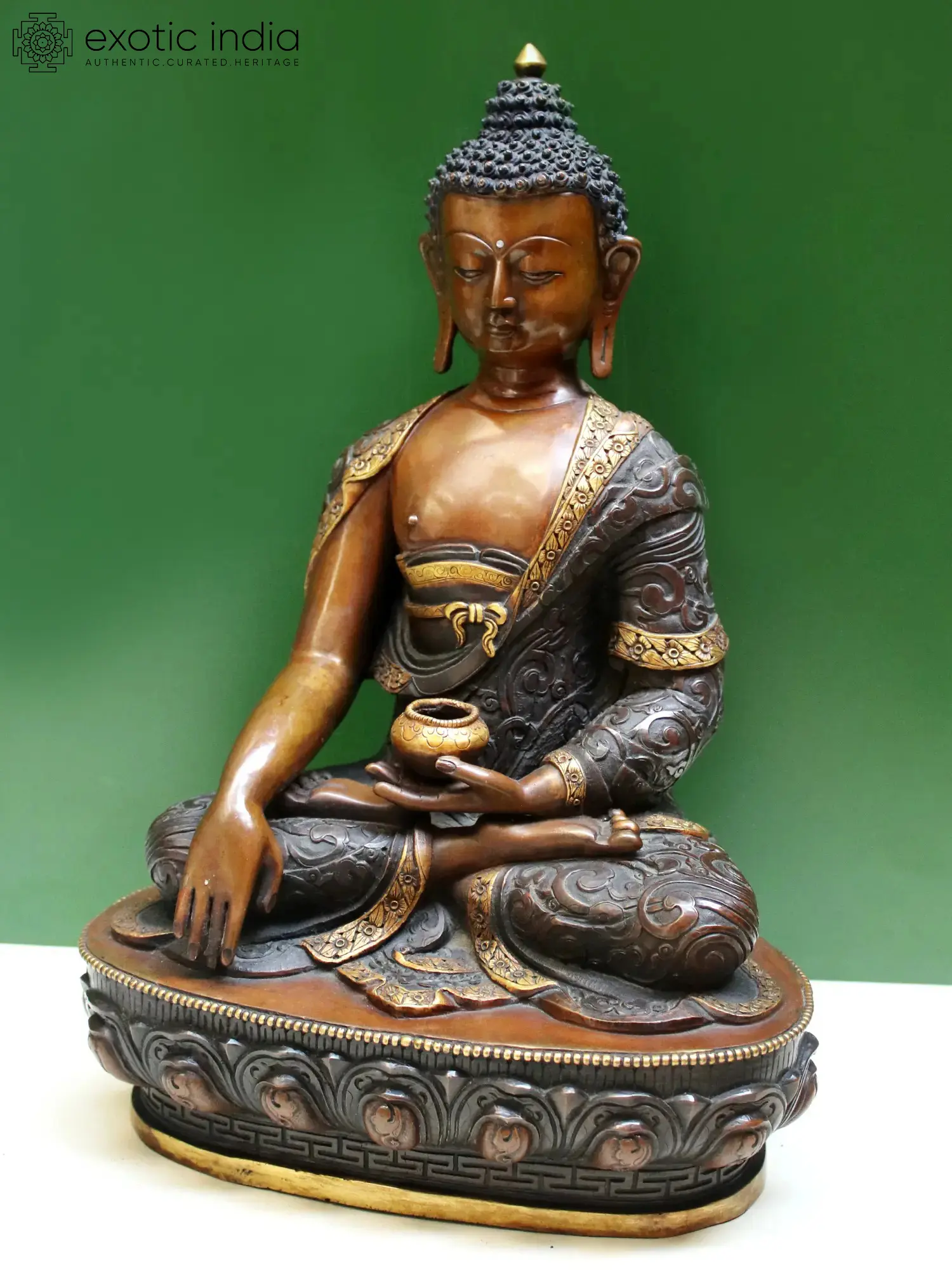 15" Lord Bhumisparsha Buddha Copper Statue | Copper with Gold Plated