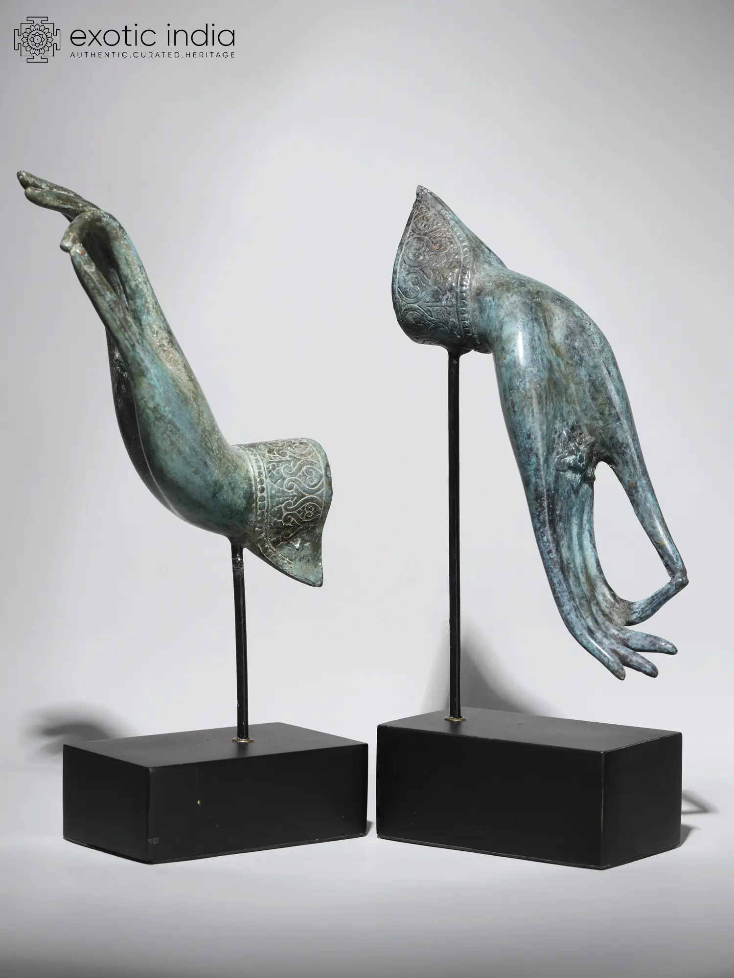 On separate stands, the hands in Abhaya (removing fear) and Varada (giving boons) are placed. Elongated fingers, a classic attribute of the divinity are accentuated by the artist in this artwork, to underline the heavenliness of the subject.