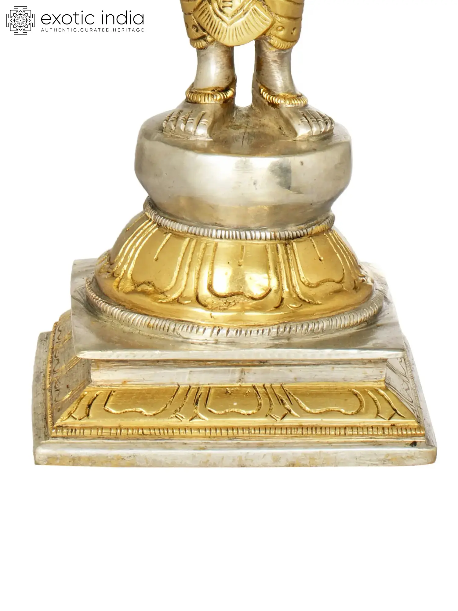 Embrace the grace and devotion of Devi Andal as she cradles a parrot in this handcrafted brass sculpture, lovingly made in India. Devi Andal, a revered Tamil poet and saint, symbolises unwavering devotion and love. In Tamil Hindu tradition - her connection with the parrot reflects her deep bond with Lord Krishna, representing the soul's yearning for union with the divine. This sculpture captures her tender love and spiritual passion. Invite the radiant energy of Devi Andal into your home, filling your surroundings with love, devotion, and spiritual ardour.