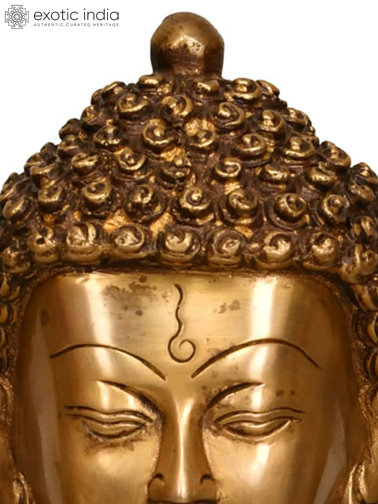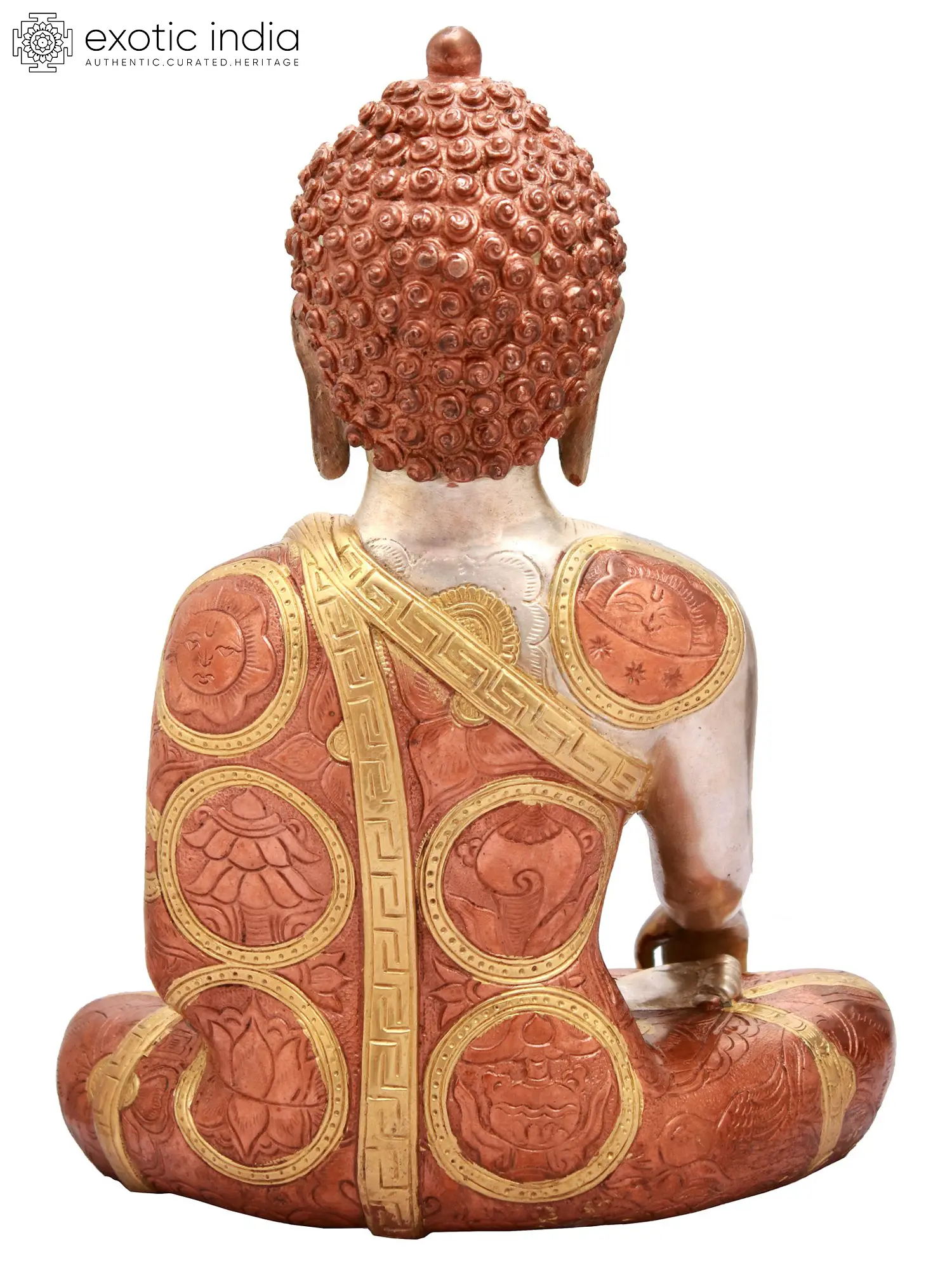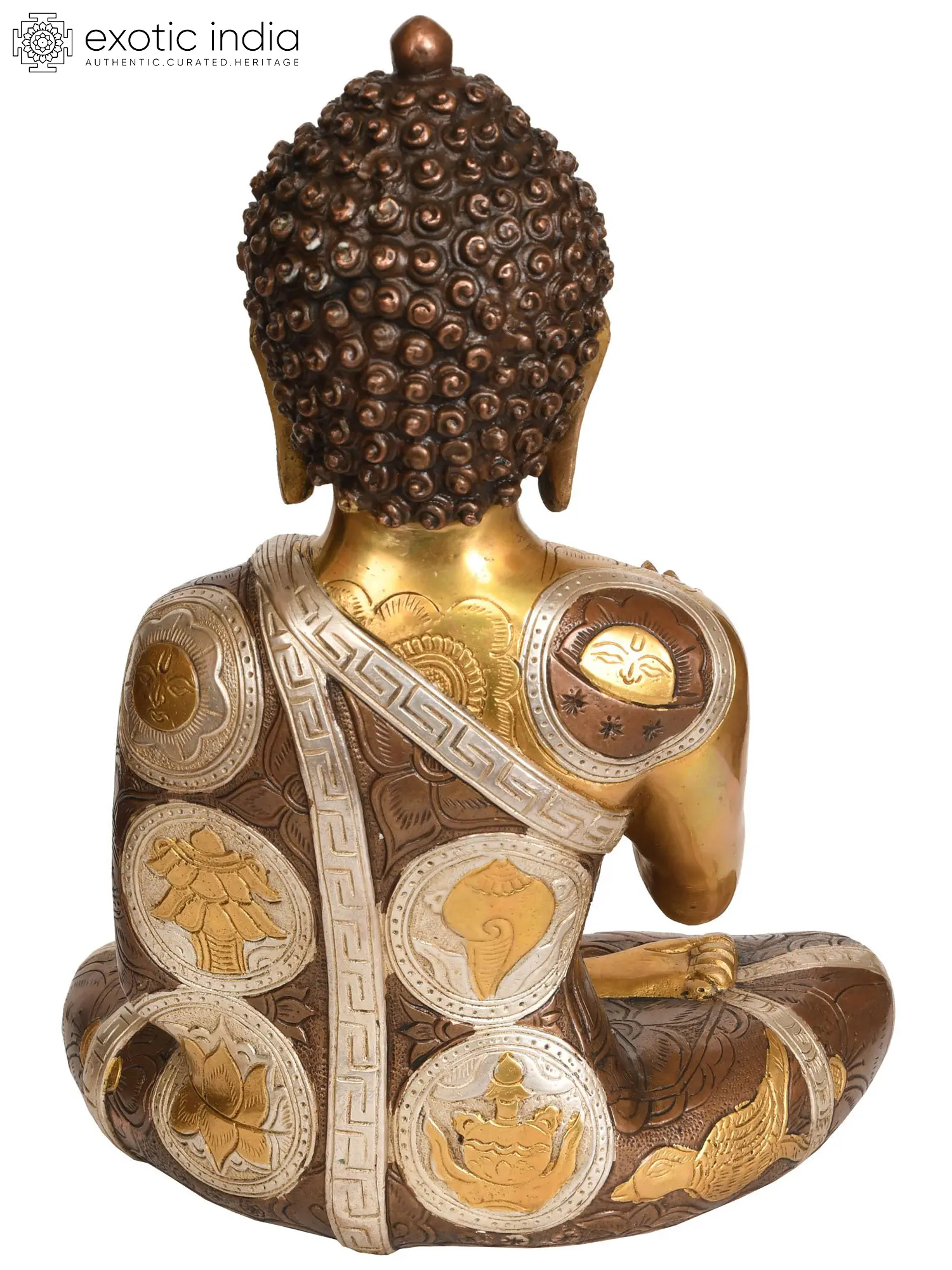 12" Buddha, His Hand In Vitark Mudra, Auspicious Symbols/Mantras On The Robe In Brass | Handmade | Made In India
