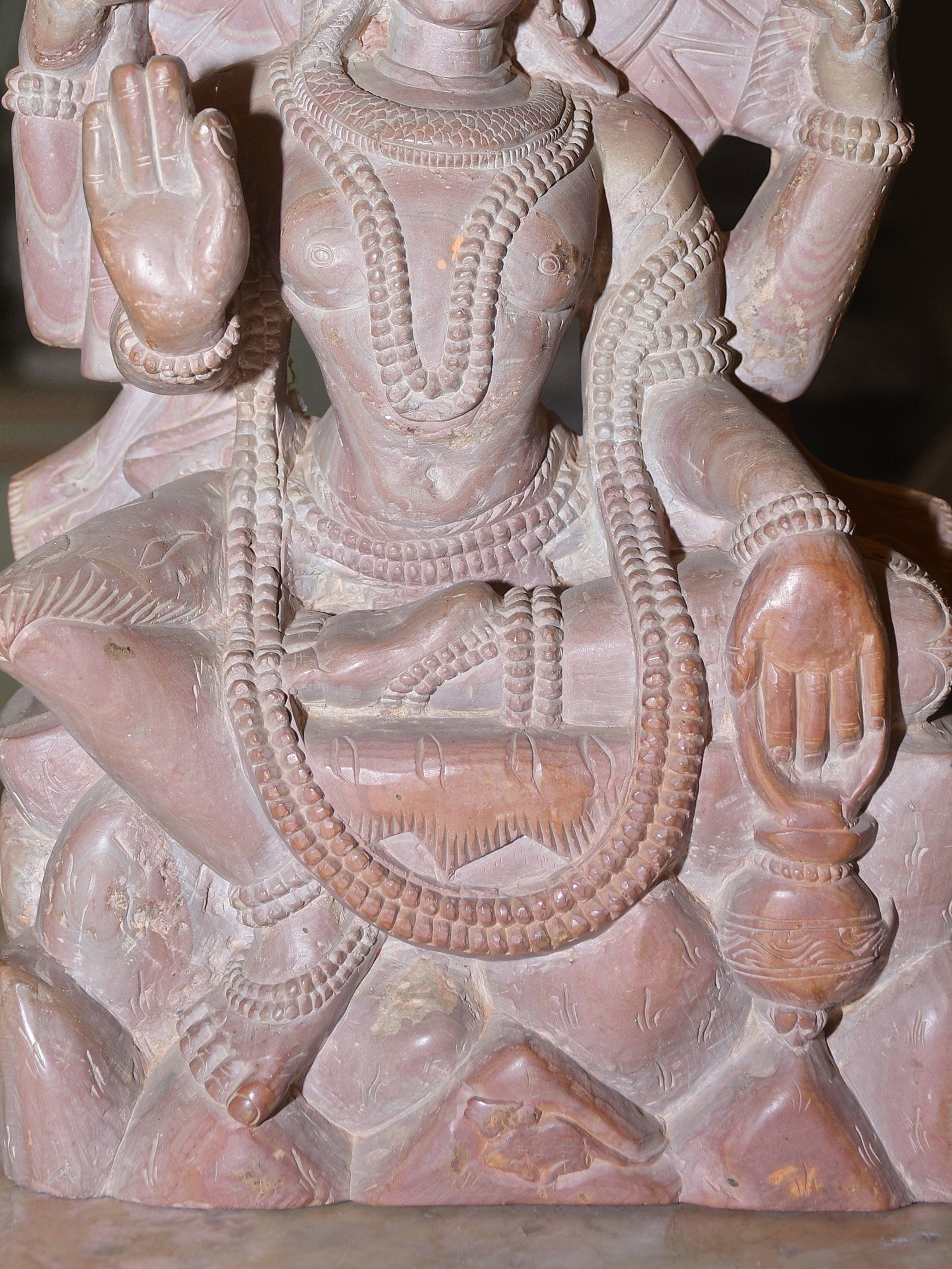 Crafted from Orissa stone, this statue embodies the rich artistic heritage of the Indian state of Odisha, formerly known as Orissa. For centuries, Odisha has been a renowned center for stone carving, with artisans passing down their skills through generations. The soft, yet durable nature of Orissa stone lends itself beautifully to intricate detailing, allowing the sculptor to bring forth the subtle textures and nuances of Shiva's divine form. The warm, earthy tones of the stone further enhance the statue's aesthetic appeal, making it a captivating piece that resonates with ancient traditions and spiritual devotion. The sculpting style, with its flowing lines and detailed ornamentation, is characteristic of the region, reflecting a deep understanding of iconography and artistic expression. ––––––––––––––––––