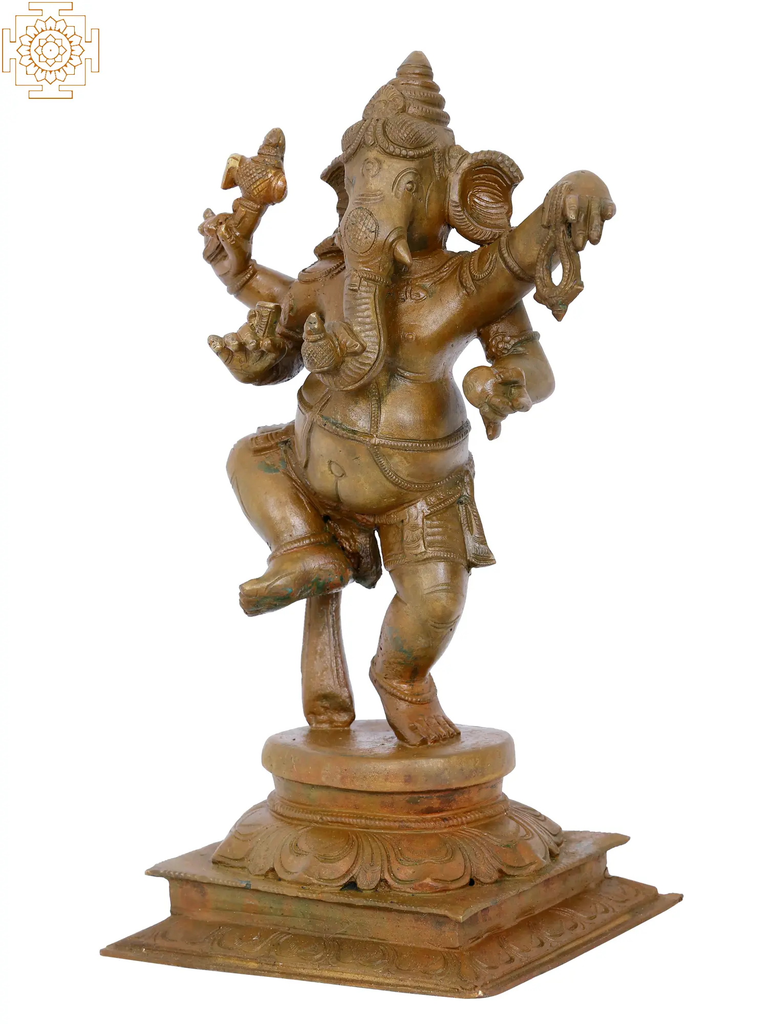 14" Dancing Ganesha Bronze Statue | Madhuchista Vidhana (Lost-Wax) | Panchaloha Bronze from Swamimalai