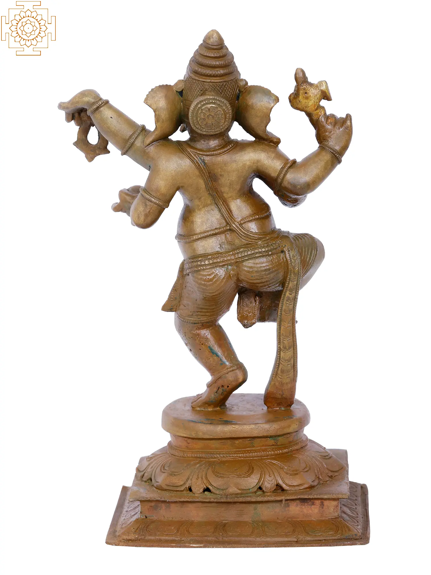 Dynamic Dancing Ganesha Bronze Sculpture (9") - Panchaloha Metalwork