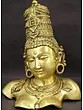 Discover the regal presence of Devi Uma in this Chola-style brass bust, crafted with utmost skill and devotion in India. Uma, the divine consort of Lord Shiva, symbolises grace, beauty, and love. This sculpture showcases the artistic mastery of the Chola style, reflecting the deep connection of the artisans with their cultural heritage that accentuate Uma’s divine feminine form in all her glory. Place it in your sacred space to invite the blessings and grace of Devi Uma, creating an atmosphere of beauty, love, and spiritual fulfilment.