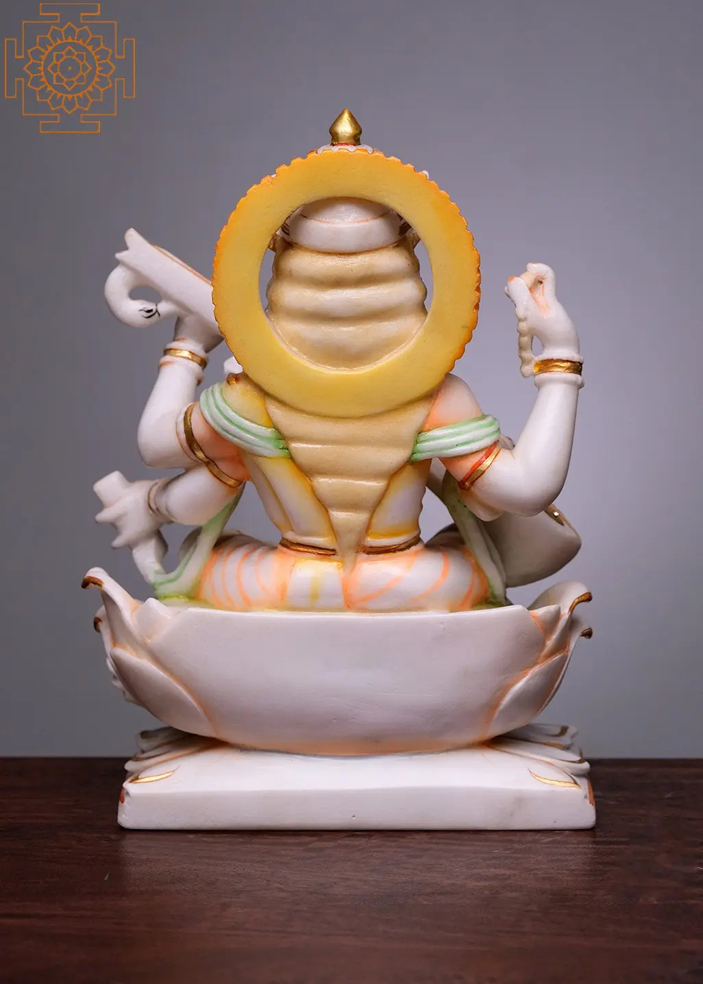 Each curve and contour of this statue is a testament to the skill of the artisan. The delicate facial features, the flowing drapery, and the intricate ornamentation on her crown and jewelry are rendered with remarkable precision. The subtle application of color accents brings vibrancy to the marble, highlighting the divine radiance of the Goddess without detracting from the inherent beauty of the stone. The golden accents adorning her attire and headdress add a touch of regal splendor, further enhancing her celestial aura. This 12-inch statue is not merely an object of devotion but a piece of art that embodies spiritual depth and aesthetic sophistication. It is a perfect gift for students, artists, musicians, writers, or anyone seeking inspiration, clarity, and the blessings of wisdom.