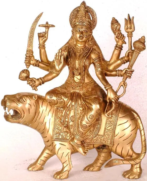 12" Eight Armed Goddess Durga In Brass | Handmade | Made In India
