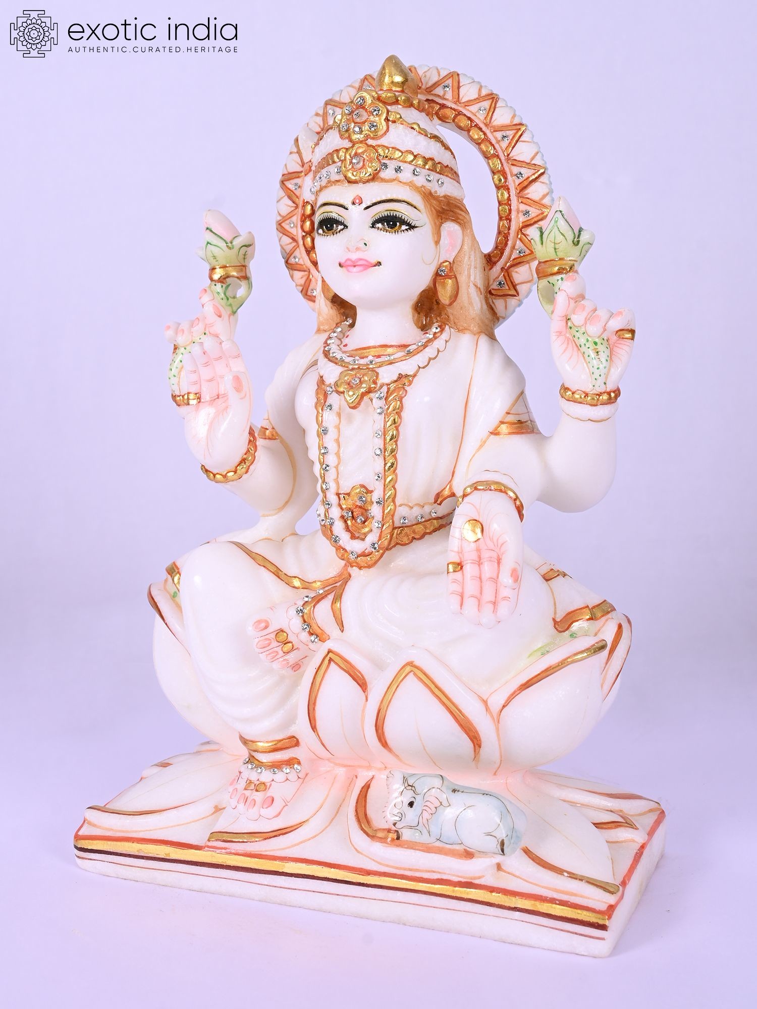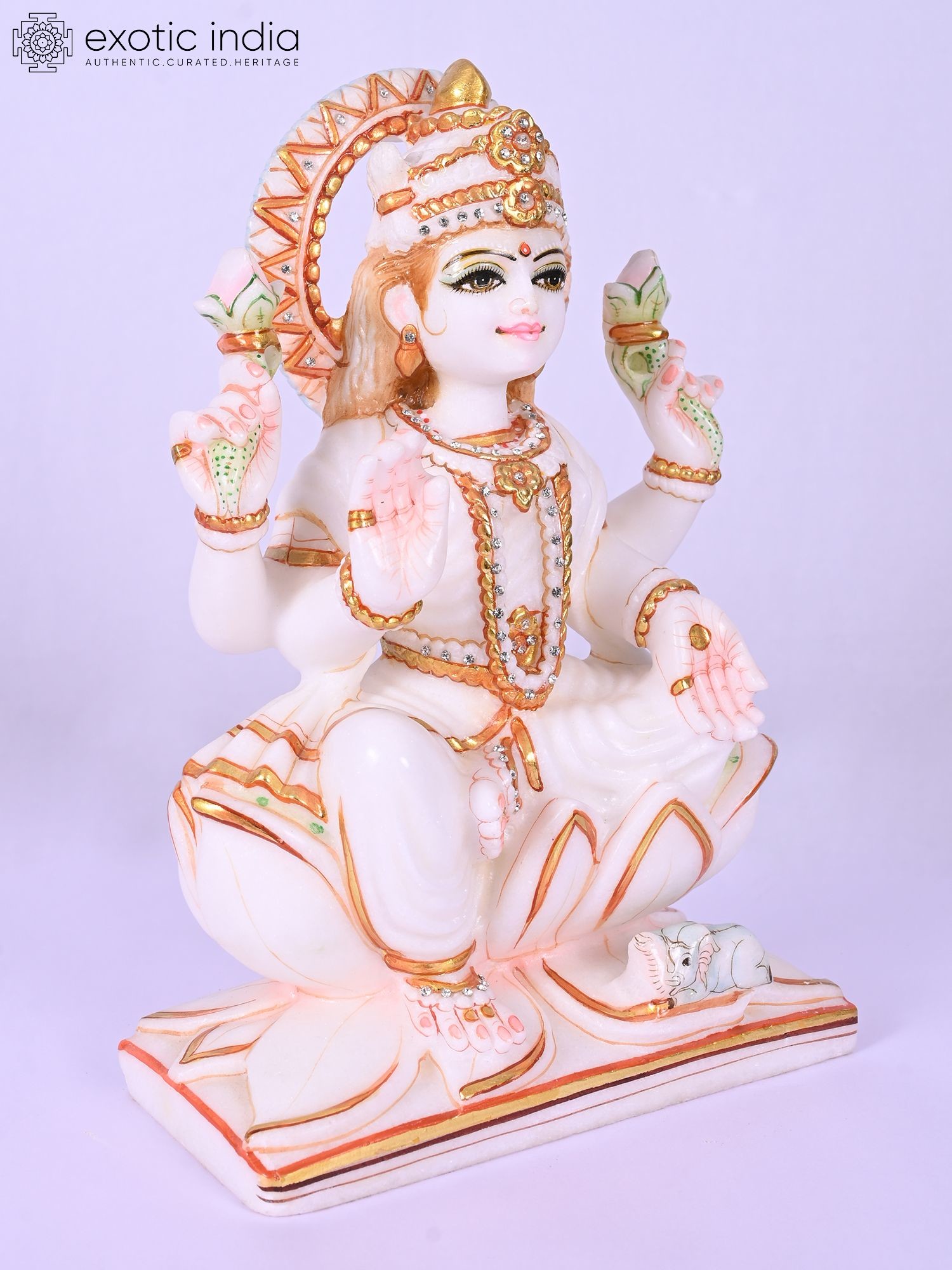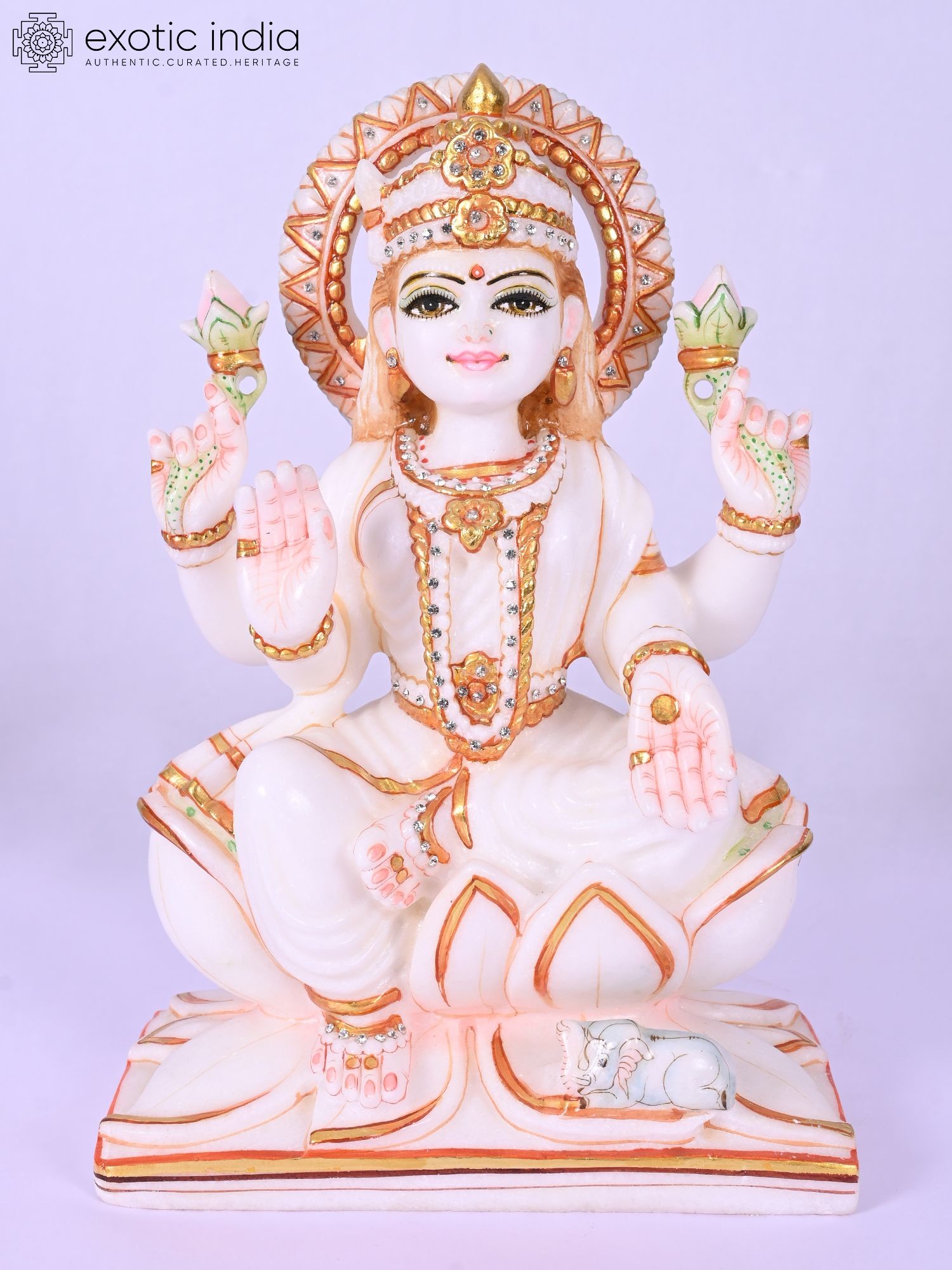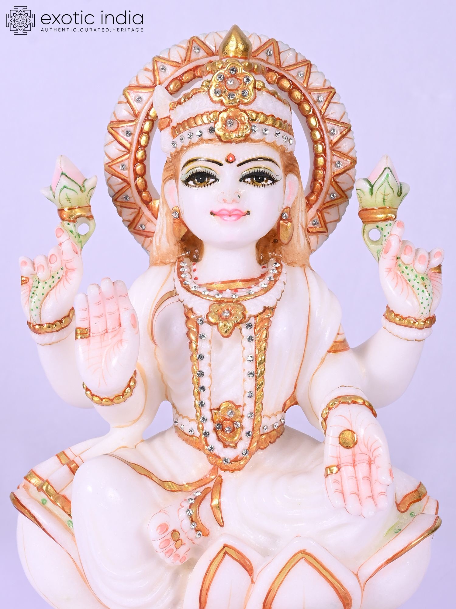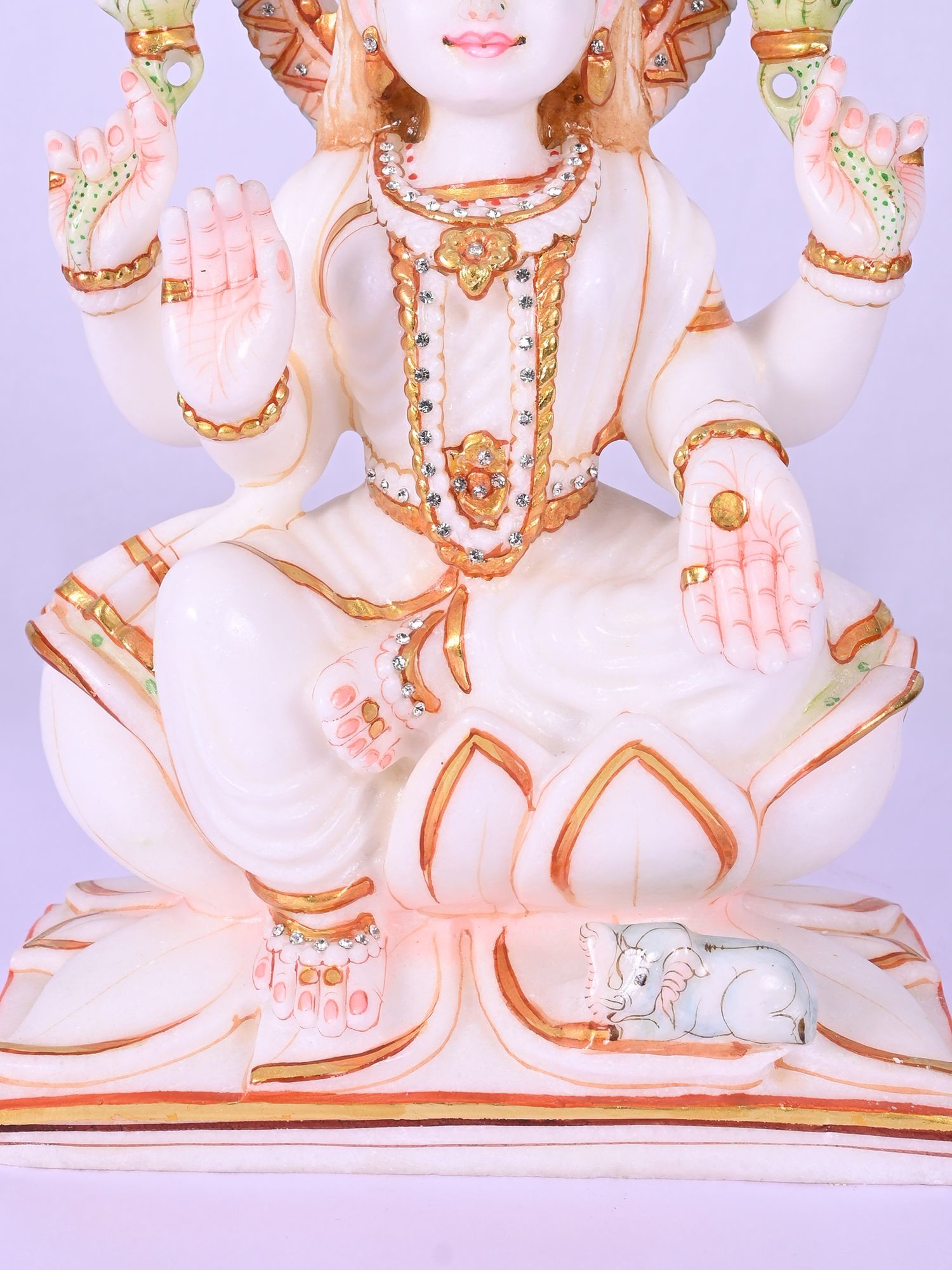 18" Hindu Goddess Lakshmi Statue in Super White Makrana Marble