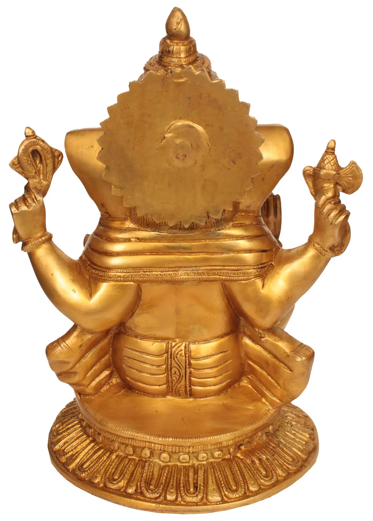 12" Four Armed Seated Ganesha Granting Abhaya In Brass | Handmade | Made In India
