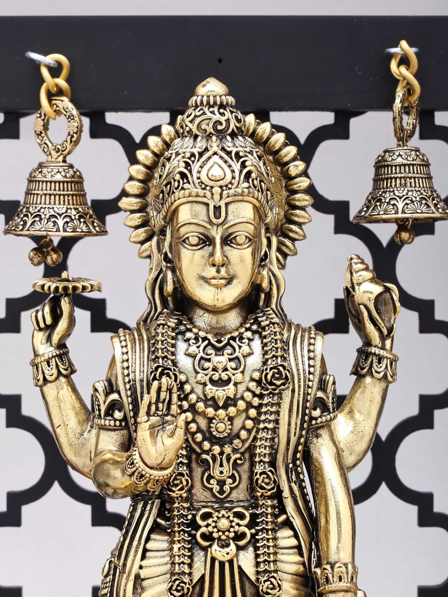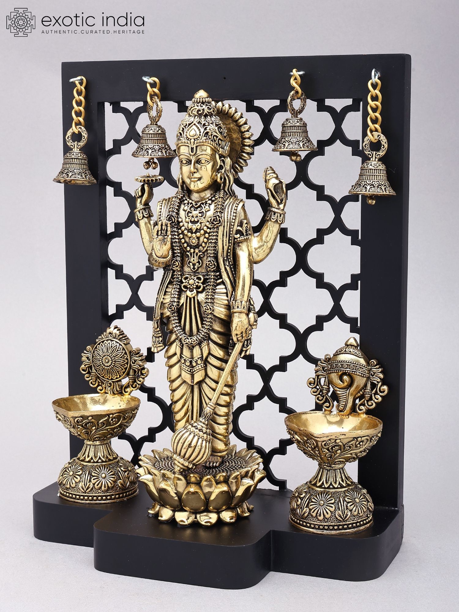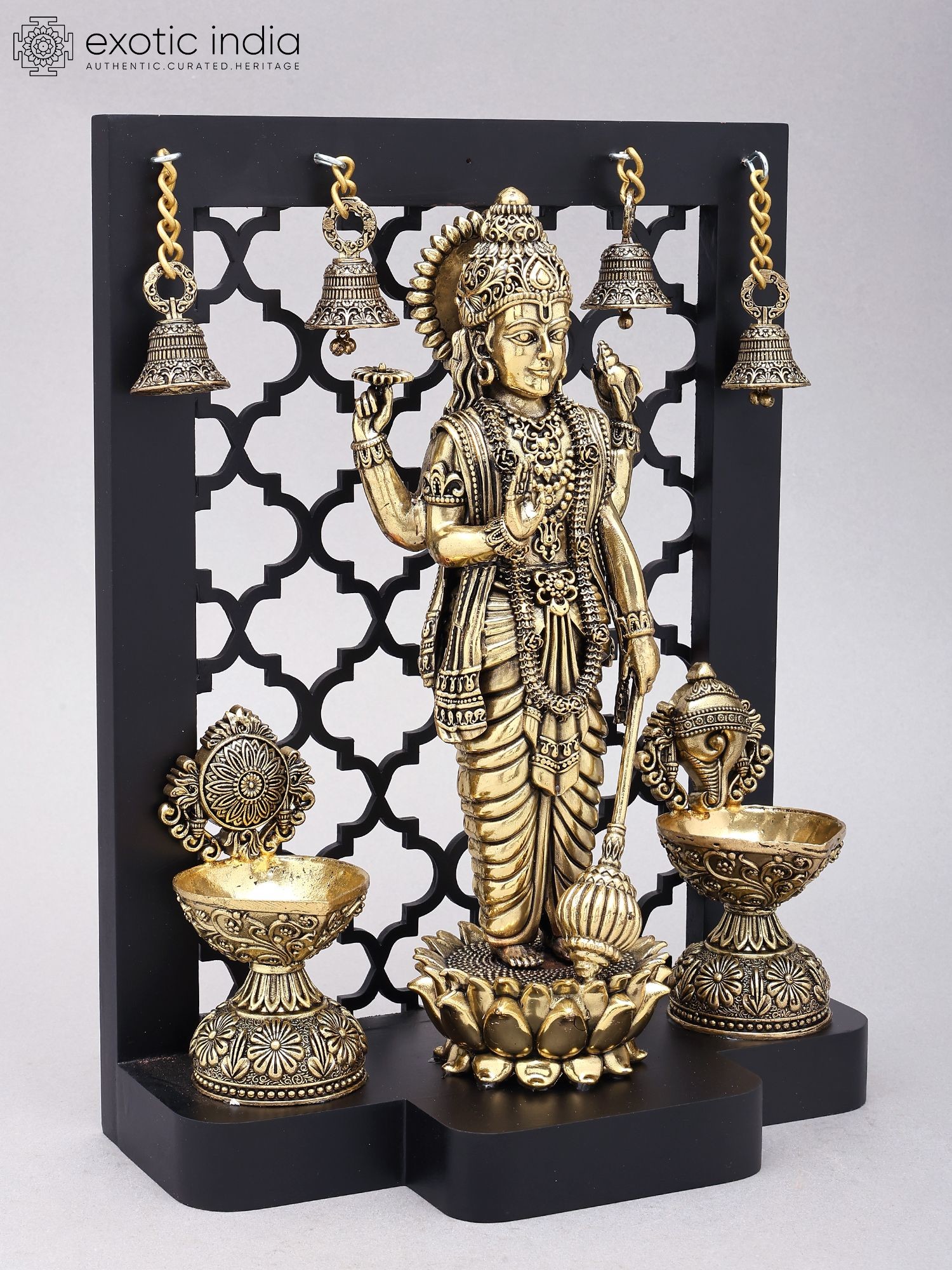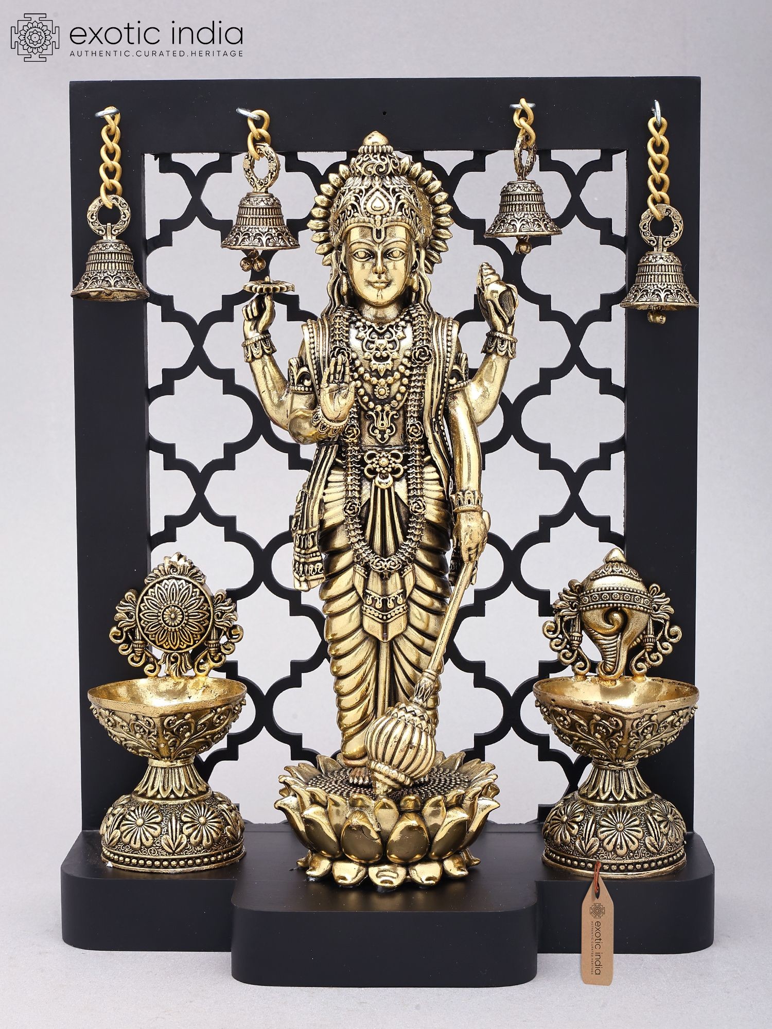 13" Four Armed Standing Lord Vishnu Brass Statue | Home Temple Murti