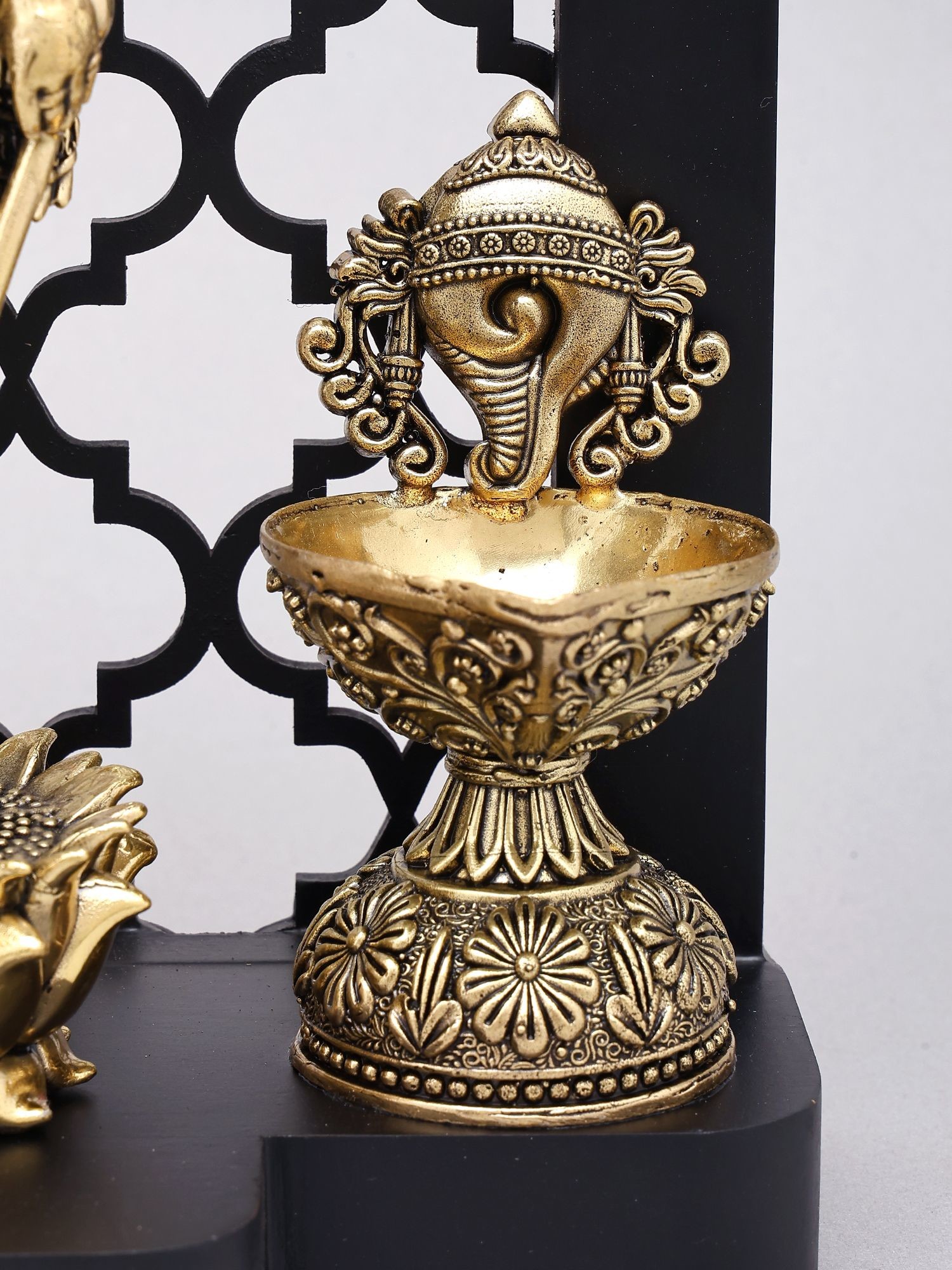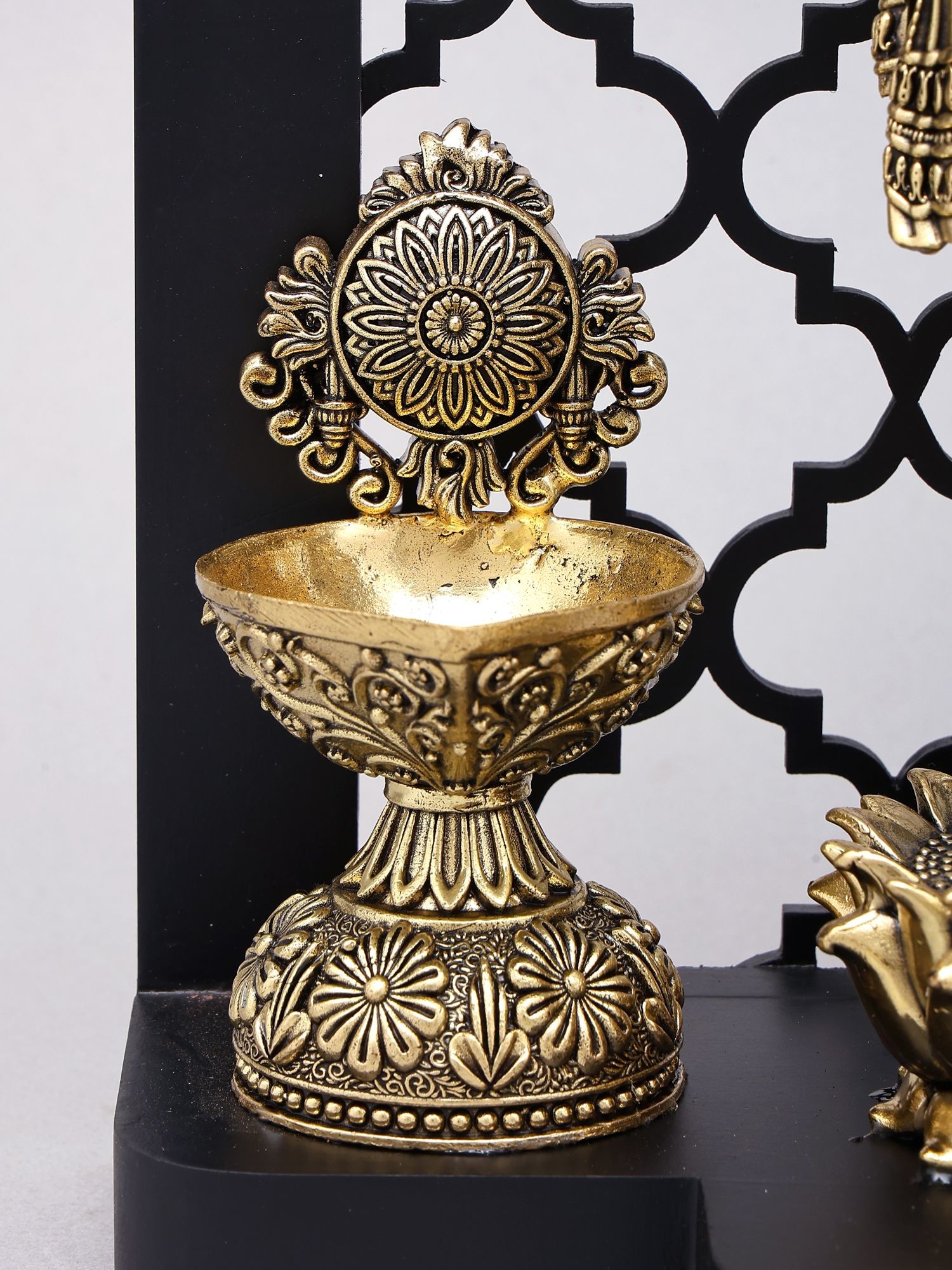 Includes traditional oil lamps (diyas) and decorative bells, adding to the divine ambiance.