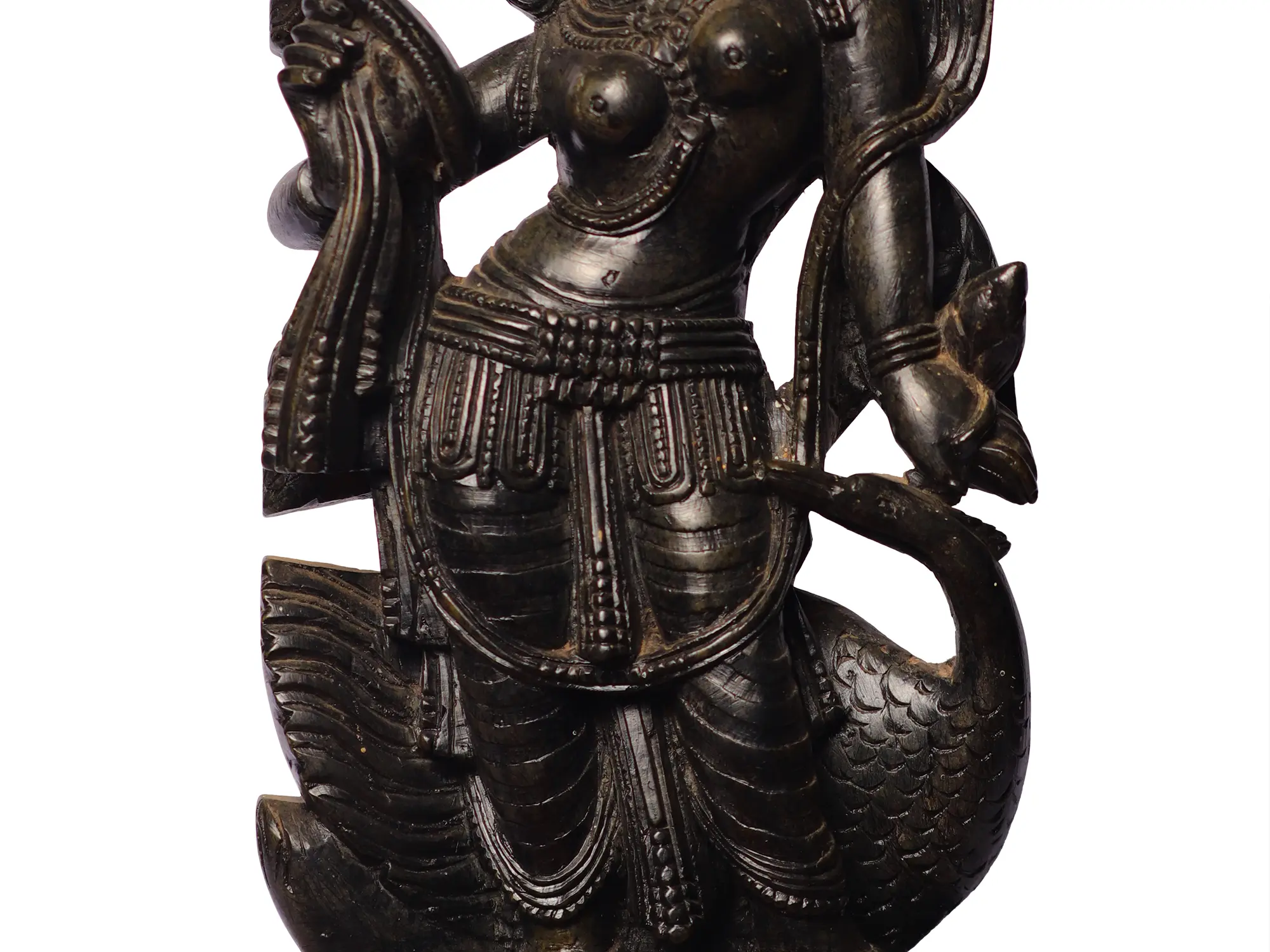 The presence of the swan is particularly significant, carrying profound symbolic weight across various cultures and mythologies. In Hinduism, the Hamsa, or swan, is the mount of Saraswati, the goddess of knowledge, music, art, wisdom, and learning. It represents purity, knowledge, and the ability to discern between the real and the unreal, the eternal and the transient. The swan's ability to separate milk from water is a metaphor for the spiritual seeker's capacity to distinguish truth from illusion. In this sculpture, the swan acts as a loyal companion and a symbol of the divine knowledge the attendant serves. The attendant's pose, perhaps reaching out or reverently holding a floral offering, suggests a moment of sacred service or worship. This imagery evokes the rich heritage of temple art and the devotional practices that have shaped Indian culture for millennia. This piece is more than just a decorative item; it is a testament to an ancient artistic lineage and a conduit to a spiritual legacy. Its presence can bring an aura of peace, wisdom, and aesthetic refinement to any space, serving as a constant reminder of the beauty found in devotion and the enduring power of artistic expression. It is a treasure to be cherished for its artistic merit and its deep cultural and spiritual resonance.