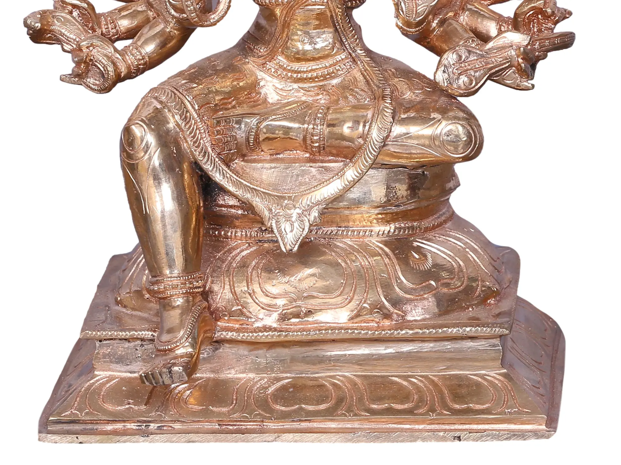 This magnificent bronze statue captures Vishnu, the Preserver and Protector of the universe, in a divine form that resonates with the profound complexities of existence. Vishnu, a central deity in Hinduism, is revered for his role in maintaining dharma, cosmic order, and righteousness. His avatars, such as Rama and Krishna, are central to epic narratives that continue to inspire millions. This representation, with its multiple heads and numerous hands, speaks to Vishnu's omnipresence and his infinite capacity to manage the vast workings of creation, preservation, and destruction.