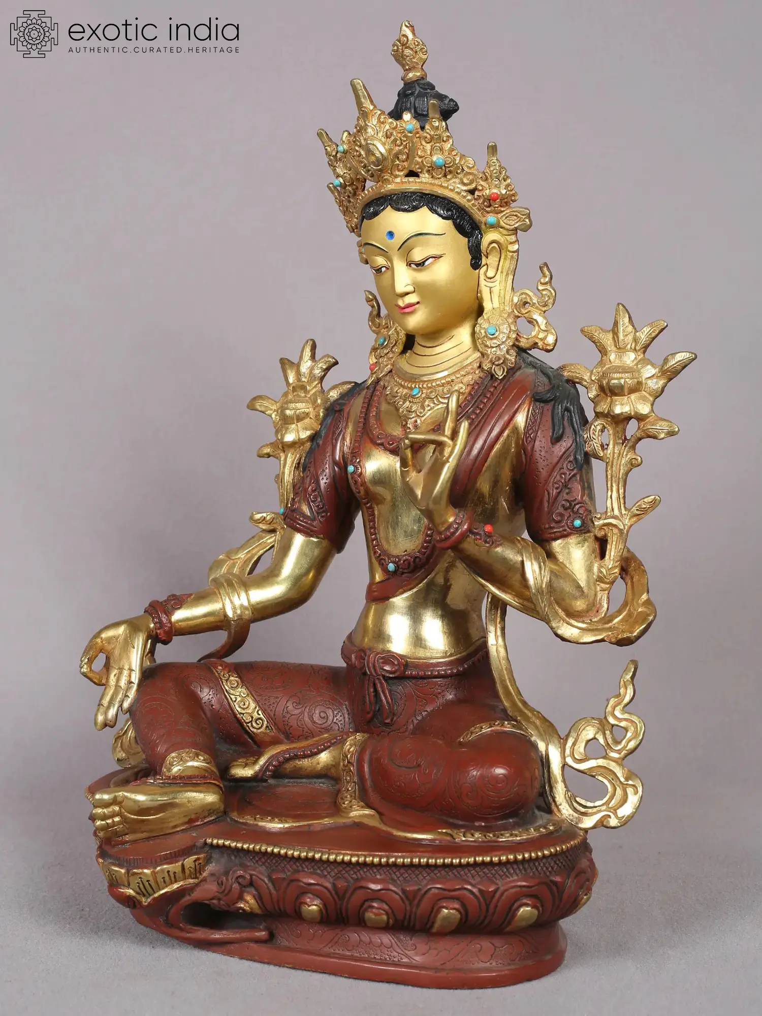 Green Tara's adornments hold profound significance. Her preference for Diamonds, Clear Crystal, Malachite, Emerald, Rose Quartz, and Watermelon Tourmaline (particularly pink and green stones) in her jewelry symbolizes qualities like clarity, healing, compassion, and spiritual growth. These precious gemstones emphasize her role as a compassionate deity and amplify her ability to assist devotees in overcoming suffering and obstacles.