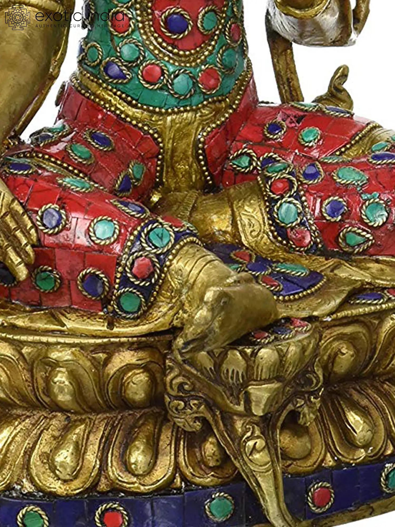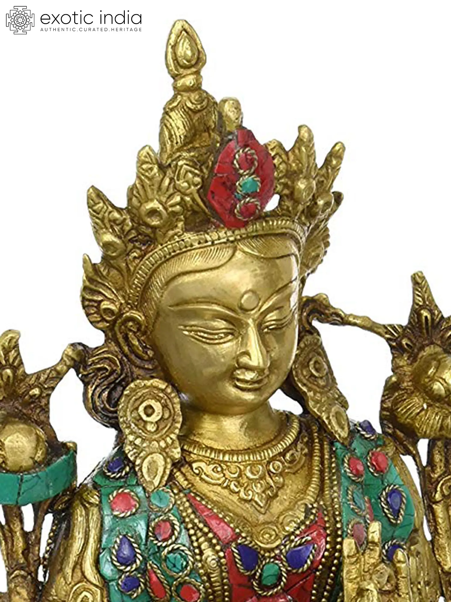 12" Goddess Green Tara (Tibetan Buddhist Deity) In Brass | Handmade | Made In India