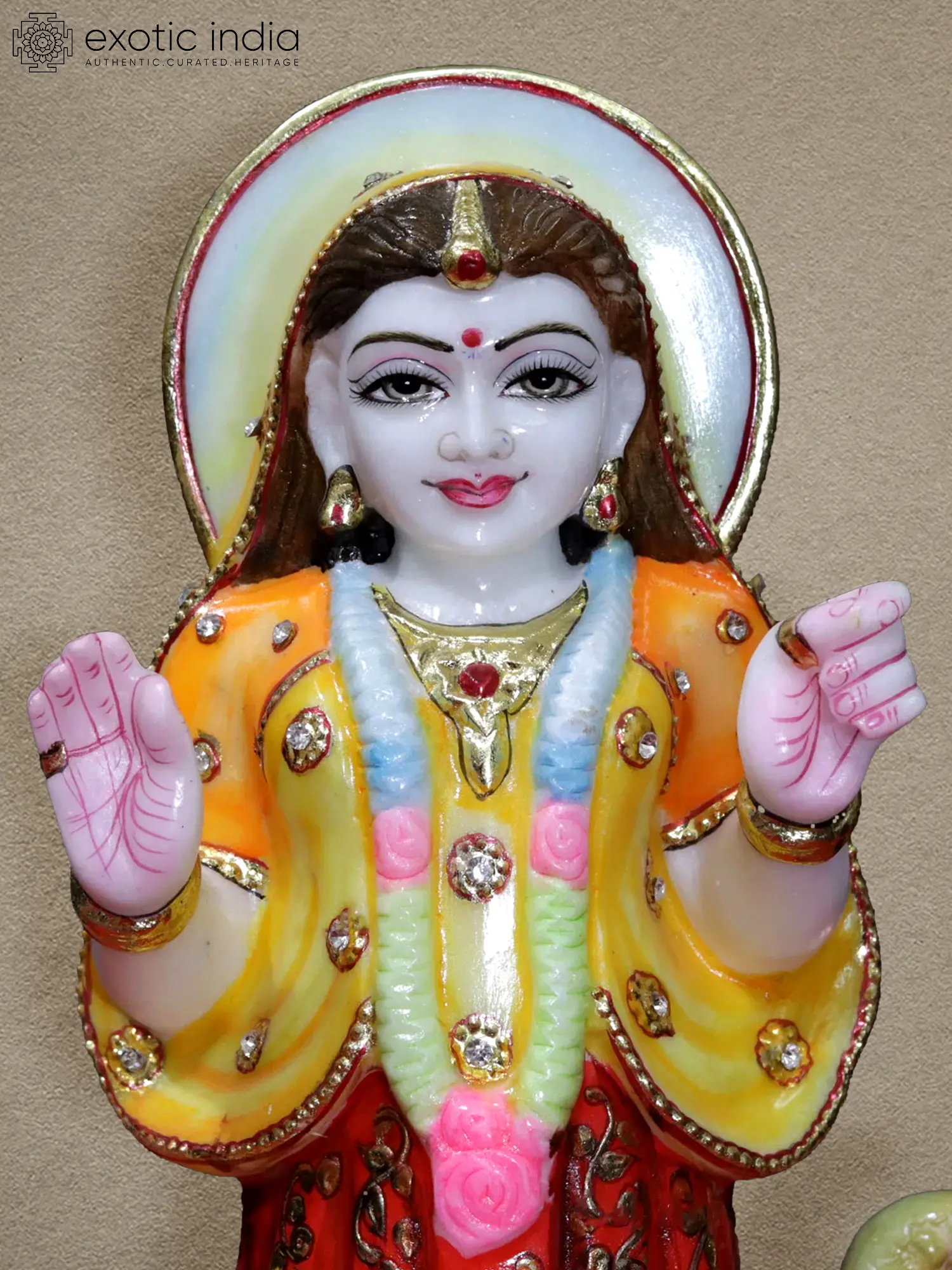 9" Colorful Figurine Of Goddess Khodiyar | White Makrana Marble Statue