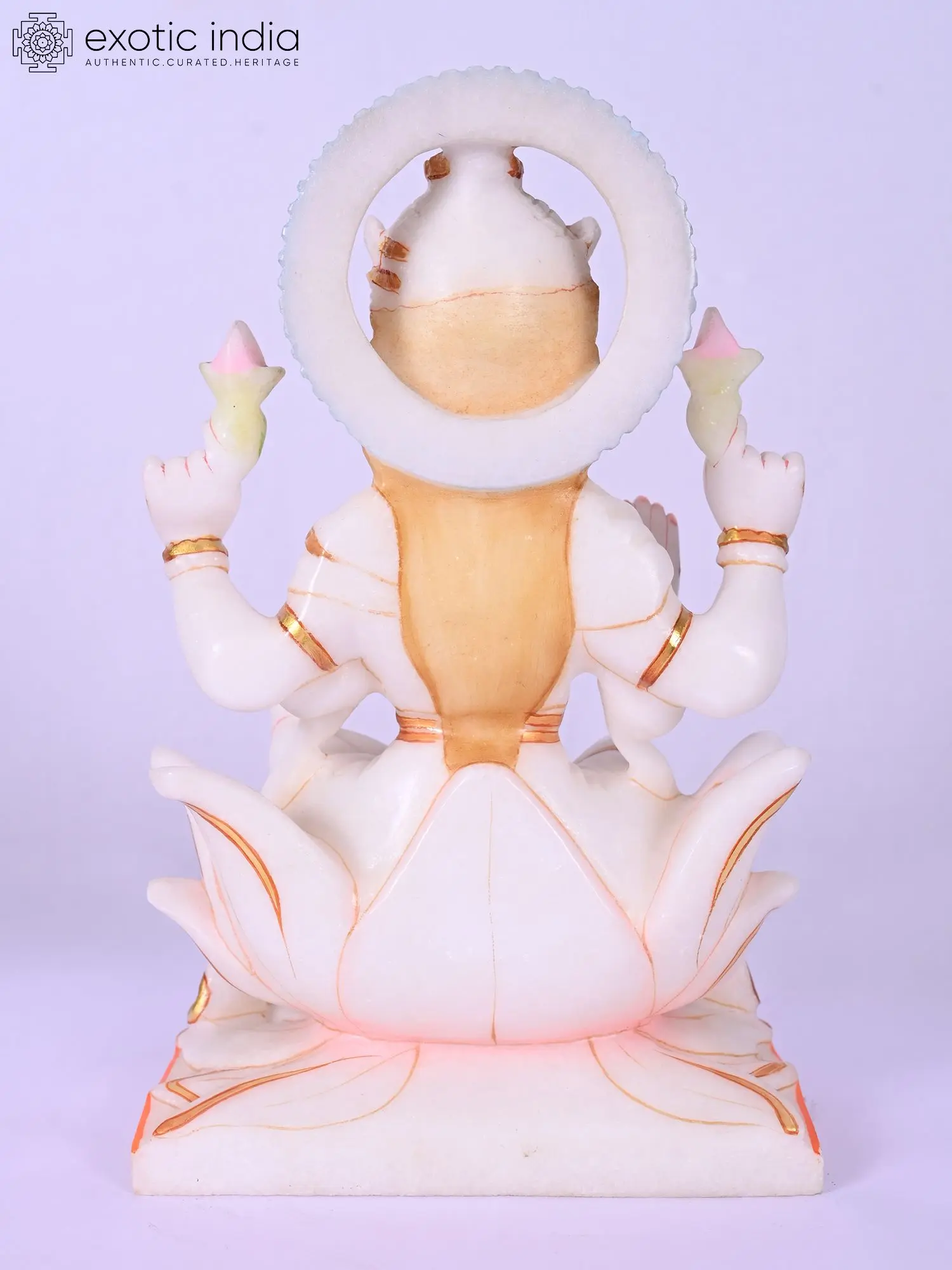 Features a serene countenance, lotus seat, and the sacred mouse mount (vahana).