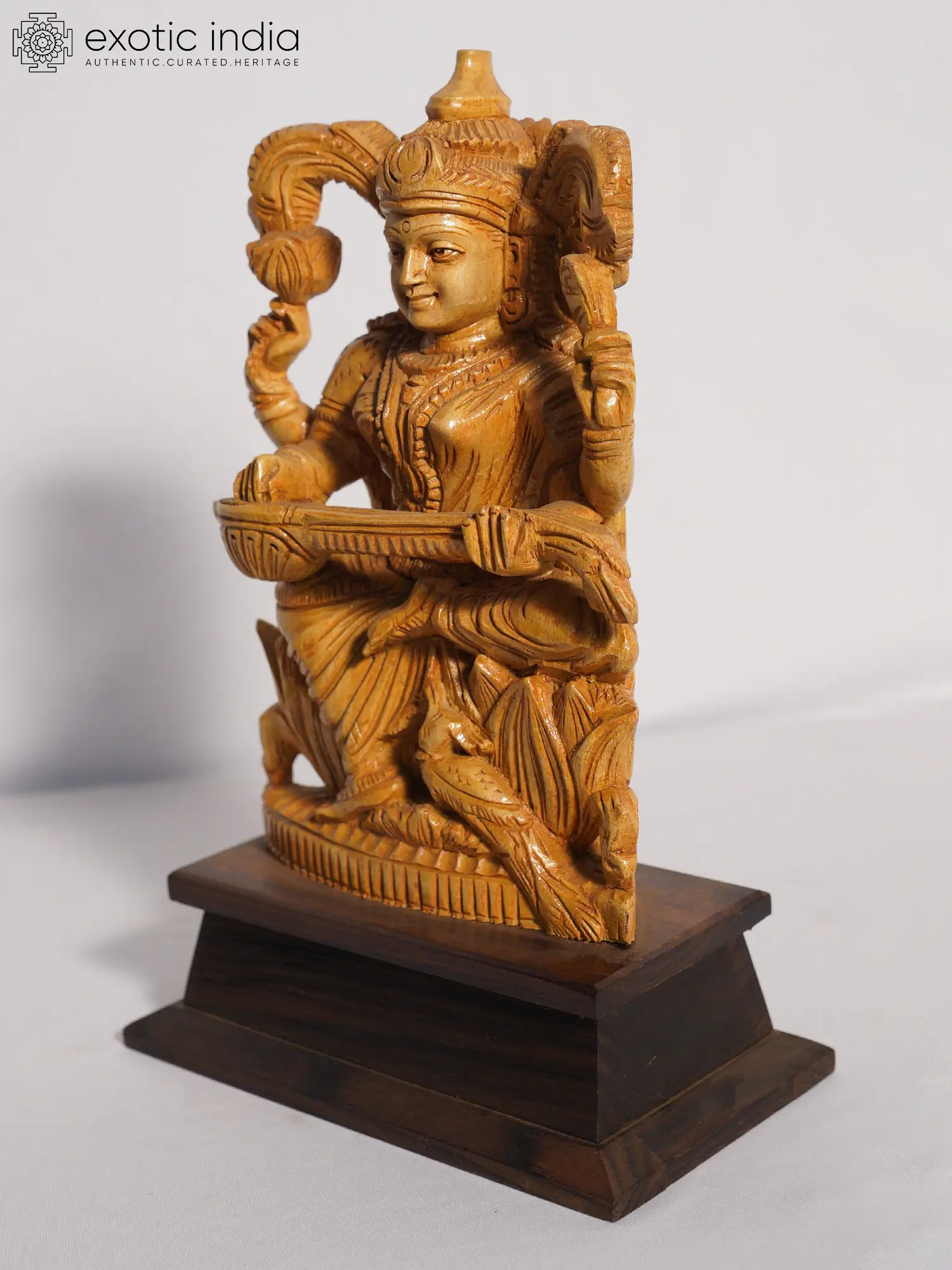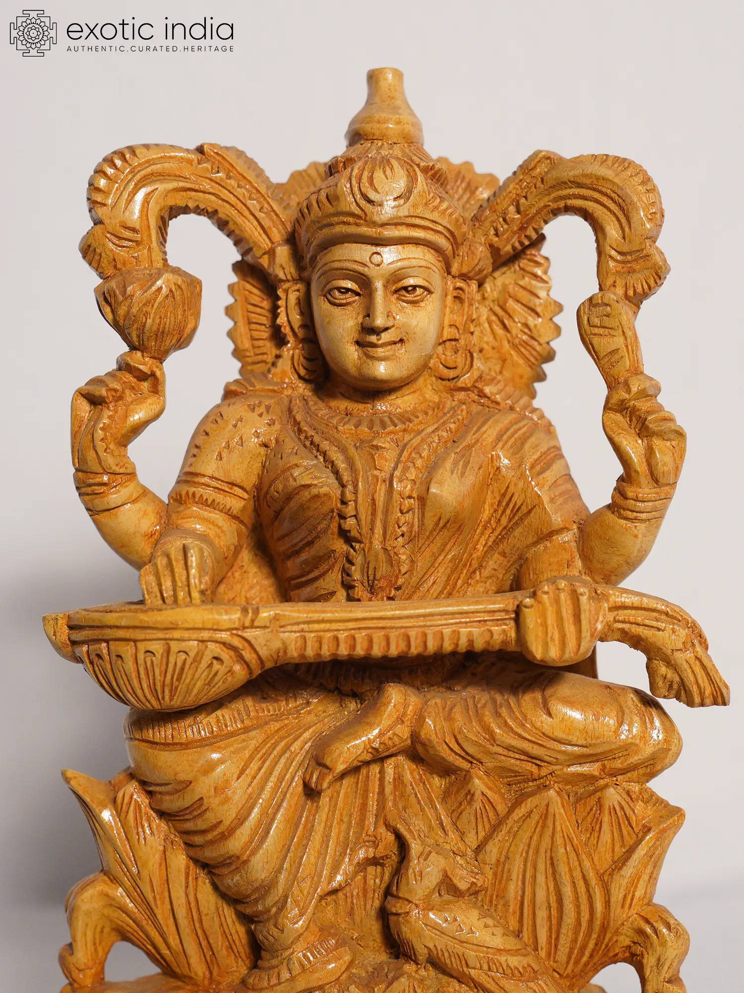 Goddess Saraswati - South Indian Temple Wood Carving Statue