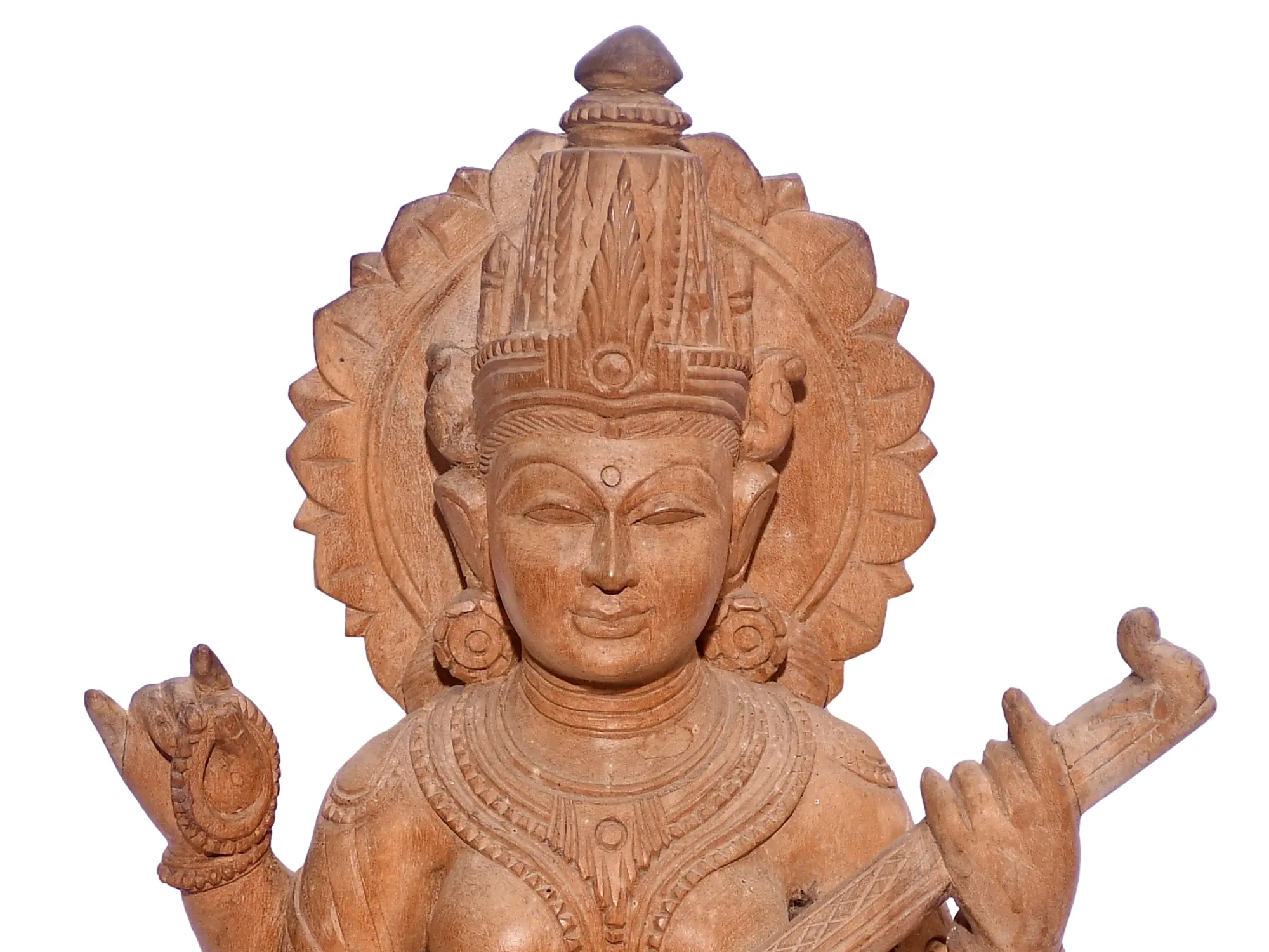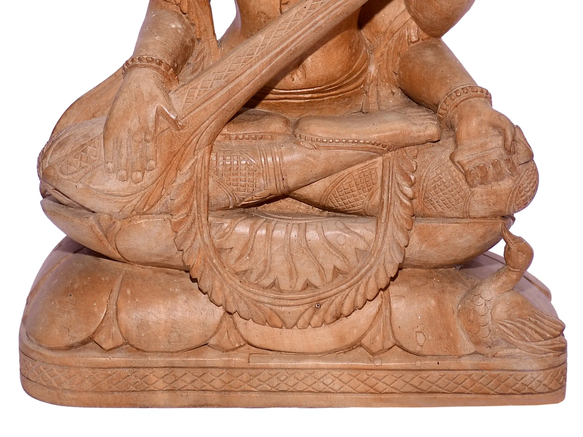12" Hindu Goddess Saraswati Playing Sitar | Orissa Wood