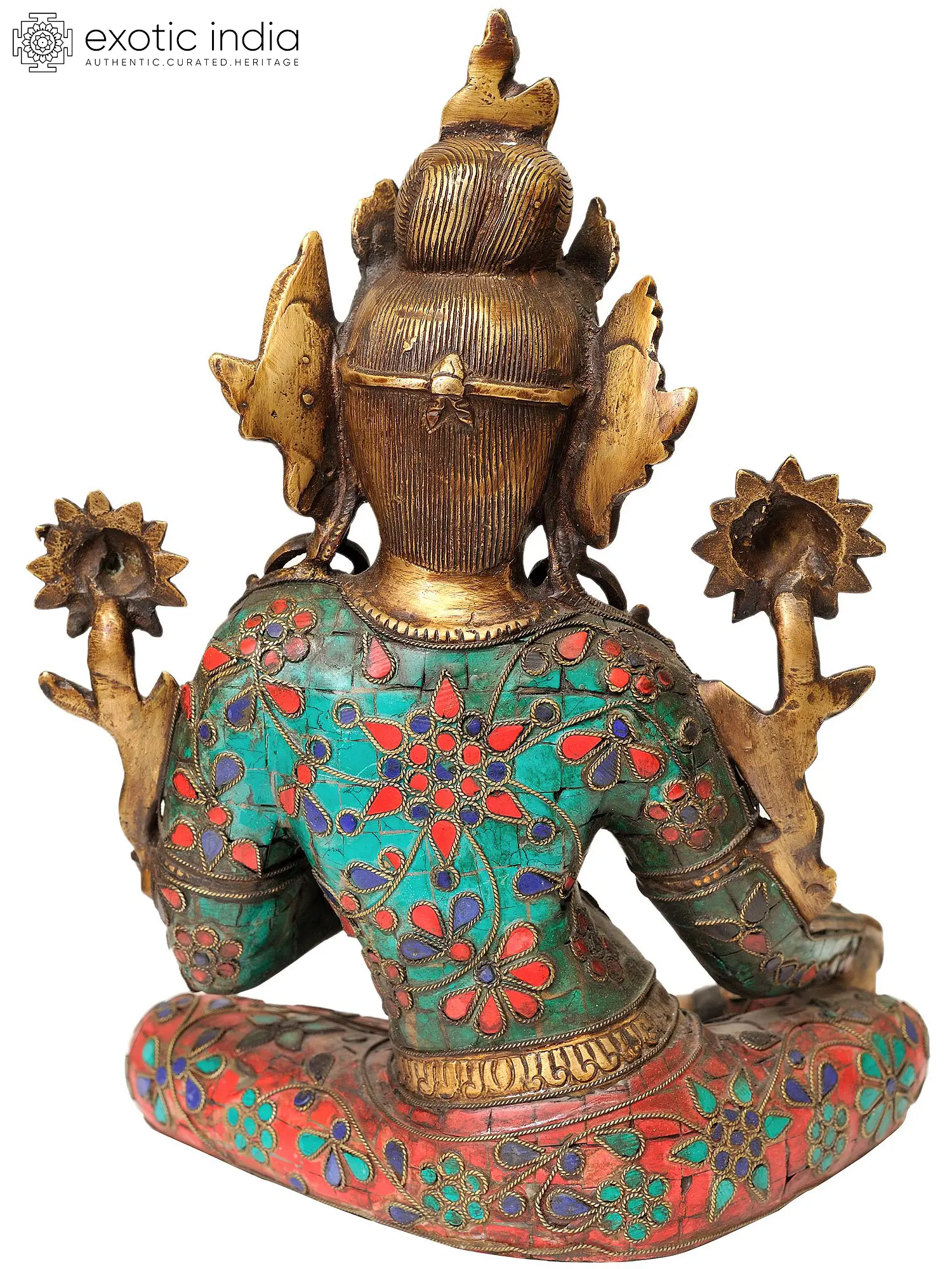 12" Inlay Tibetan Buddhist Goddess Green Tara In Brass | Handmade | Made In India