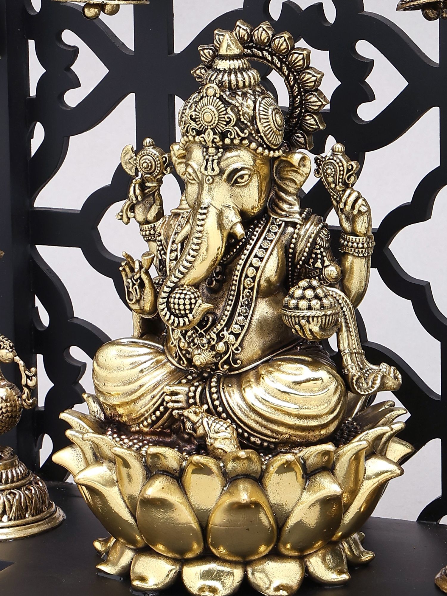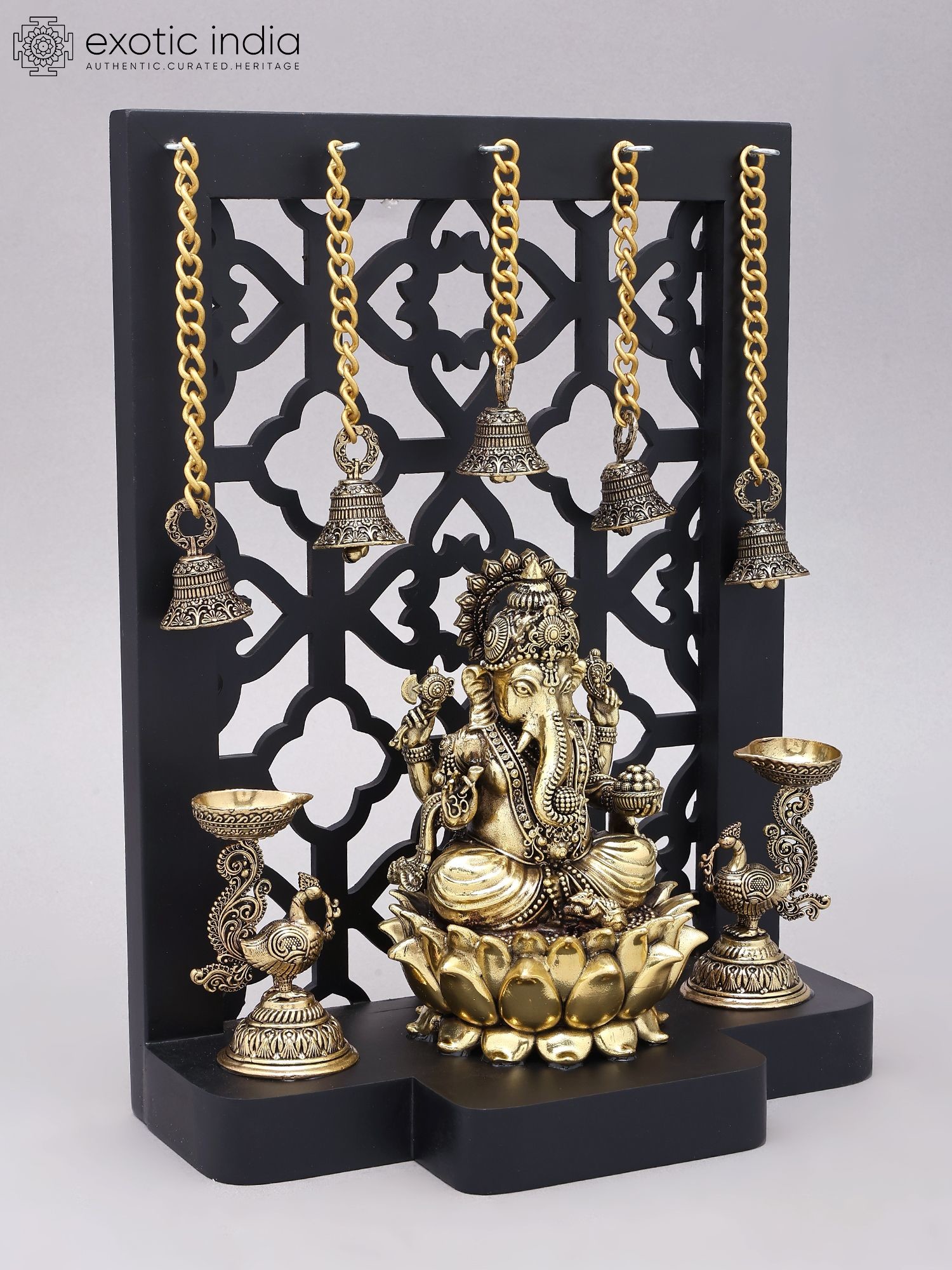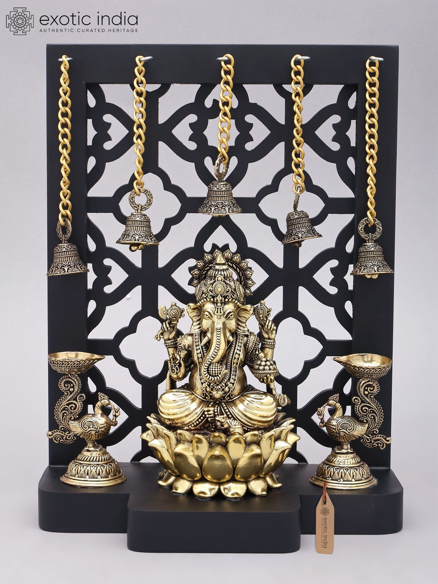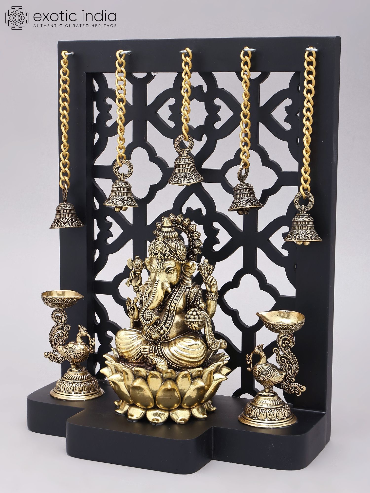 Features a majestic brass idol of Bhagawan Ganapati, the remover of obstacles.