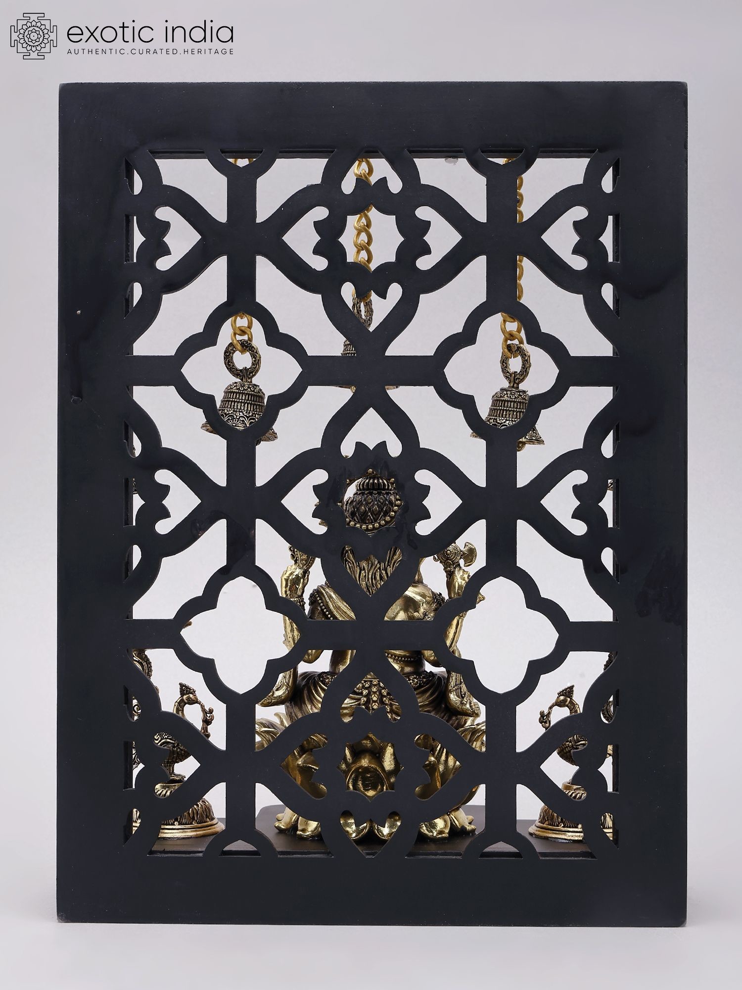 9" Sitting Lakshmi Ganesha Brass Sculpture | Wood Framed Wall Hanging