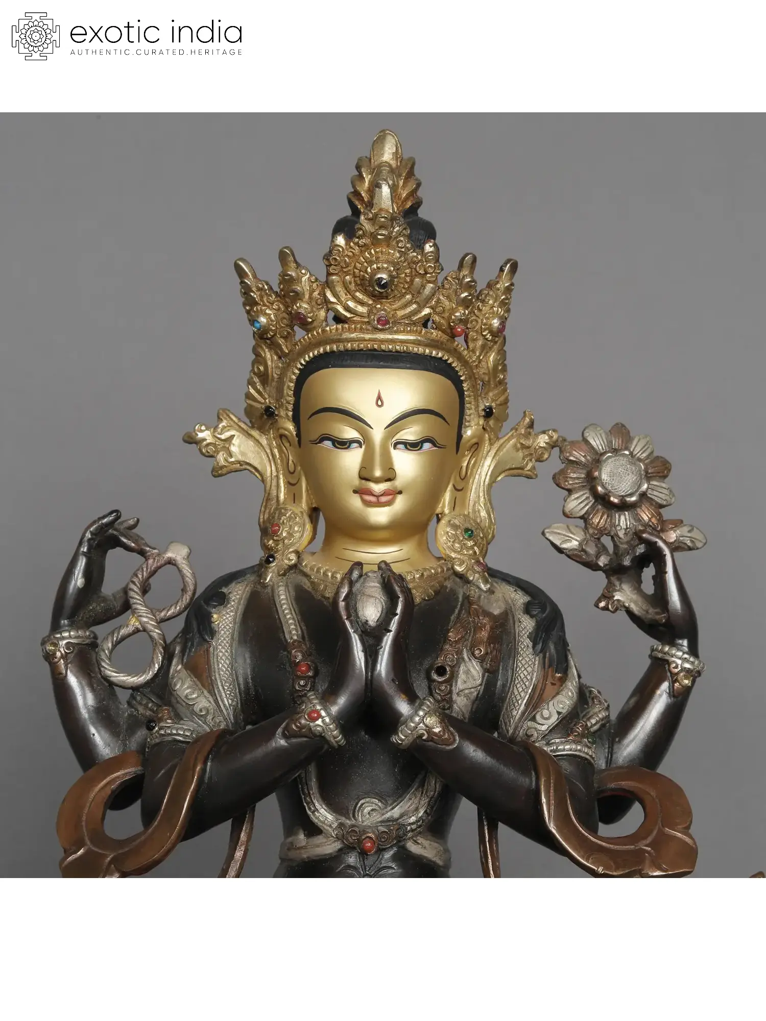 Nepalese statues and sculptures have a high copper content and therefore develop a slightly reddish patina on the surface as they age. However, the most unique feature of Nepalese copper statues is their decorative detailing. The pieces are heavily gilded and sometimes inlaid with semi-precious stones. This embellishment protects them from getting tarnished. The traditional lost-wax method for casting Nepalese copper statues remains the most practiced technique in Nepal for many centuries. This process involves many steps and requires skilled artists.