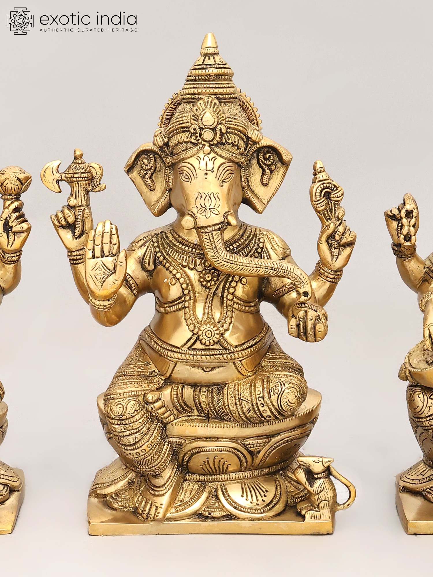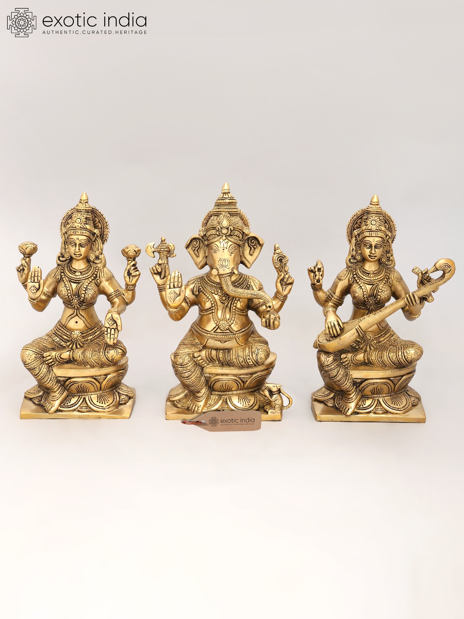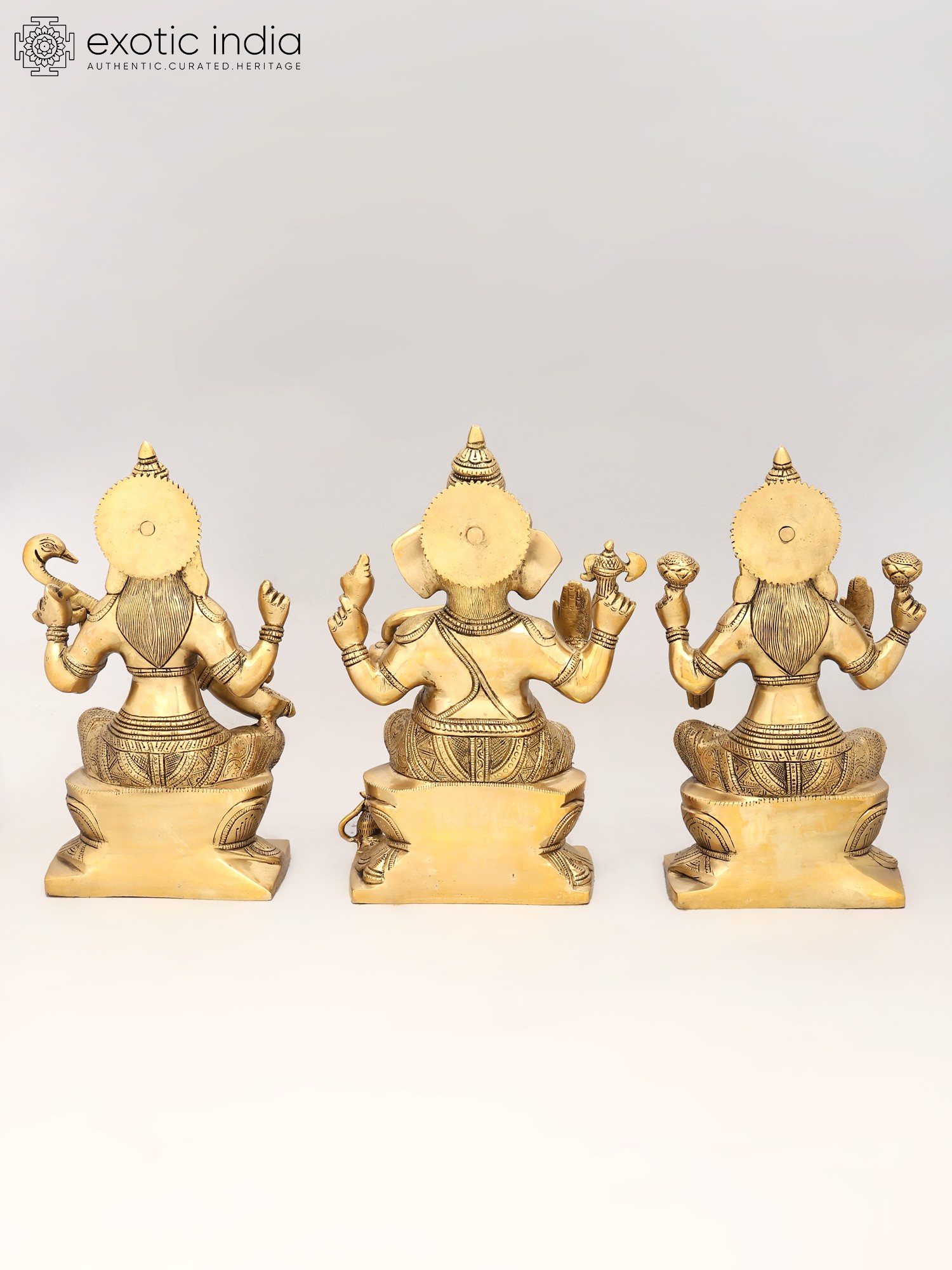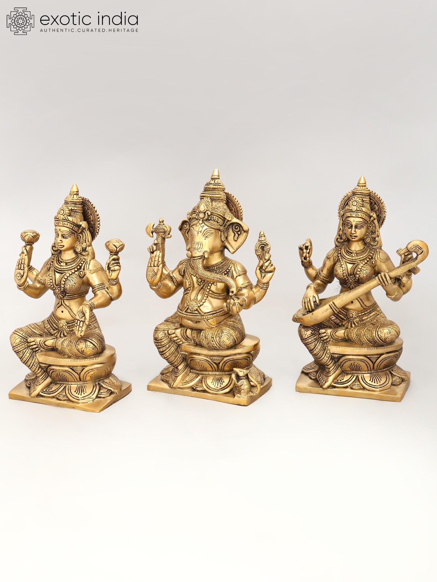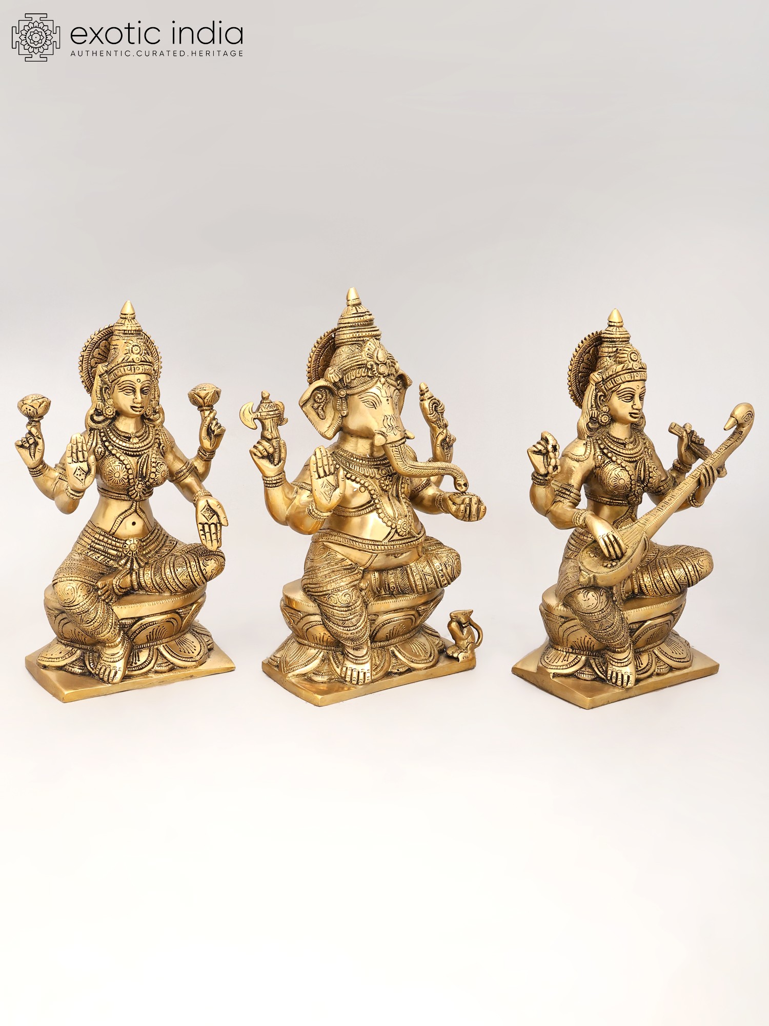12" Lakshmi Ganesha Saraswati In Brass | Handmade | Made In India