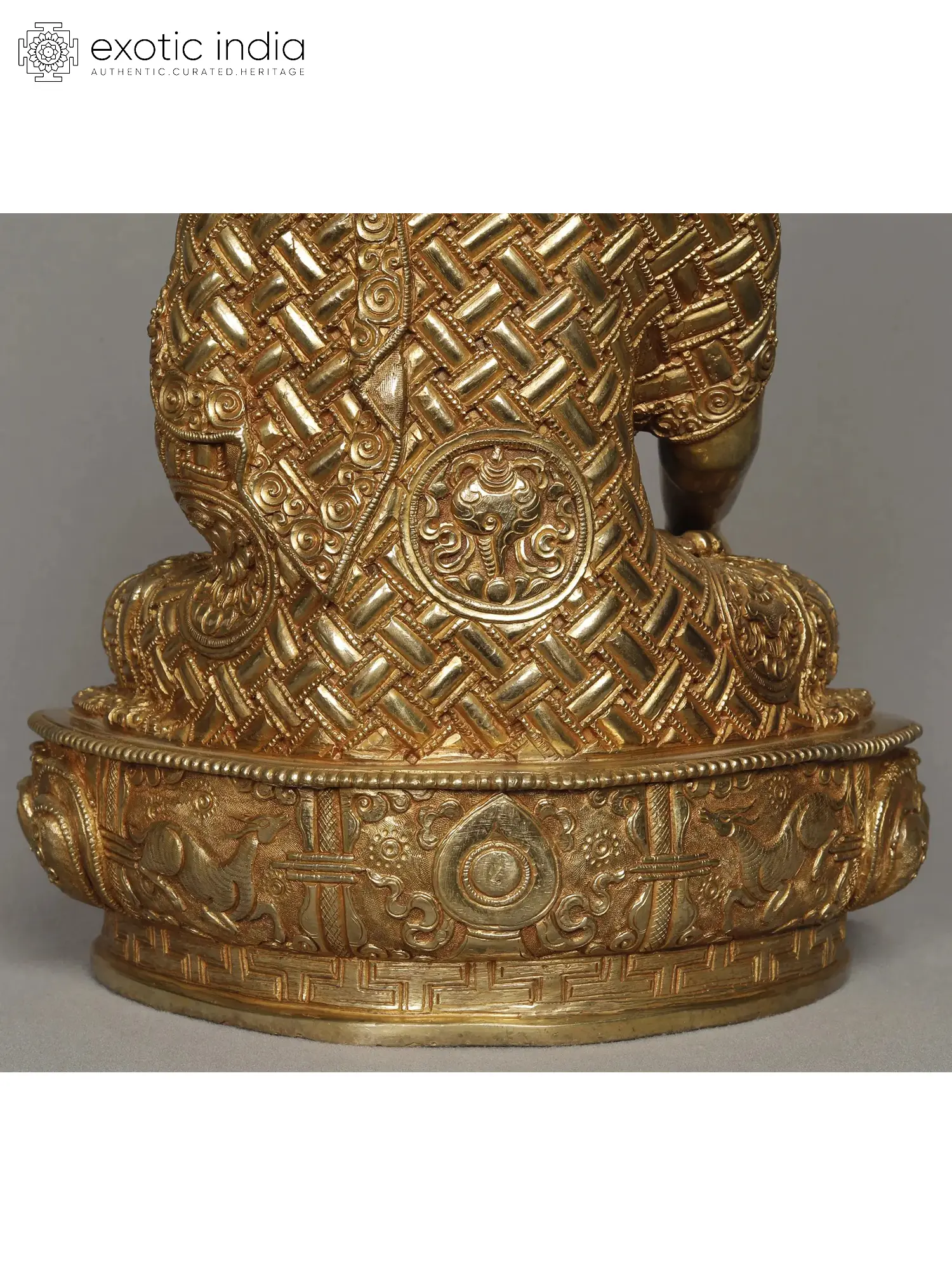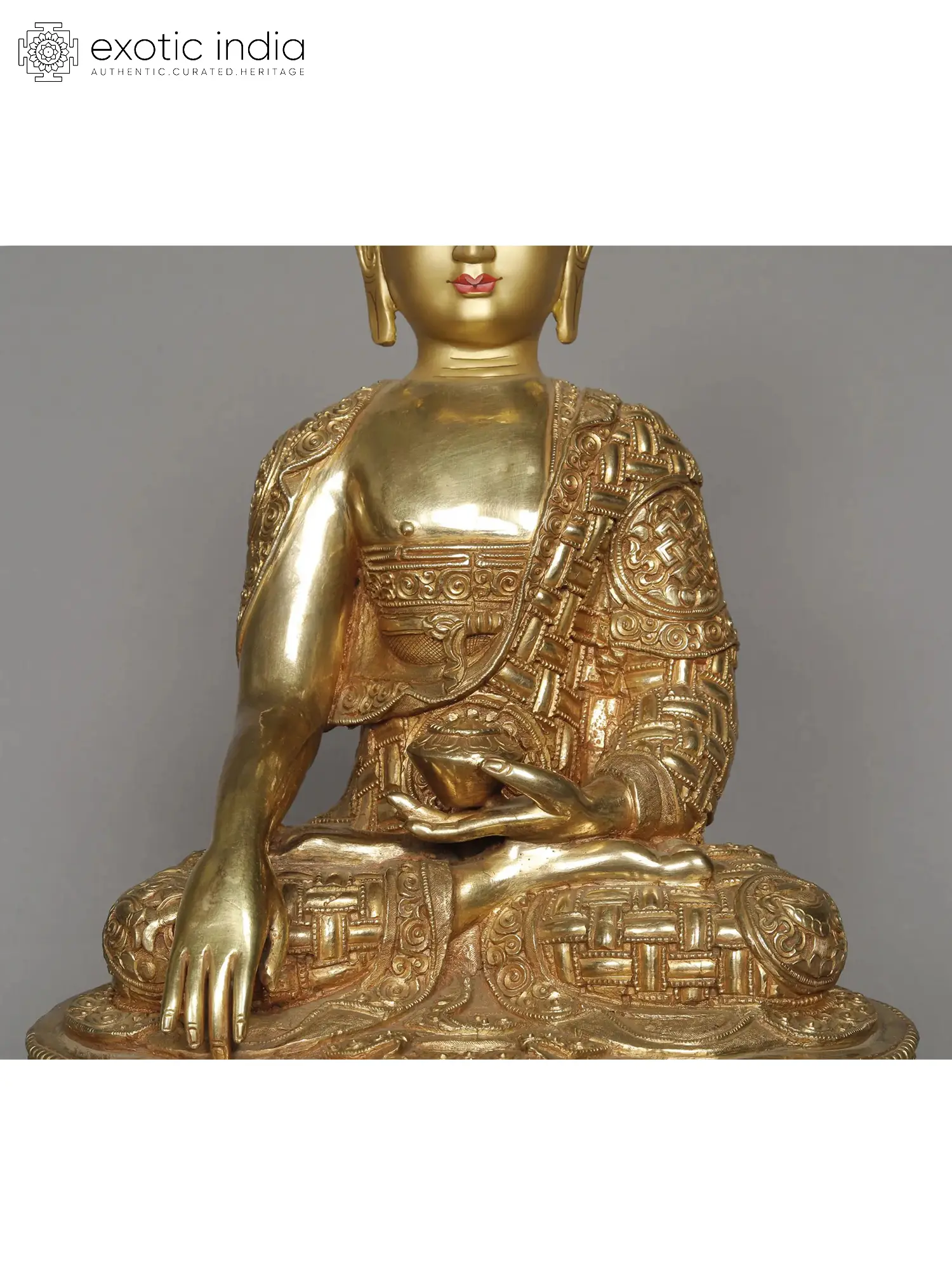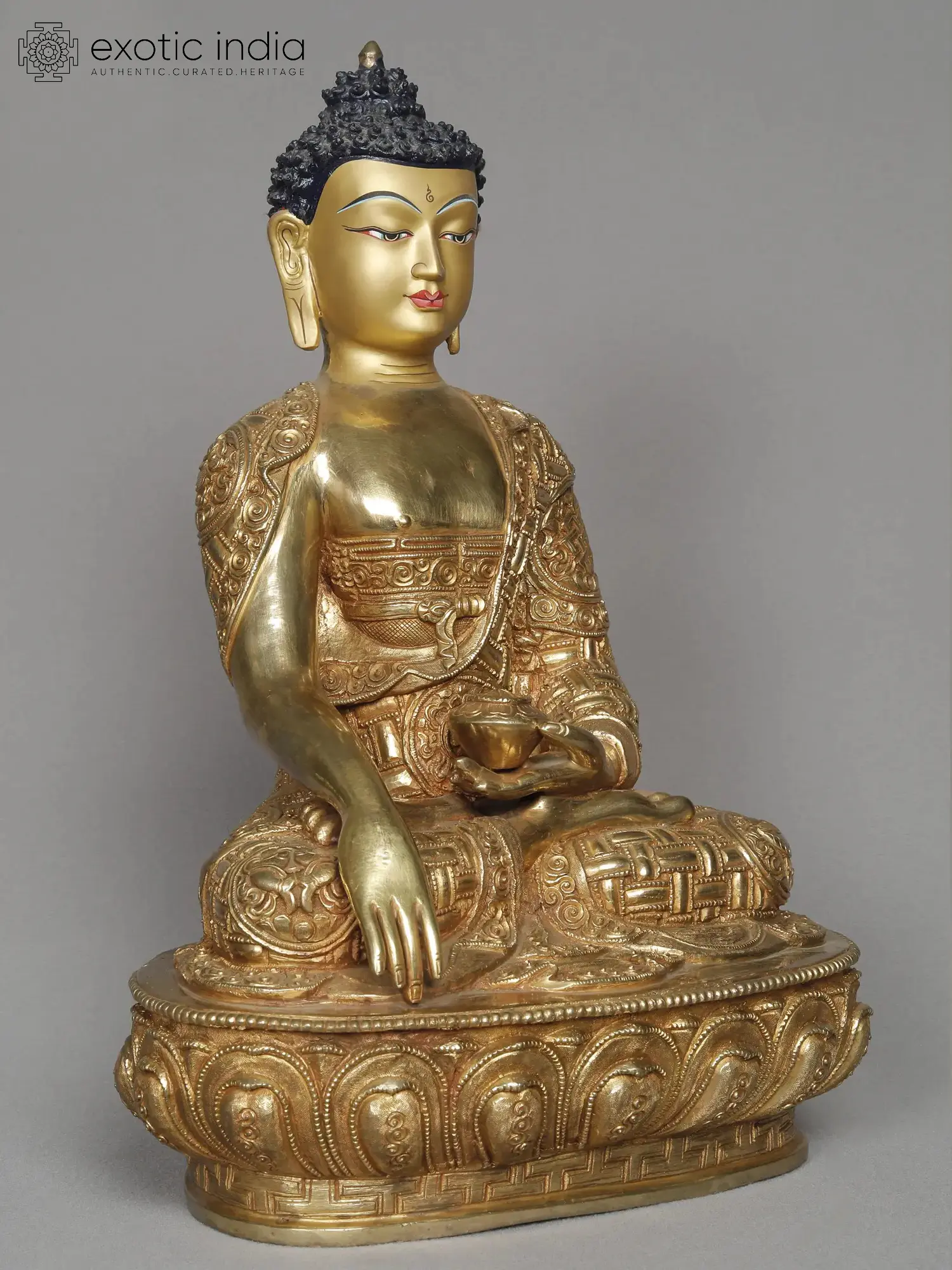 The Bhumisparsha Mudra Buddha statue is a captivating representation of Shakyamuni Buddha. This 12” long statue showcases the Buddha seated in the Padmasana with his right hand gently touching the ground, a gesture known as the Bhumisparsha Mudra. The significance of this mudra lies in its symbolic gesture: the moment of enlightenment when the Buddha called upon the earth to witness his victory over Mara, the embodiment of ignorance and desire. This pivotal moment marks the path to Nirvana, signifying the transformation from delusion to enlightenment. The Buddha's serene facial expression and half-closed eyes evoke deep contemplation and inner tranquillity, resonating with seekers in their quest for spiritual awakening. The Bhumisparsha Mudra Buddha statue stands as a timeless representation of wisdom, compassion, and liberation, inviting devotees to embrace the teachings and embark on their own transformative journeys.