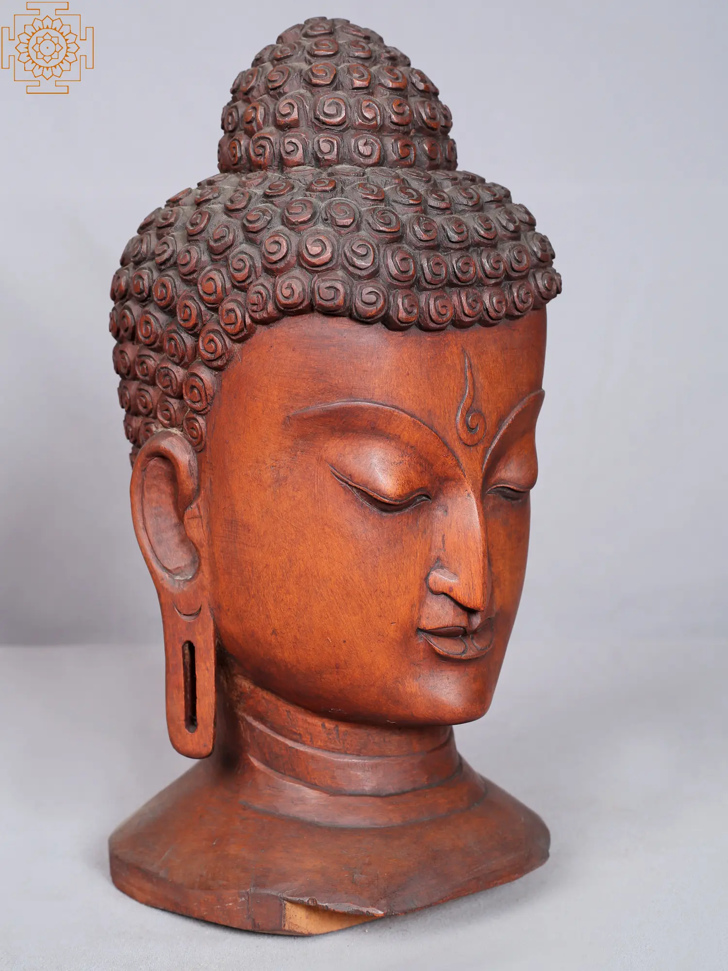 Wood Lord Buddha Head With Beautiful Carving | For Decor