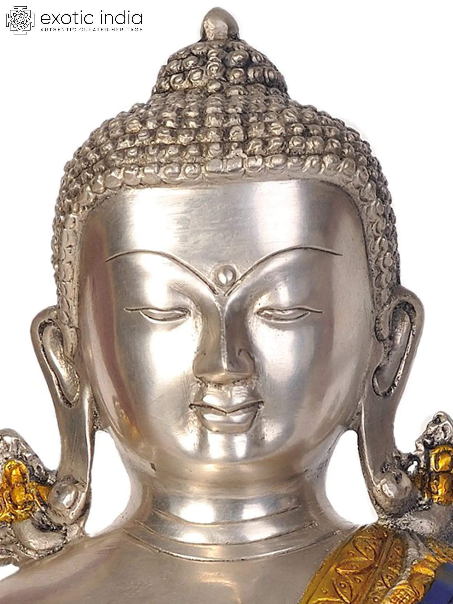 12" Lord Buddha in Bhumisparsha Mudra (Inlay Statue) In Brass | Handmade | Made In India