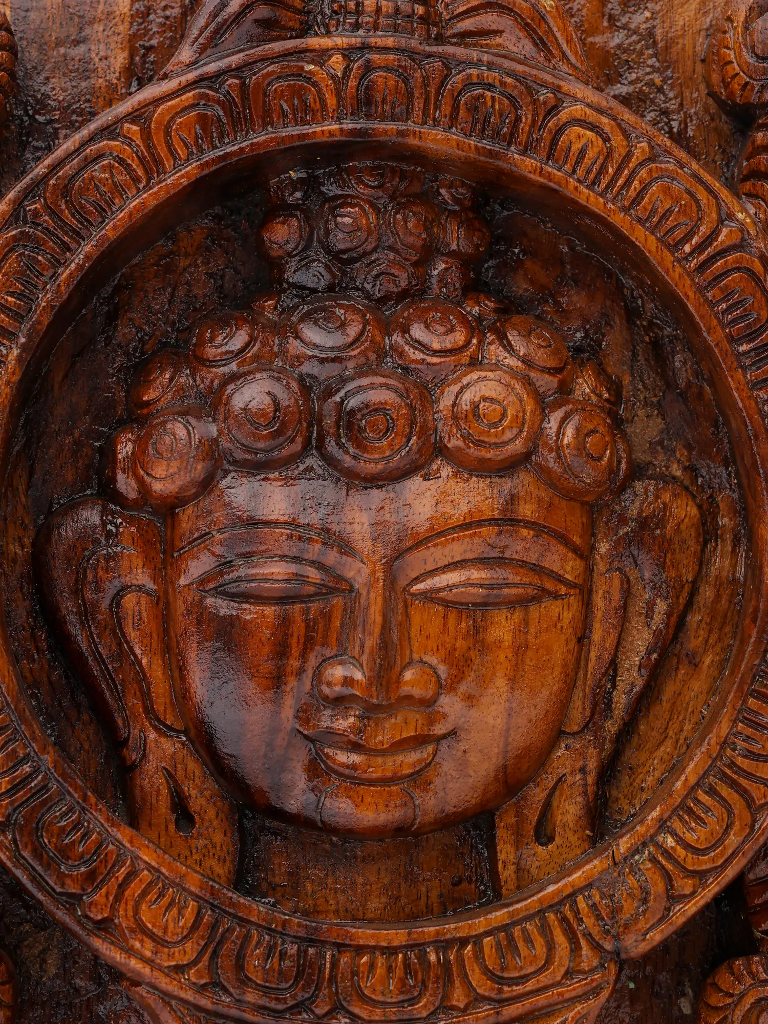 18" Lord Ganesha Kavadi Wall Panel | Wood Carving from South India