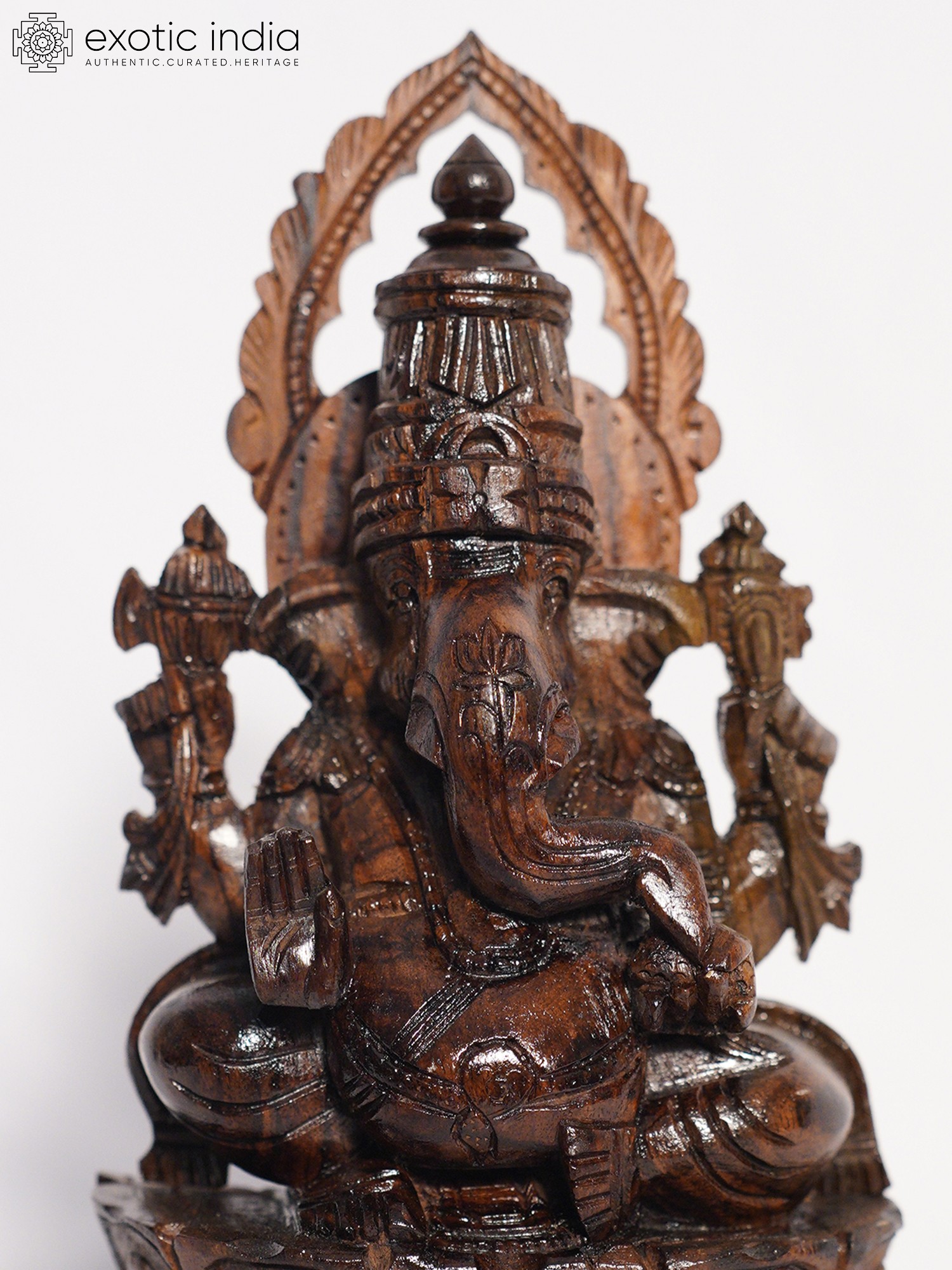 24" Panchamukhi Lord Ganesha Seated on Kirtimukha Throne | Wood Carving