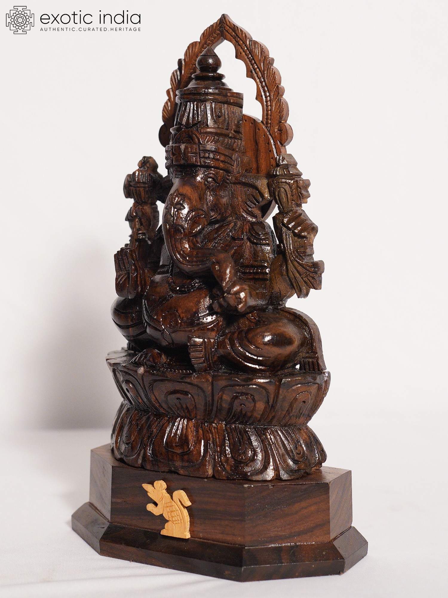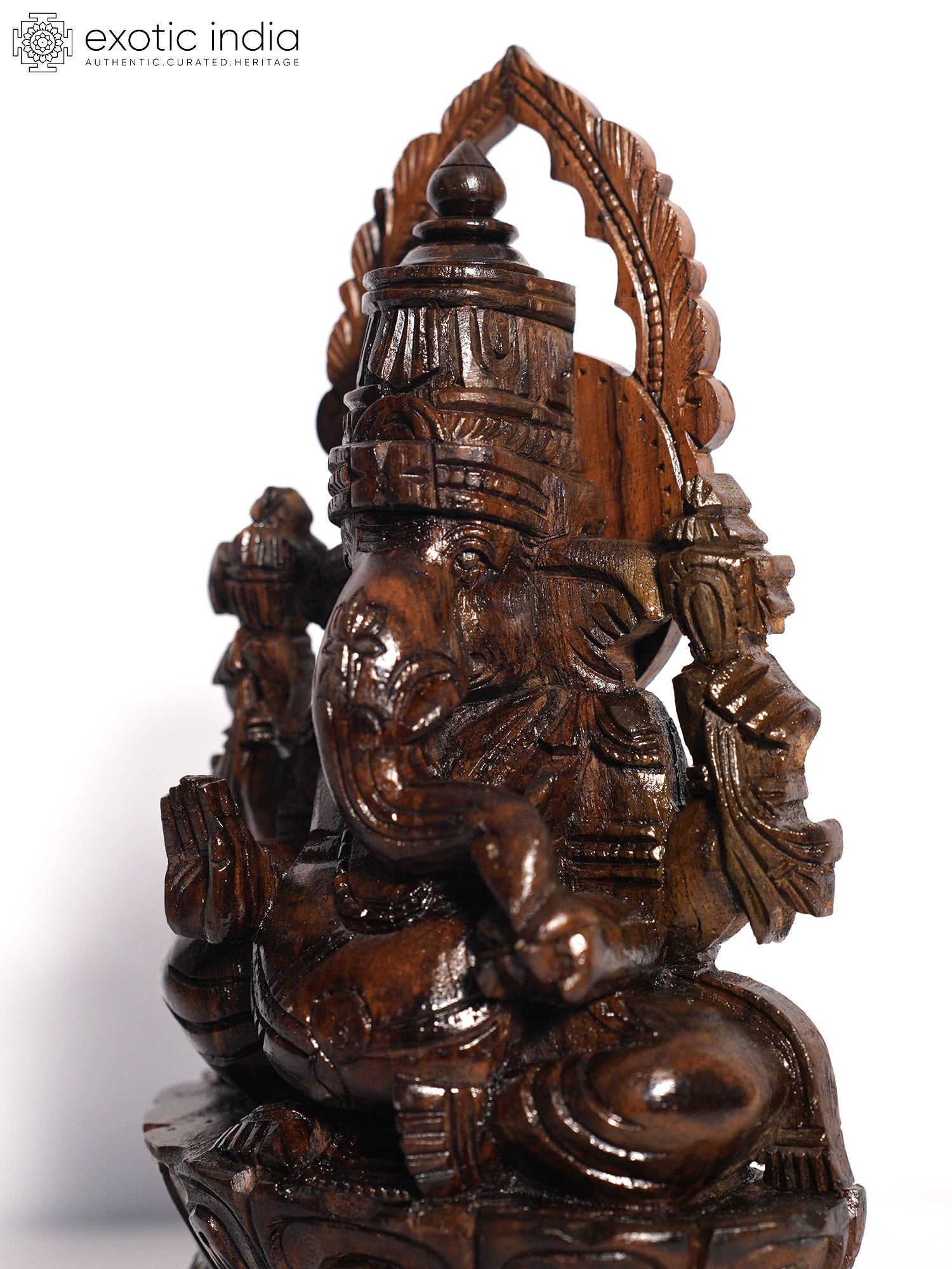 Wooden Sculpture of Lord Ganesha Plays the Shehnai