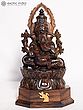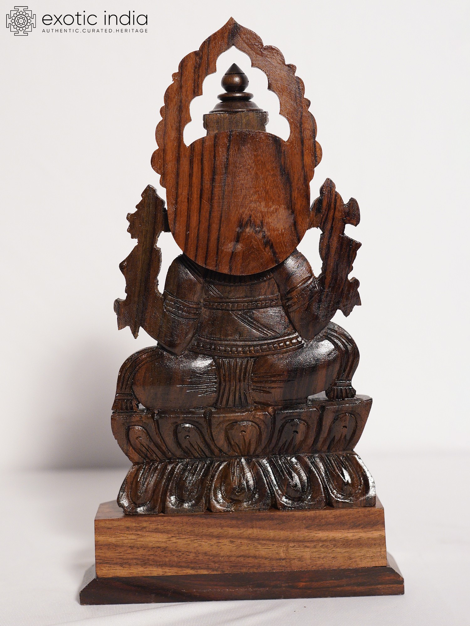 24" Chaturbhuja Lord Ganesha Seated on Lotus | Wood Carving