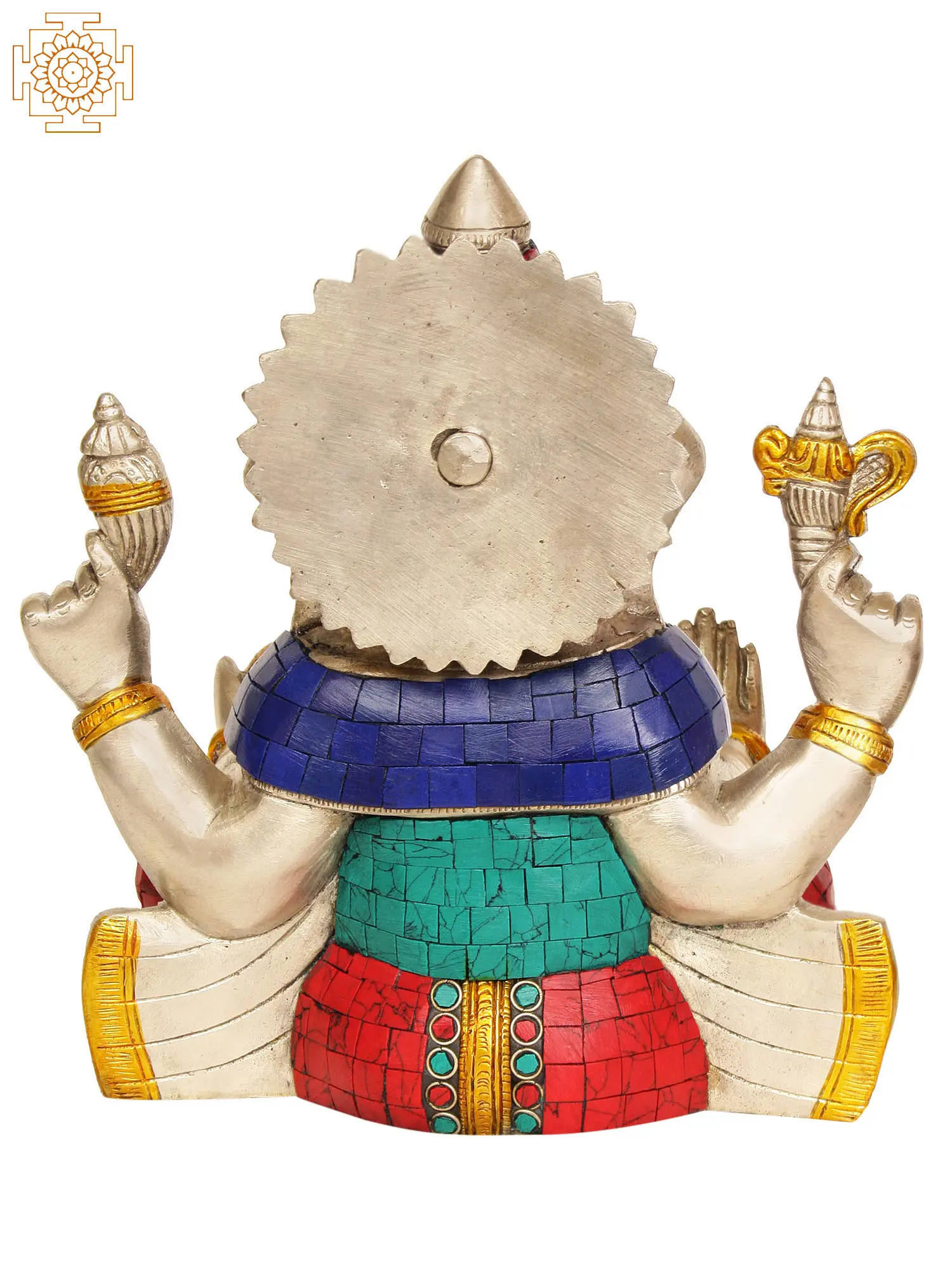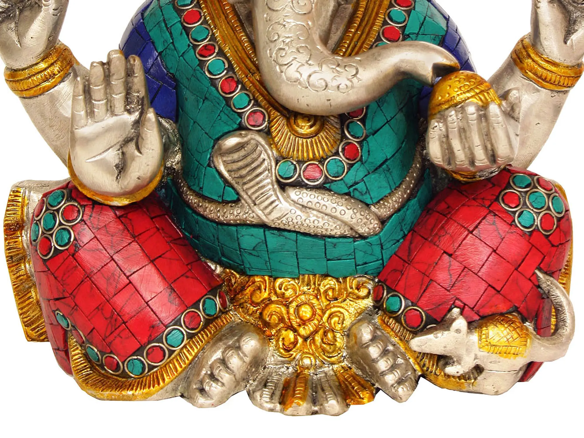 This brass sculpture is a testament to the skill and dedication of Indian artisans. Each piece is carefully handmade, resulting in a unique and exquisite work of art. The gleaming brass is enhanced by colorful inlays, carefully placed to accentuate the beauty of the sculpture. The subtle interplay of light and shadow adds depth and dimension, bringing the divine form of Ganesha to life. Notice the delicate details, from the intricate patterns on his garments to the lifelike representation of his mount, the humble mouse. The presence of the mouse reinforces the lesson that even the smallest creature can play a significant role in the grand scheme of things.