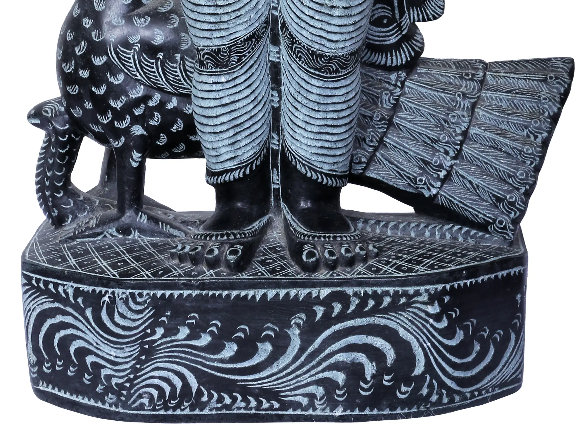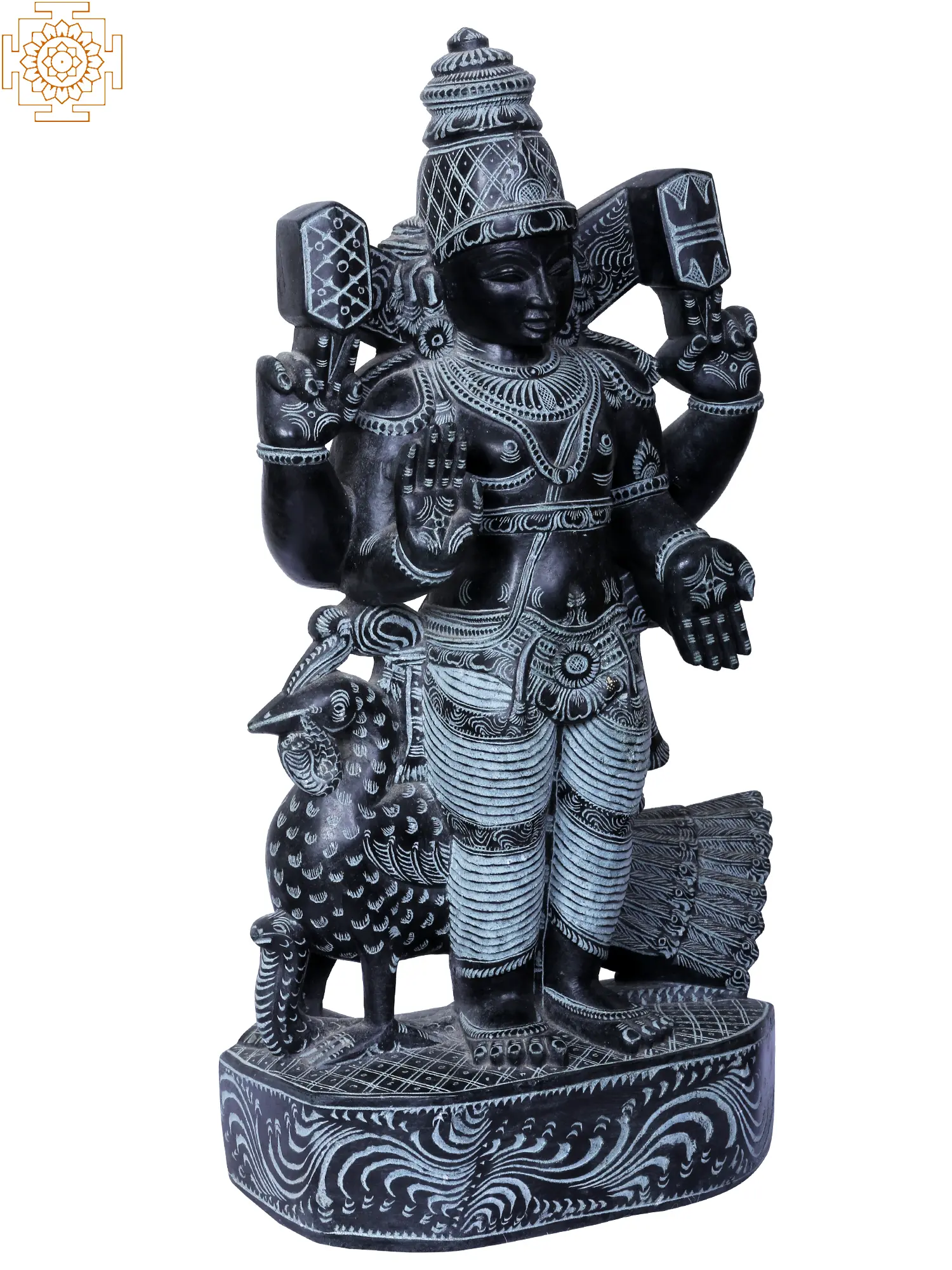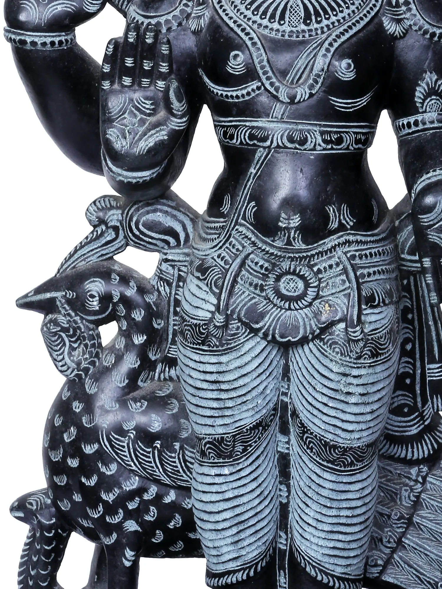 24" Lord Murugan (Karttikeya) Black Granite Stone Sculpture