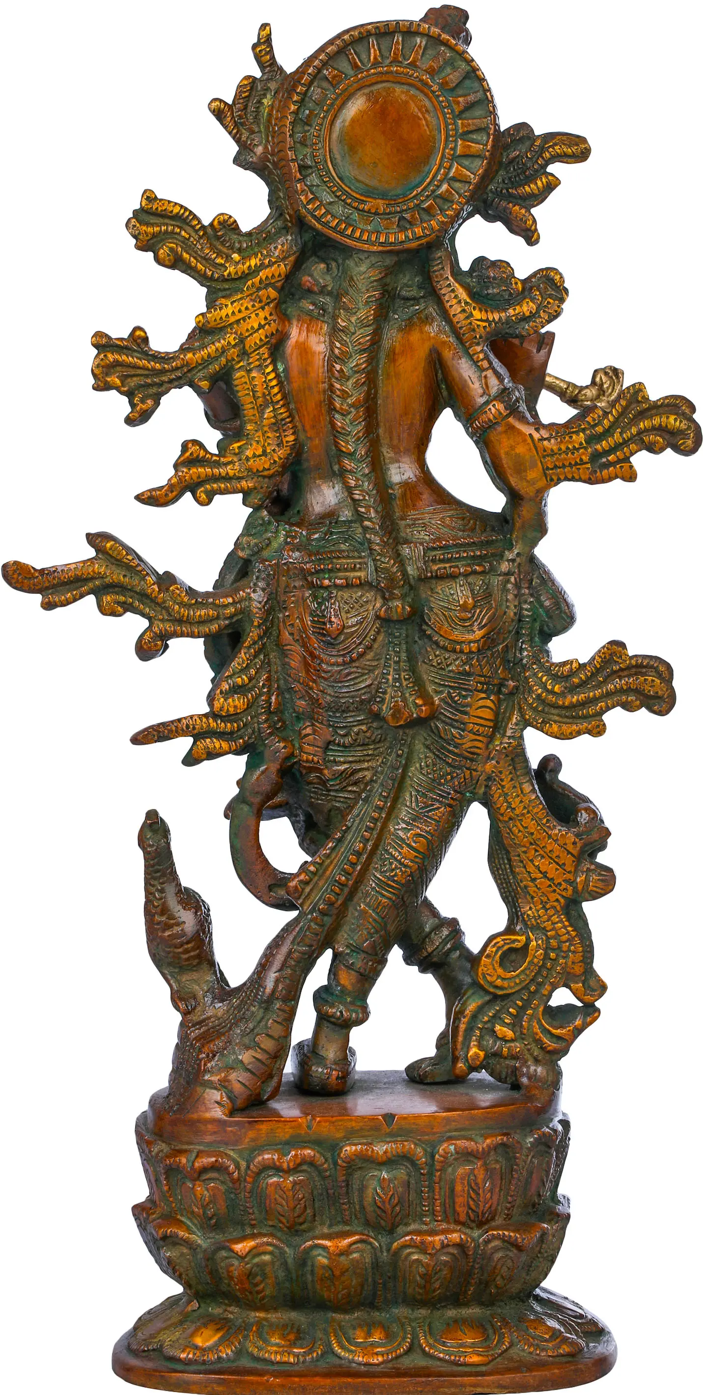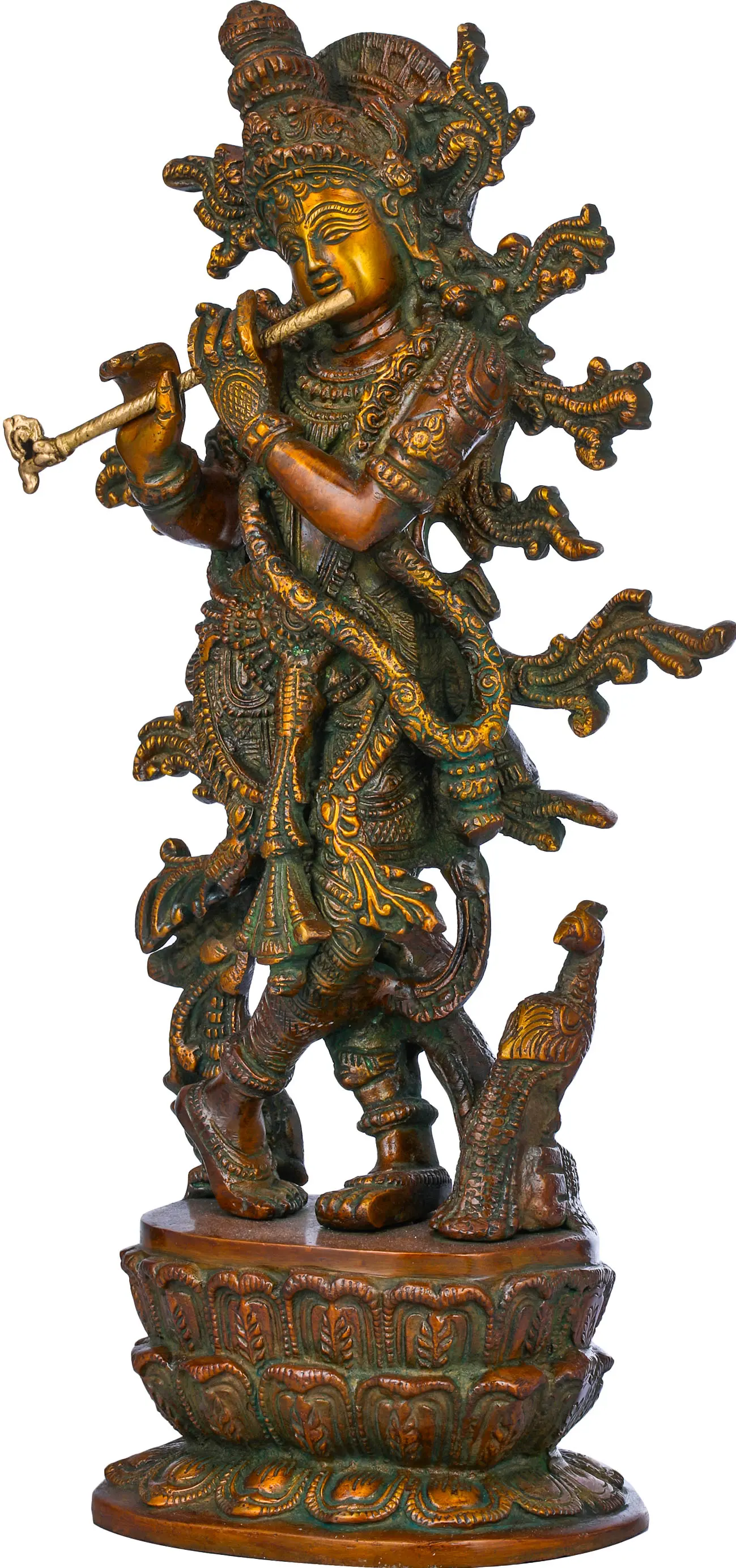 This sculpture is not merely an artistic creation but a spiritual experience, reminding us of the teachings and philosophy associated with Lord Krishna. This brass sculpture is more than just a piece of art; it's a window to a spiritual realm, a reflection of Indian philosophy, and an embodiment of the divine. Place it in your home to experience the eternal charm and grace of Lord Krishna, and let his presence bless your living space.