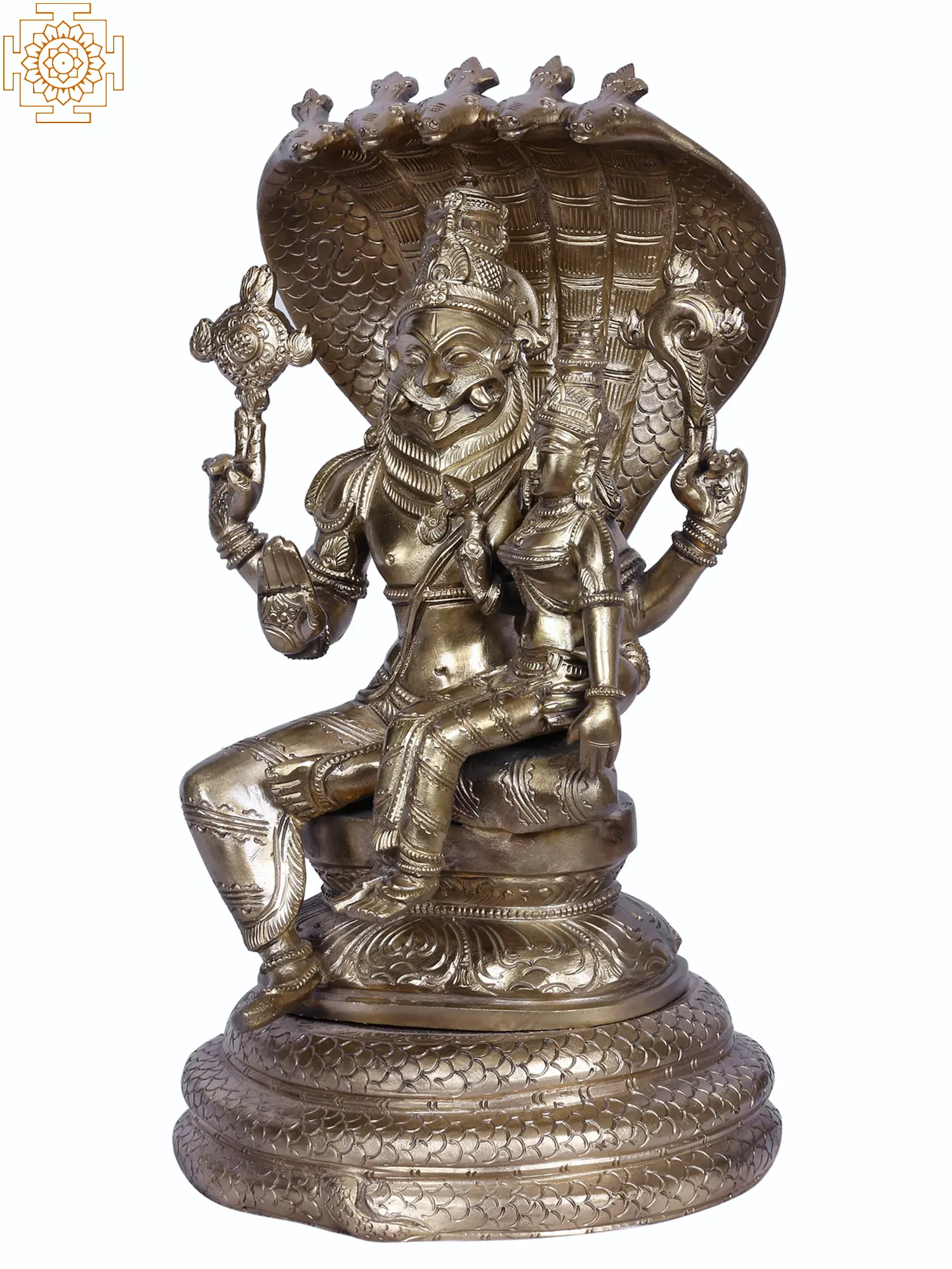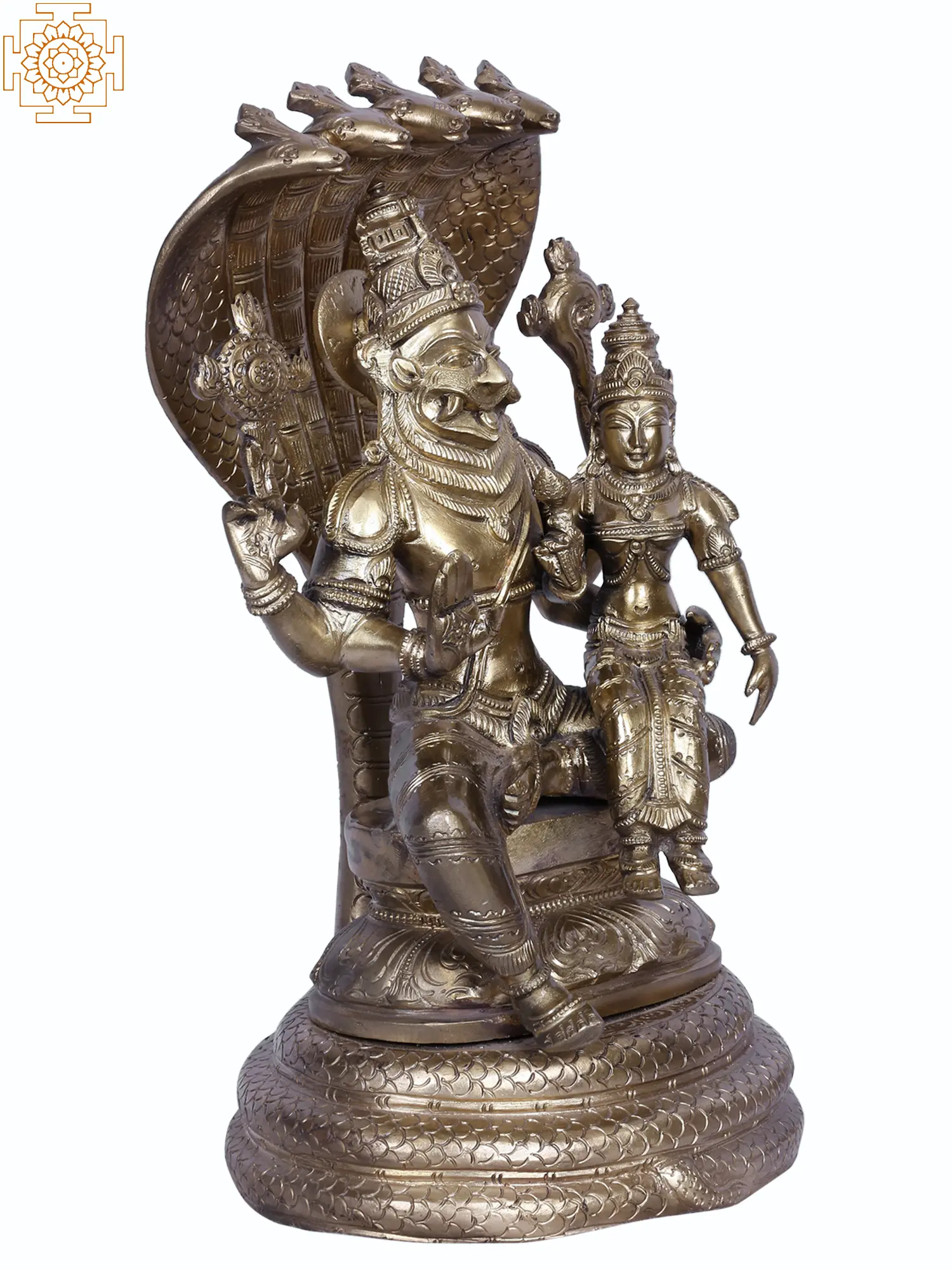 The passionate Narasimha with the delicate Lakshmi, His wife, seated on His lap. The divine creature that is neither man (‘nara’) nor beast (‘simha’), slayer of the supremely powerful King Hiranyakashipu and hands-down the most wrathful avatara (incarnation) of Lord Vishnu. Only the tender serenity of Devi Lakshmi may calm the ardour of such a deity as Narasimha.
