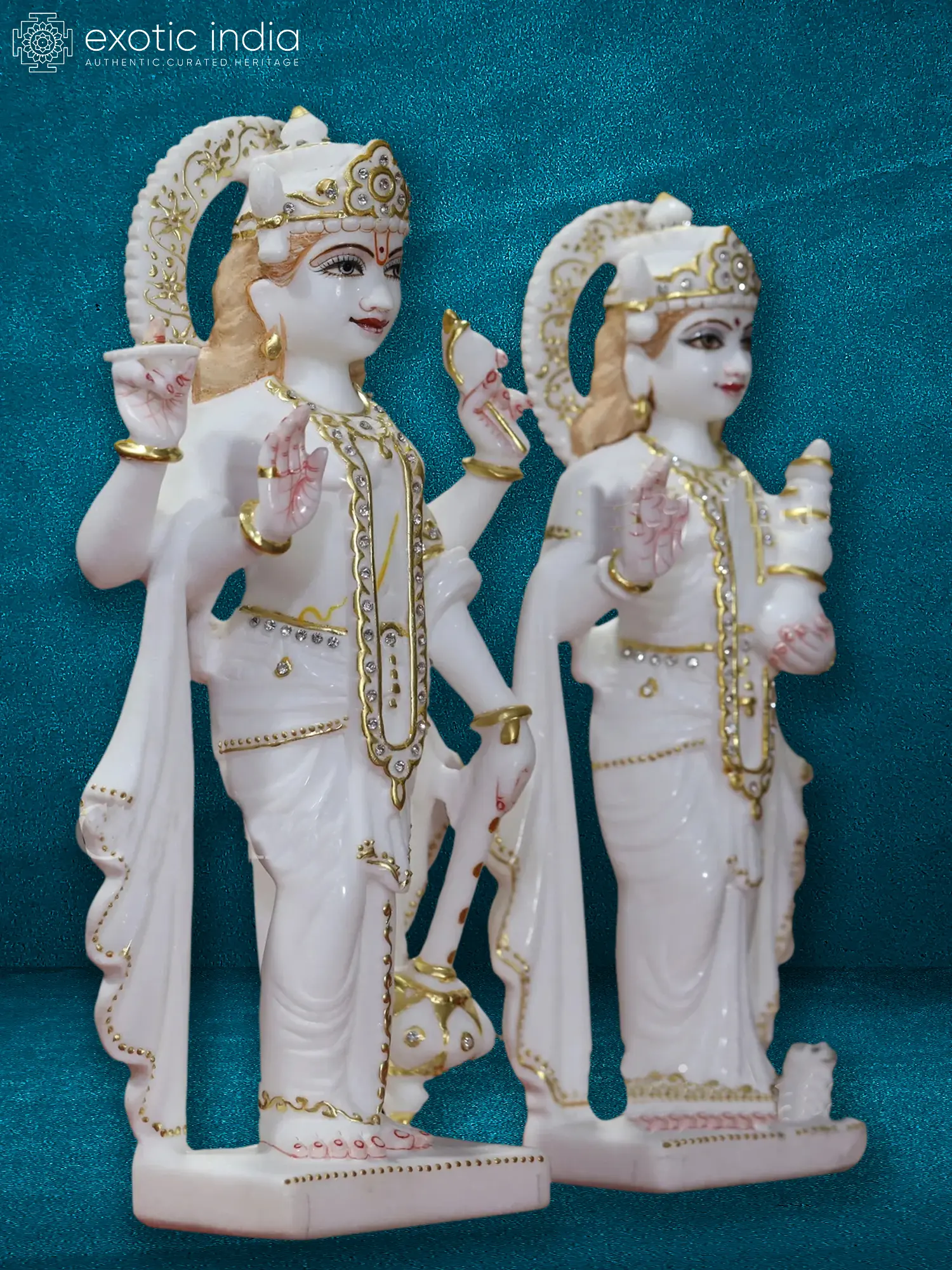 10" Goddess Lakshmi And Lord Narayan Statue | White Makrana Marble Idol