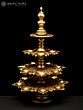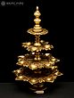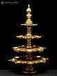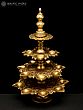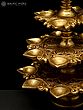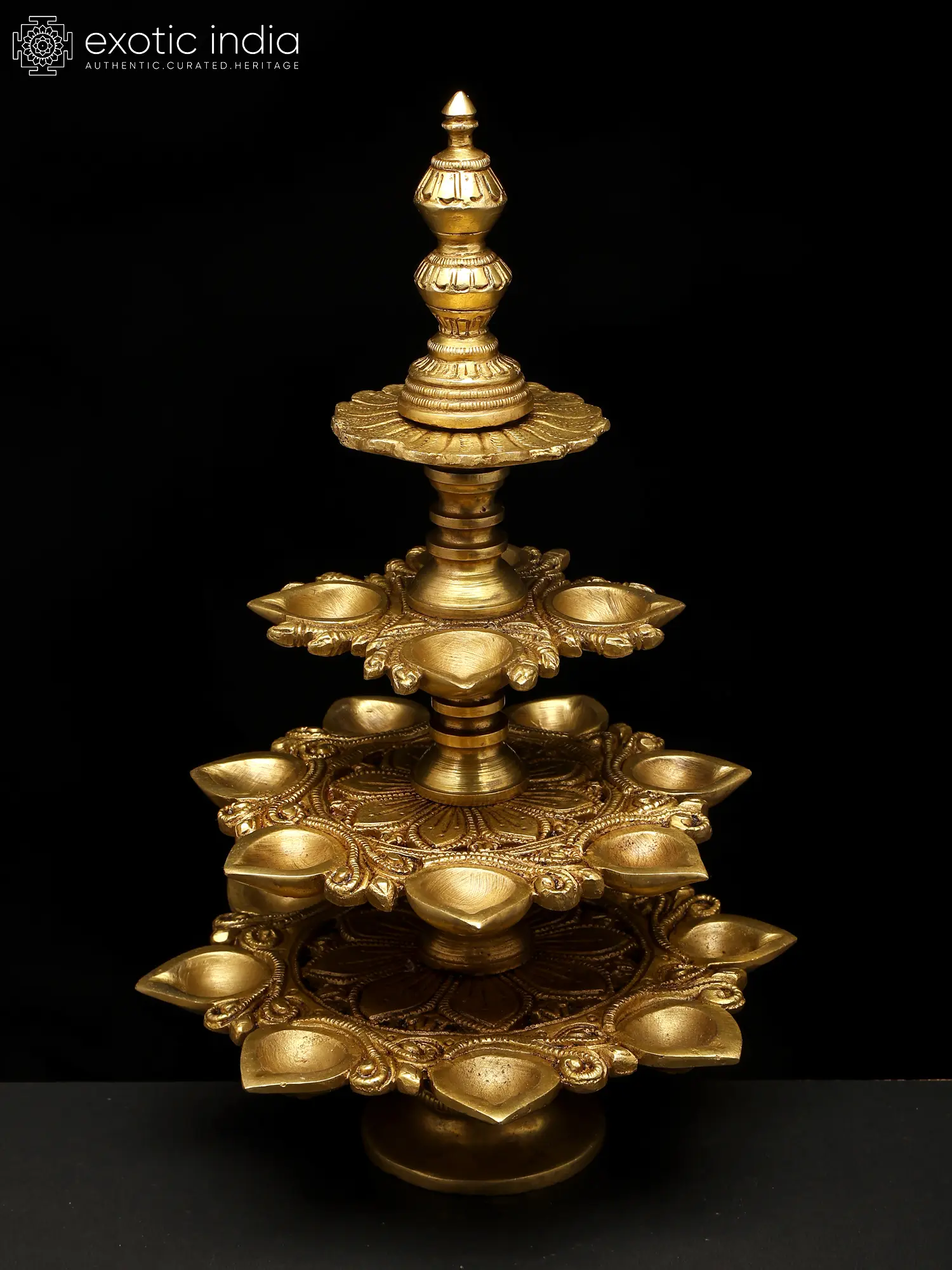 Illuminate your sacred space with this exquisite multi-wick ritual lamp, a testament to the enduring artistry and spiritual heritage of India. Crafted from lustrous brass, this lamp stands as a majestic beacon, designed to hold multiple flames that dance and flicker, casting a warm, divine glow. Its tiered structure, adorned with intricate detailing, evokes the grandeur of temple architecture and the symbolism of ascending towards higher consciousness. The timeless beauty of brass, known for its auspiciousness and purity in Vedic traditions, further enhances the sanctity of this remarkable piece.