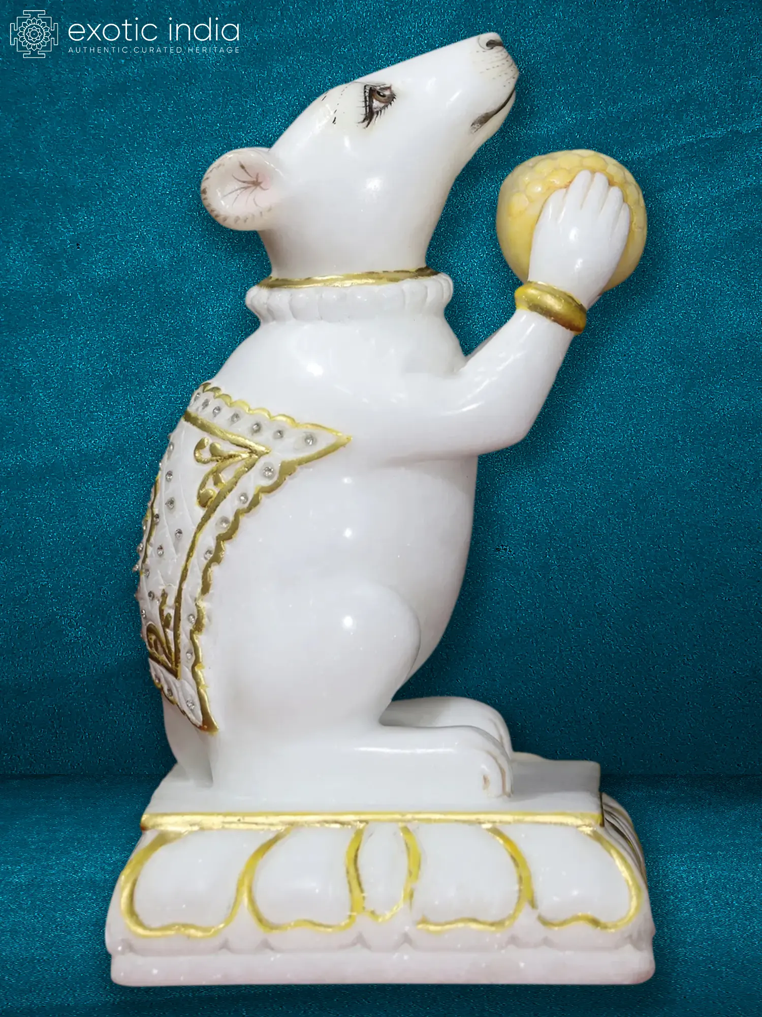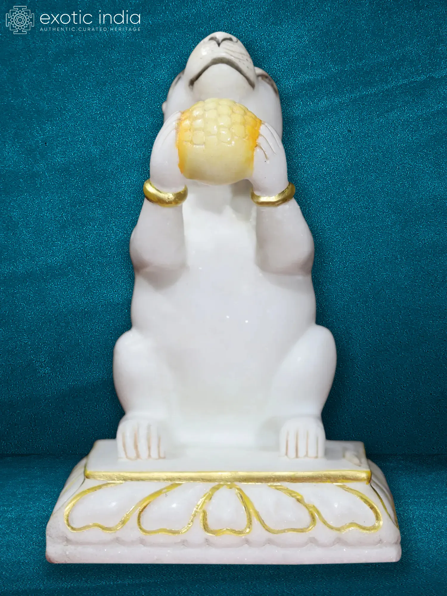 12" Ganesha's Beloved Mushaka | Makrana Marble Statue
