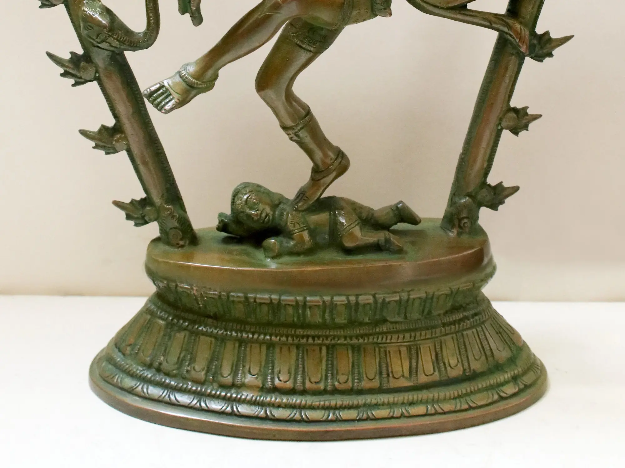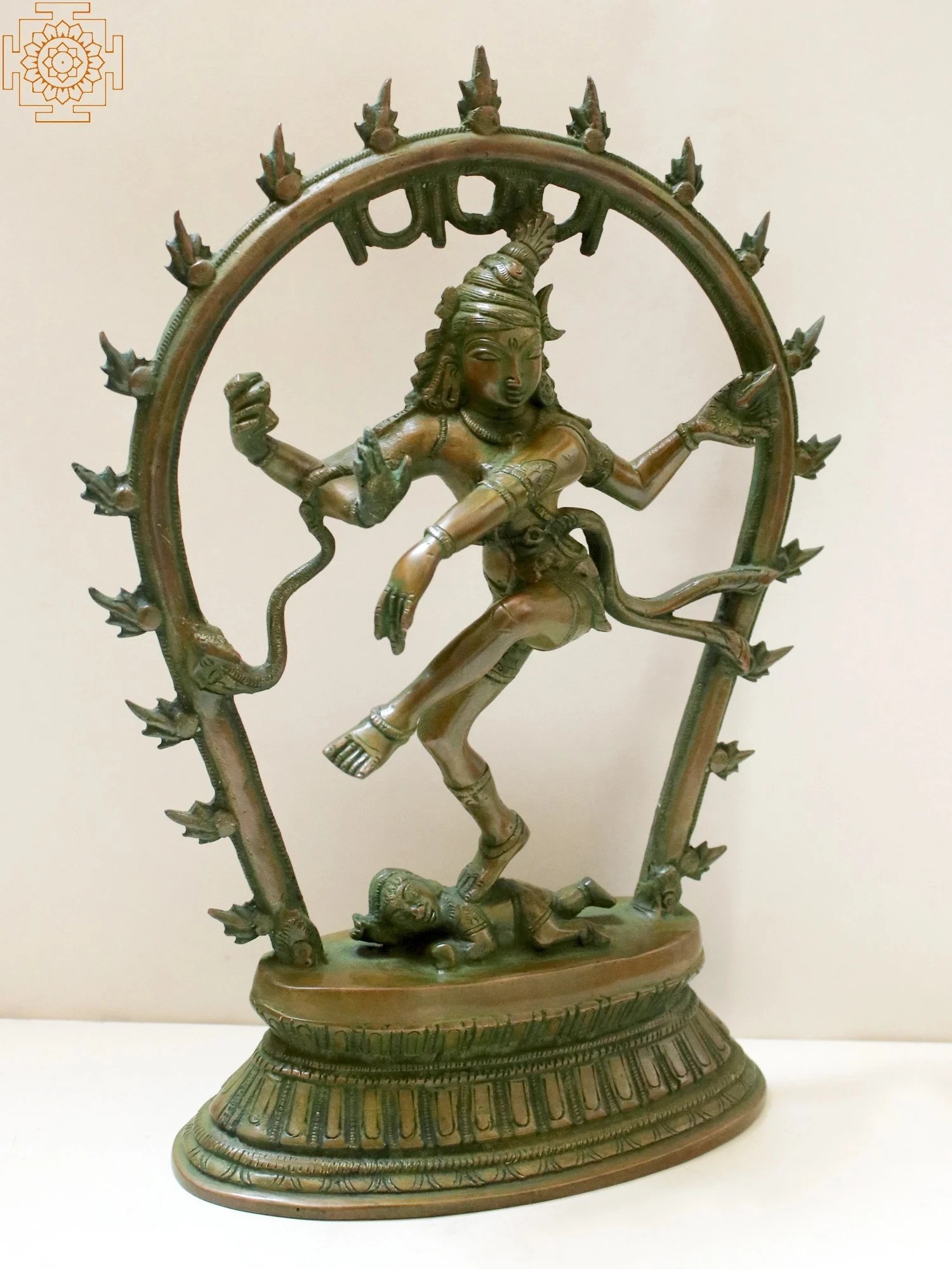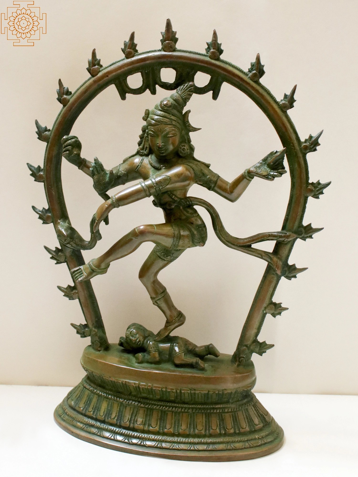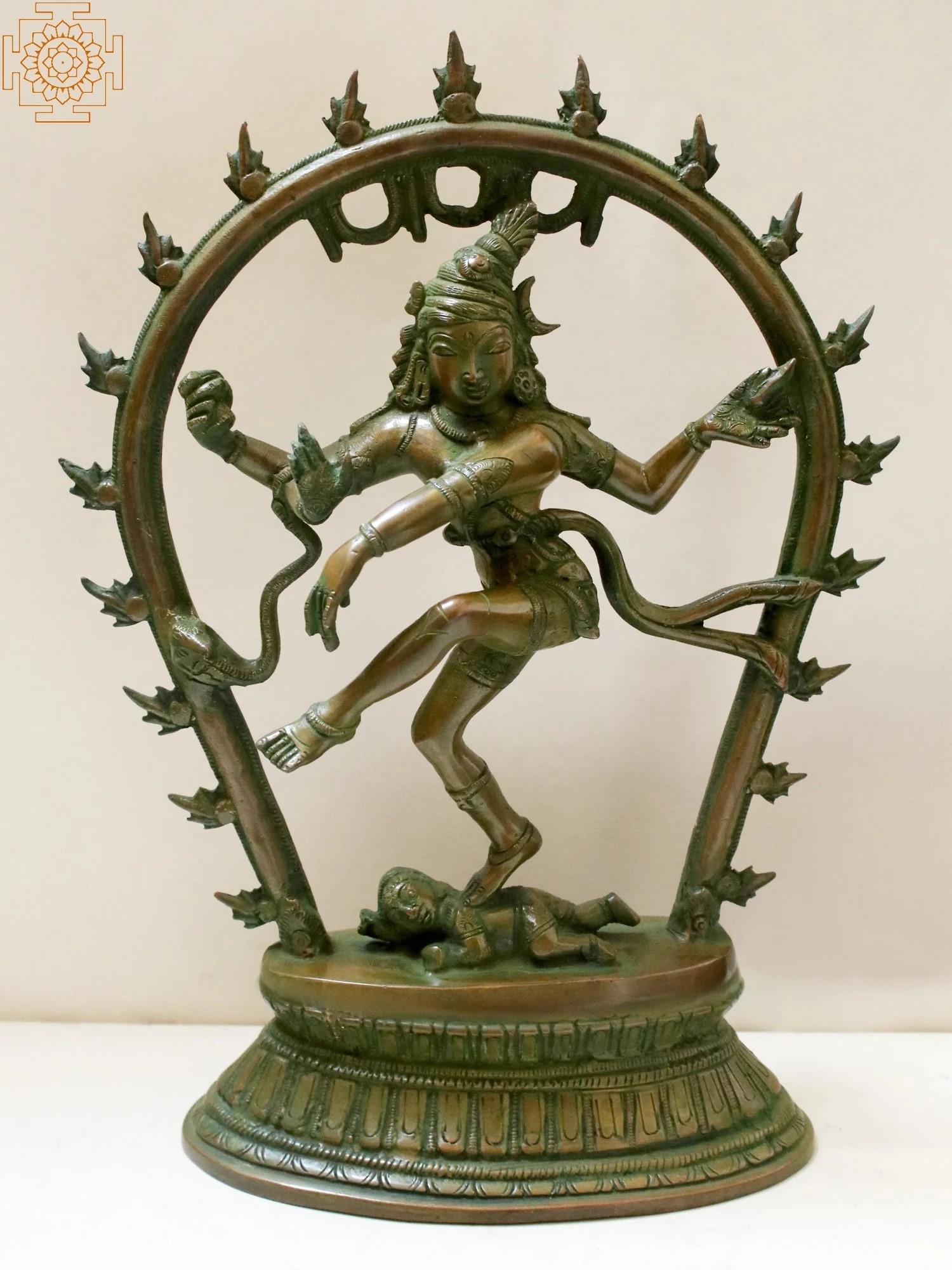 Shiva’s body is lithesome and his pose gracefully. His foot positioned on Apasmara suggests a lightness, almost as if the heavenly dancer is hovering in the cosmos while performing his unmatched Nritya.